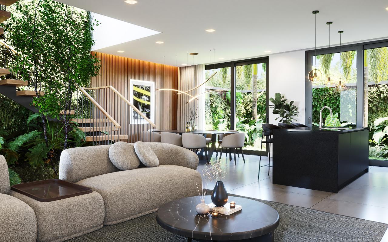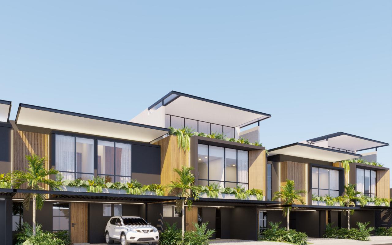 ID# 116961. Contemporary home in pre-sale at Escazú, Starting at 184m2, 3 Bedrooms, 2.5 Bathrooms, Prices from $299,000. Welcome to this exclusive condominium, an exceptionally designed residential enclave where nature and comfort seamlessly blend into perfect harmony. This pre-sale condominium has been meticulously crafted for those seeking an extraordinary lifestyle in a stunning natural environment. Strategically located in an area ensuring high mobility and proximity to the most fascinating and exclusive areas of the capital, it presents itself as a vital and serene space for your family. It's much more than just a place to live; it's an experience. Every detail has been carefully planned to provide you with an eco-conscious and sustainable lifestyle. Imagine a home where green spaces are not just outside but also integrated into the heart of each residence. With 60 homes designed with a biophilic approach, each one features private gardens both inside the house and around the condominium. This intimate connection with nature not only beautifies your home but also fosters an unparalleled sense of tranquility and well-being. Here, the future is limitless and sustainable. All residences are equipped with solar panels that not only allow you to save energy but also reduce your carbon footprint. Additionally, the condominium features a solar heater for the pool in the amenities area, harnessing the sun's energy to offer you a relaxing and pleasant aquatic space. For those interested in eco-friendly practices, you'll find recycling stations conveniently distributed throughout the complex. Furthermore, common areas are illuminated with energy-efficient LED lights, and both faucets and sanitary fixtures have been selected for their water efficiency, ensuring that every drop counts in our quest for a greener tomorrow. Amenities extend beyond your home. This condominium boasts an impressive array of facilities to enrich your daily life. Imagine immersing yourself in a Jacuzzi after a tiring day or enjoying cozy evenings around the firepit with your loved ones. The swimming pool, with its lap lane, provides the perfect opportunity to stay fit, while the yoga area invites you to find your inner peace in a serene and tranquil environment. Are you passionate about cooking? The culinary center is designed to meet all your culinary needs. Additionally, the natural coworking space offers an inspiring environment for those working from home. We understand that every family is unique. That's why we offer a diverse range of housing models, from a walking closet in the master bedroom and comfortable two-level residences to spacious three-level homes. Each one comes with its private patio, allowing you to enjoy the outdoors in the privacy of your home. Furthermore, depending on the model you choose, you can opt to have a service room and bathroom, tailoring your home to your specific needs. Strategically located just minutes away from prestigious shopping areas, renowned hospitals, high-quality schools, and a wide variety of restaurants and entertainment. Don't wait any longer to join this community. Discover your home here and experience a lifestyle that goes beyond the ordinary. Your future awaits you in the heart of nature, in a space designed to be surrounded by the extraordinary.