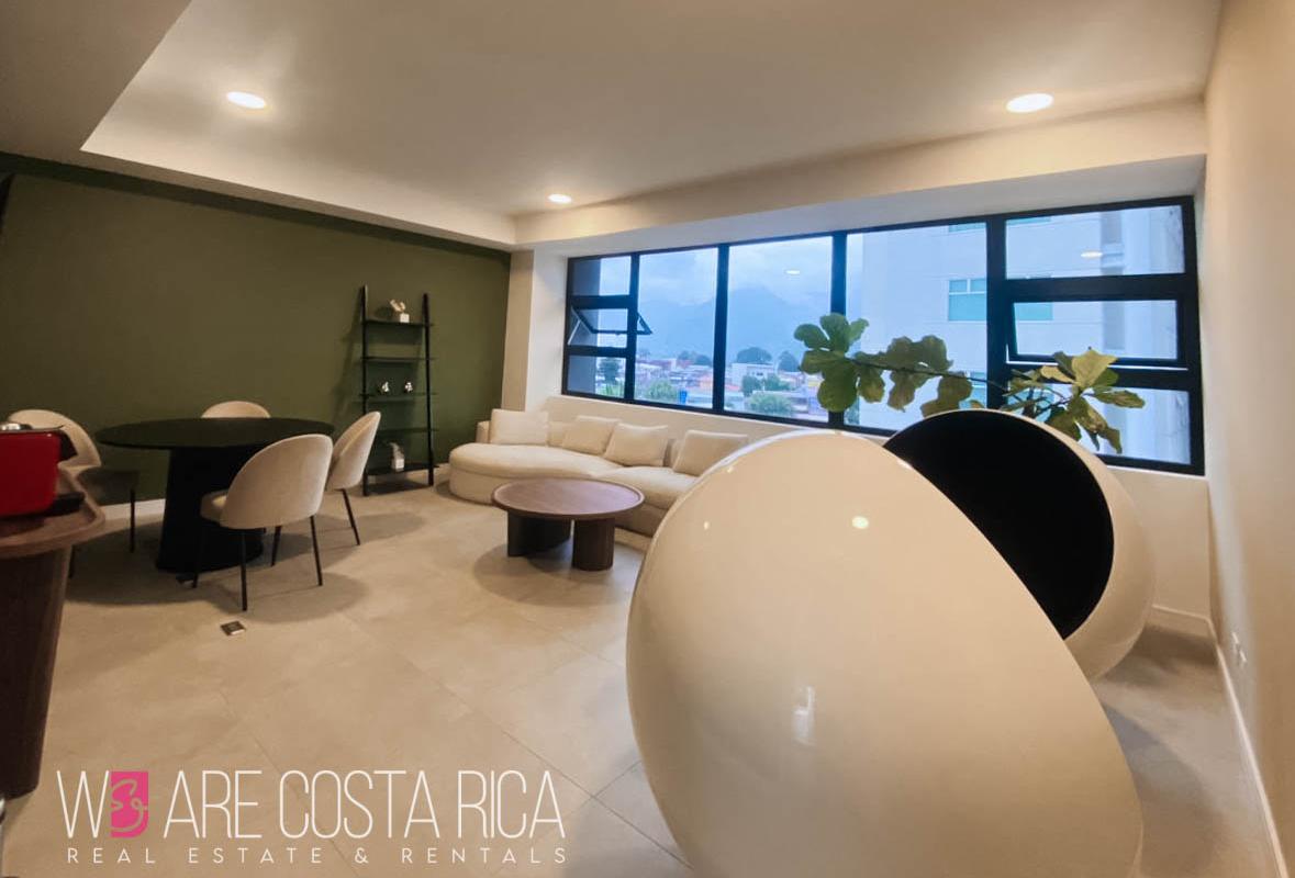 ID# 116972. Modern apartment for rent in Rohrmoser, Nunciatura, 81 m2, 2 bedrooms, 2 bathrooms, US$1,800/month. One of the standout features of this apartment is its location on a high floor, providing you with panoramic views that are simply spectacular. From your private balcony, you can enjoy dreamy sunrises and sunsets while taking in the majesty of the city and the surrounding mountains. This view connects you with Costa Rica's natural beauty without leaving your home. With 81 square meters of living space, this apartment is perfect for couples, professionals, and small families. It boasts two spacious bedrooms and two bathrooms, giving you the privacy you need. Every corner of this space has been thoughtfully designed to blend style and functionality. This apartment comes with an entirely new white goods package, which means you'll have state-of-the-art appliances at your disposal. The kitchen is fully equipped with everything you need to prepare delicious meals. Additionally, the curtains are already installed, allowing you to easily control the amount of light entering your home. The rent for this luxurious apartment, including maintenance fees, is $1,800 per month. This is a reasonable price for a property of this caliber and offers you the opportunity to enjoy an unparalleled lifestyle in a premium location. Nunciatura Condominium offers an exceptional living experience by combining the comforts of the apartment itself with a range of services and amenities that will make you feel like you're living in an urban retreat. Some of the advantages you'll find include 24-hour security for your peace of mind, a well-equipped gym to keep you in shape without leaving the complex, a pool and outdoor recreational areas ideal for socializing or just relaxing, access to green areas that connect you with nature without moving away from the city, and a central location that puts you close to the city's major shopping centers, restaurants, entertainment hubs, and business centers. Don't miss the opportunity to live in the luxury and comfort that this magnificent apartment in Rohrmoser offers! Contact us today for more information and to schedule a visit. Your dream home awaits.