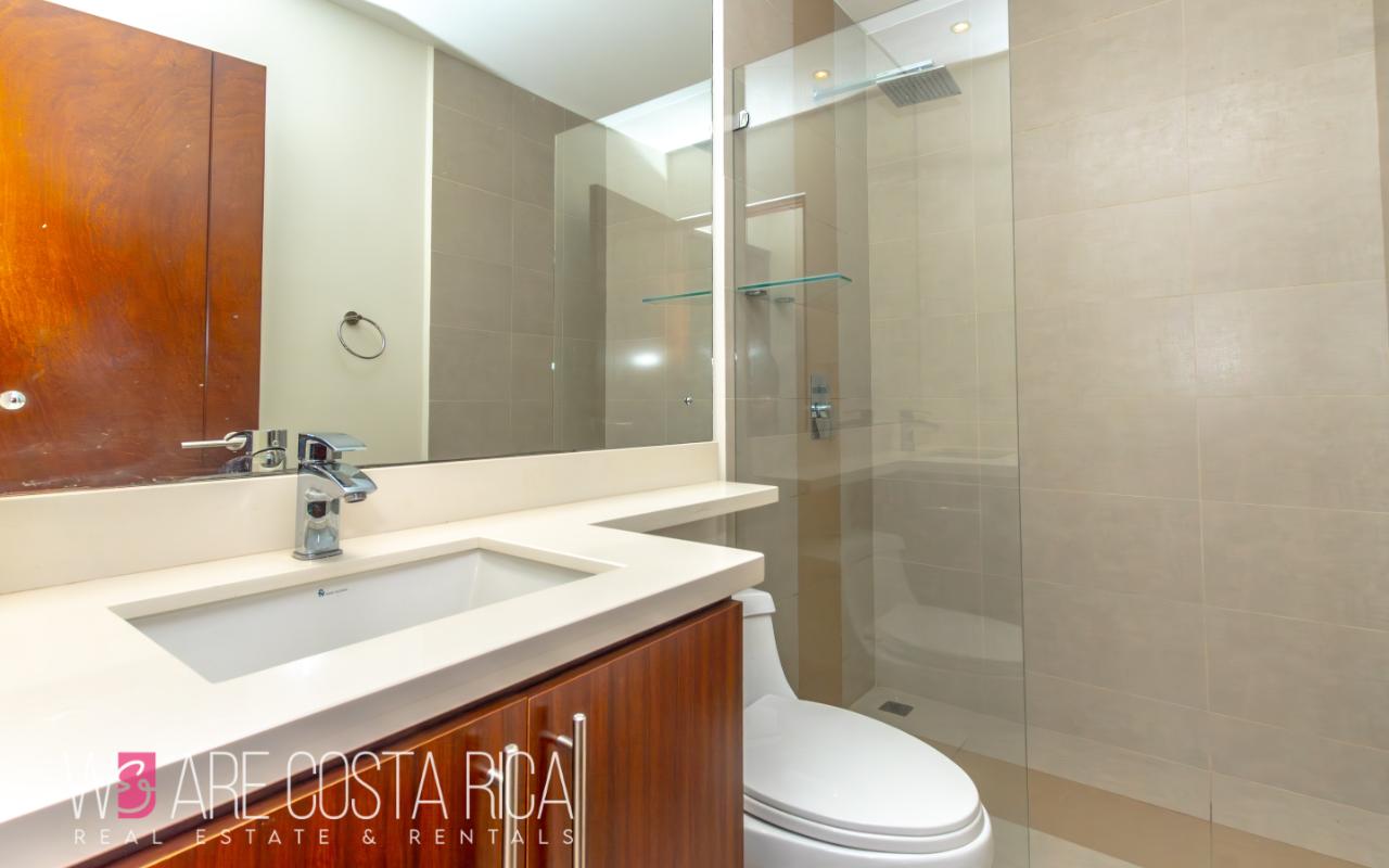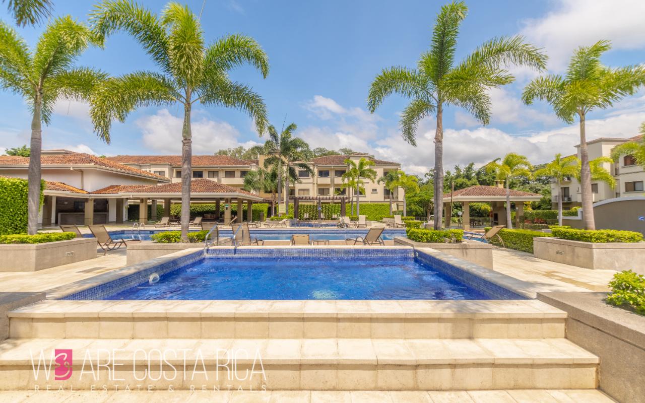ID# 116983. Apartamento contemporáneo en venta, Santa Ana, 93 m2 de construcción, 2 habitaciones, 2 baños, US$215.000. Descubra la elegancia y comodidad en este moderno apartamento contemporáneo en venta, ubicado en el exclusivo condominio de Santa Ana. Con una fusión perfecta de estilo y funcionalidad, esta propiedad se presenta como una oportunidad única para aquellos que buscan un hogar sofisticado en medio de la naturaleza. Con una amplia área de sala, comedor y cocina integrados, este apartamento ofrece un espacio fluido y acogedor para la vida diaria. La cocina, destacada por sus muebles empotrados, está completamente equipada con un extractor, horno y plantilla empotrada, creando el ambiente perfecto para los amantes de la cocina. El confort es una prioridad en este hogar, con aire acondicionado de mini Split en las dos habitaciones y la sala, brindando un clima agradable durante todo el año. Disfrute de la serenidad desde el balcón privado, que ofrece vistas panorámicas de la exuberante naturaleza que rodea el condominio. La conveniencia se encuentra en cada detalle, con un cuarto de lavandería que simplifica las tareas domésticas. El espacio de estacionamiento bajo techo agrega un toque de lujo y seguridad adicional a su estilo de vida. El condominio en sí no escatima en amenidades. Sumérjase en la relajación en las piscinas y jacuzzis, organice reuniones al aire libre en los ranchos con parrillas, o encuentre inspiración en la zona co-working. Los más pequeños disfrutarán de su propio paraíso en el área de juegos, mientras que los amantes del deporte pueden aprovechar las canchas de tenis. Además, la seguridad 24/7 y el acceso controlado garantizan la tranquilidad y privacidad de los residentes. Este es un hogar que ofrece mucho más que un lugar para vivir; es una experiencia de vida completa. No pierda la oportunidad de adquirir este apartamento contemporáneo que redefine la vida moderna. Descubra la armonía entre la sofisticación, la comodidad y la naturaleza, todo en un solo lugar. ¡Contáctenos hoy para programar su visita y hacer realidad el sueño de su nuevo hogar!