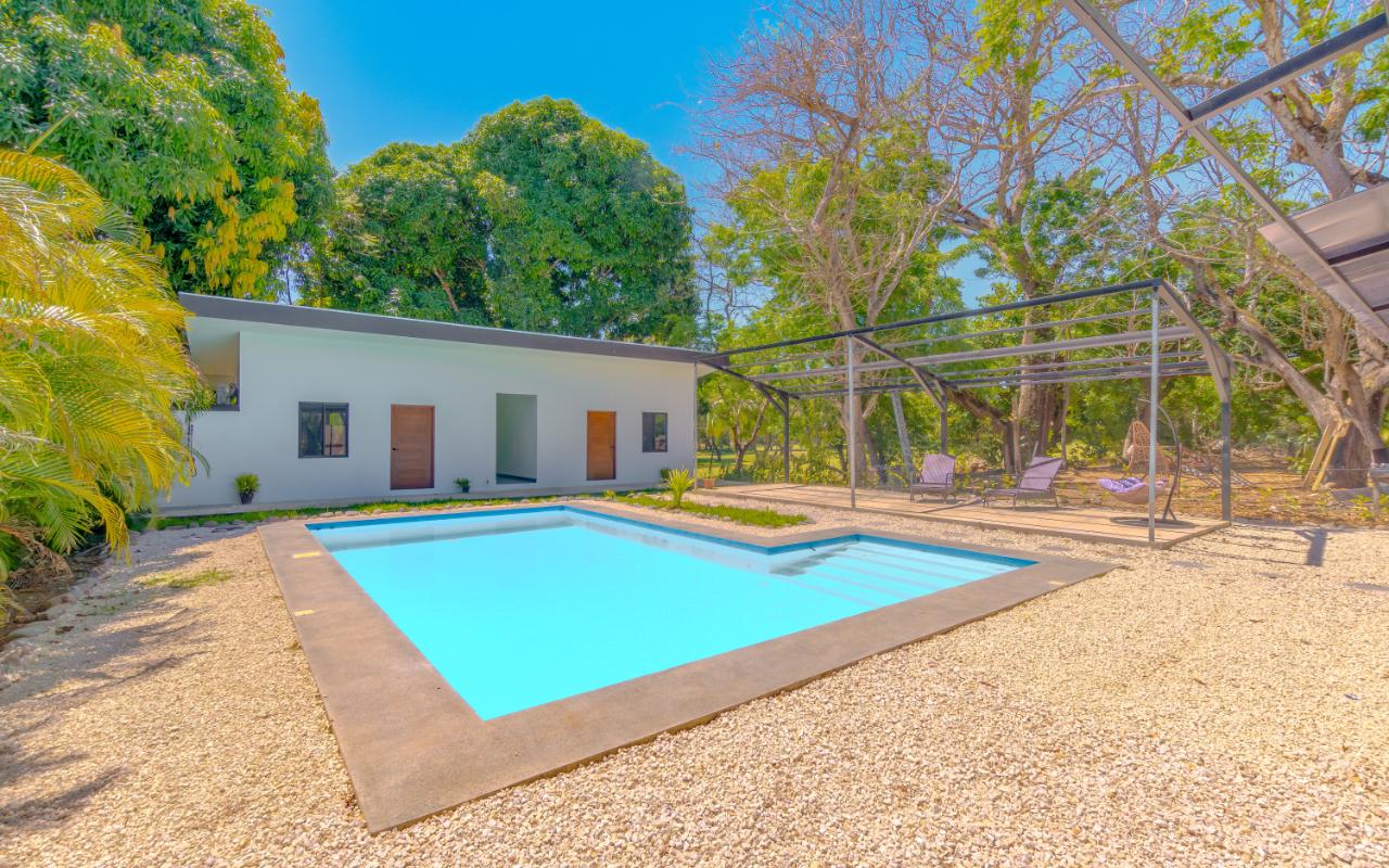 ID# 117057. Beautiful beach house for sale in Tambor, Puntarenas. Los Delfines Condominium, Golf and Country Club. 5 bedrooms, 4 bathrooms, 400 m2 of construction, 884 m2 of land, US$849,000. Welcome to an exclusive opportunity for sale within a dream condominium. This modern property offers everything you need and more to enjoy a luxurious lifestyle in a tranquil and natural environment. With a construction of 400 m2 on a 884 m2 plot, this residence stands out for its spaciousness and elegance. From the moment you enter, you are captivated by the perfect integration of the living room, dining room, and kitchen, creating an ideal gathering space for family and friends. The built-in kitchen furniture with quartz countertops adds a touch of distinction to the kitchen, while modern finishes extend throughout the house, offering a contemporary and sophisticated aesthetic. Distributed over two levels, this house features five bedrooms and four full bathrooms, ensuring privacy and comfort for all family members. Additionally, air conditioning in the bedrooms and social area ensures a pleasant atmosphere at all times. The large windows allow natural light to enter and offer panoramic views of the beautiful gardens surrounding the property. Double-height ceilings in the social area add a touch of grandeur and modernity to the house. To relax outdoors, a spacious terrace opens onto an impressive patio with a large pool, creating the perfect setting to enjoy the tropical climate and outdoor lifestyle. With a covered garage for two vehicles and additional space for two more, this property offers convenience and practicality for your parking needs. Additionally, it has a laundry room for added convenience. Located next to the condominium's golf course, this property offers privileged access to this exciting sport and the spectacular views that surround it. Additionally, the condominium offers a wide range of amenities, including 24/7 security with controlled access, a country club, and an abundance of green areas and nature to explore. With easy access to Tambor Beach, this property combines modern luxury with natural beauty in an exclusive and secure environment. Don't miss the opportunity to turn this house into your dream home!
