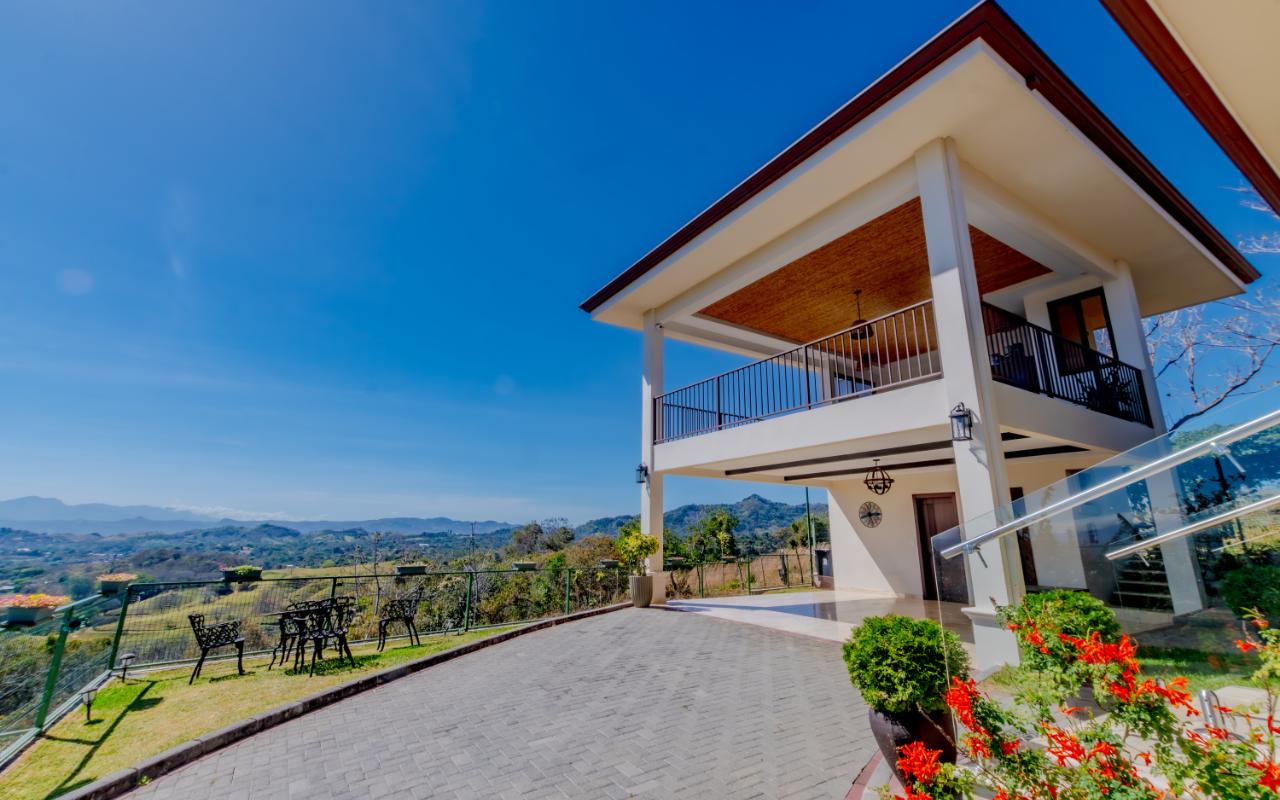 ID# 117058. Modern house for sale, Atenas, Alajuela. 4 bedrooms, 2.5 bathrooms, 320 m2 of construction, 900 m2 of land, US$750.000 (furnished) . Welcome to elegance and serenity in Atenas de Alajuela, where this stunning single-story residence combines exceptional luxury with unparalleled 360 panoramic views. Every detail of this house has been carefully selected to offer a unique living experience. Luxury finishes, from floors to ceilings, reflect the quality and craftsmanship that distinguish this property. The design architecture seamlessly blends with modern convenience, creating a home that is not only visually striking but also functional. From the moment you cross the entrance, you are captivated by the majestic view of the mountains and the city stretching out before you. The interior spaces, bathed in natural light, invite you to enjoy the warmth and sophistication that only a residence of this caliber can offer. The gourmet kitchen, equipped with state-of-the-art appliances and exquisite details, is a dream for culinary enthusiasts. The open-concept design harmoniously connects the kitchen with the living and dining areas, creating a perfect space for entertainment and family life. The master suite, a luxury sanctuary, offers a private retreat with a high-end bathroom and views that will take your breath away. The additional bedrooms, each with impeccable finishes, offer comfort and style. The exterior of the property is a natural extension of the beauty found inside. A spacious terrace and carefully designed gardens provide the perfect space to enjoy the tranquility and breathtaking views that only Atenas de Alajuela can offer. This exclusive residence is more than just a house; it is a masterpiece of design and comfort. Contact us to schedule a visit and discover the luxury life that awaits you in this gem in Atenas de Alajuela.