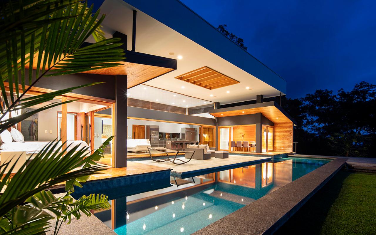ID# 117065. Modern beach house with panoramic views for sale in Uvita, Puntarenas. 5 bedrooms, 5 bathrooms, 425 m2 of construction, 72,600 m2 of land. US$2,490,000. Embark on a journey to the pinnacle of opulence and natural splendor as you discover this exquisite ready-to-move-in residence, located in the heart of the Costa Rican rainforest: a truly unexplored treasure. This abode radiates an aura of opulence, allure, and lush luxury, with its rear adorned by expansive floor-to-ceiling retractable glass doors that kindly welcome the gentle ocean breeze and present a canvas of golden hues, painting perfect sunsets over the Pacific. Crafted with precision and meticulous refinement, the well-conceived architectural plan delineates each space, effortlessly guiding you to expansive balcony and terrace: a charming setting for entertainment and direct access to a crystal-clear pool. Strategically located in a privileged market spot, this vacation retreat sits just steps away from excellent restaurants, secluded beaches, and a serene, friendly community. The original visionaries harnessed the uniqueness of the location, skillfully refining both the primary and guest residences to maximize the breathtaking ocean views. The extensive 20-acre property is a meticulously landscaped haven, hosting a variety of floral, fruit, and nut trees that attract local fauna, fostering a harmonious connection with nature. Emerge each dawn into the melodic symphony of Howler Monkeys, Toucans, and Macaws, as the stunning sunrise unfolds over the vast ocean. Within this close-knit and limited real estate development, a culture of beauty, maintenance, and security thrives. The main residence, located at the northern end, unveils two ensuite bedrooms, surrounded by mature Ylang Ylang trees and the seclusion of the jungle. Gleaming polished concrete floors guide you through an open plan, leading to a sleek kitchen equipped with stainless steel appliances and a modern 4-burner gas cooktop. The private dining seamlessly merges with the sunset, offering an ideal space for entertainment. A newly built garage awaits you, accommodating two vehicles and ample space for surfboards and water toys. A hidden office, submerged in a green hue filtering through the jungle, creates a private sanctuary where retractable doors blur the boundaries between work and nature. Reflecting the sophistication of the main residence, the guest house captivates with panoramic views of the jungle, ocean, and nearby island. Its open plan, polished concrete floors, and retractable glass doors effortlessly connect with the surrounding beauty. This well-appointed space comfortably accommodates four people, with an open bathroom offering panoramic views and discreet privacy, providing front-row seats to witness whales during the birthing season. As you approach the compound, a charming caretaker's cottage emerges, recently built and hidden among the trees. Perfectly positioned for on-site assistance, this one-bedroom refuge ensures a warm welcome for all visitors. Shaded and meticulously landscaped, it adds the finishing touch to the harmonious ensemble of this extraordinary property.