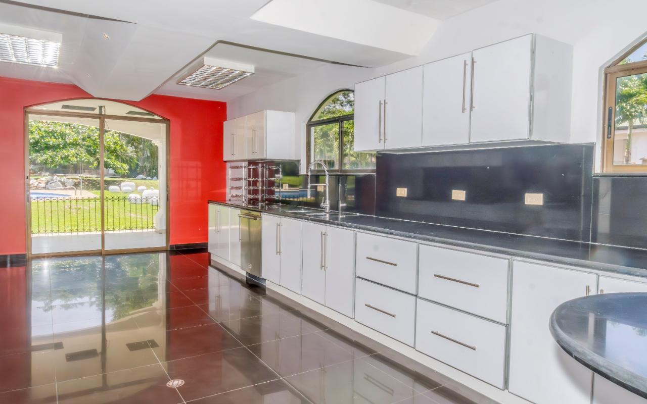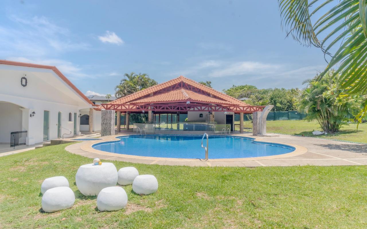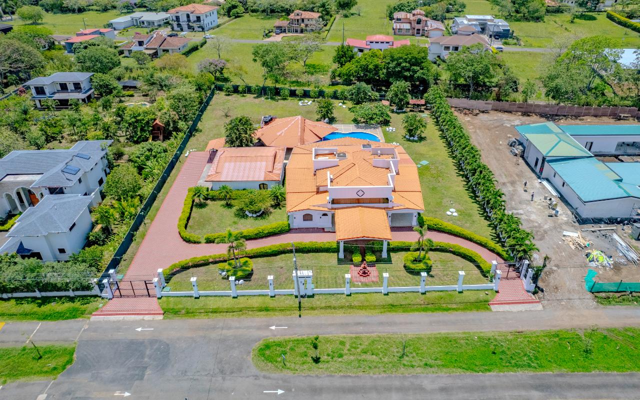 ID# 117108. Beautiful colonial house for sale or rent in La Guácima, Alajuela, Villas del Arroyo condominium. 6 bedrooms, 7 bathrooms, 1,005 m2 of construction, 5,050 m2 of land, US$1,150,000 or rental for US$5,500. This impressive two-story house features colonial architecture that stands out for its elegance and sophistication. Upon entering, you are greeted by a spacious foyer that leads to the different areas of the house. The property has a total of six bedrooms and five full bathrooms, plus an additional bathroom in the pool and gym area. The bedrooms are spacious and designed to offer maximum comfort. The master bedroom includes a large walk-in closet and a private bathroom with luxury finishes. The five full bathrooms are equipped with modern fixtures and high-quality finishes, ensuring functionality and style. A private office provides a quiet space to work from home, equipped with all the necessary amenities for a professional environment. The large kitchen is a dream for any culinary enthusiast, with state-of-the-art appliances, granite countertops, and plenty of storage space. It is perfect for preparing anything from simple meals to elaborate dinners. Two spacious terraces offer an ideal place to enjoy the warm climate and views of the beautiful garden. The fully equipped gym allows you to maintain your exercise routine without leaving home. The highlight of the house is its private pool, an ideal place to relax and enjoy the sun in a tranquil and private setting. Additionally, a large and well-equipped rancho is the perfect place to host social and family events, featuring two full bathrooms and designed to provide comfort and functionality. The garden is kept in perfect condition thanks to the automatic irrigation system, and the electric fence ensures it is always protected. An additional room can be used as a service room or to accommodate guests, providing flexibility according to your family's needs. The property is equipped with a closed circuit with security cameras, ensuring a safe environment for your family. Additionally, it has four parking spaces, providing ample space for residents' and visitors' vehicles. The house is located in an exclusive condominium in Escazú, one of the most prestigious areas of San José, Costa Rica. This strategic location offers easy access to a wide range of services and amenities. Just minutes away is Multiplaza Escazú, one of the most important shopping centers in the area, offering a wide variety of shops, restaurants, and entertainment. Proximity to renowned hospitals such as CIMA Hospital provides peace of mind, knowing you have access to high-quality medical care. The proximity to Route 27 facilitates access to the main routes to the beaches of the Costa Rican Pacific, allowing quick and convenient weekend getaways. The condominium offers a safe and well-maintained environment, ideal for families seeking a quiet and comfortable lifestyle. The warm climate of the area allows you to enjoy the outdoor spaces and the private pool to the fullest throughout the year. The automatic irrigation system keeps the garden in perfect condition effortlessly. The electric fence ensures a protected perimeter around the property, and the condominium's security guarantees a peaceful and safe environment, allowing you to enjoy life with total peace of mind. This colonial-style house is a perfect combination of elegance, comfort, and functionality, located in one of the best areas of Alajuela. With all modern amenities and a strategic location, it is the ideal place to create a home for your family. Don't miss the opportunity to live in a house that has it all: design, comfort, security, and a privileged location. This property is more than a house; it is a lifestyle. Come and experience the luxury and tranquility of living in one of the best condominiums in La Guácima.
