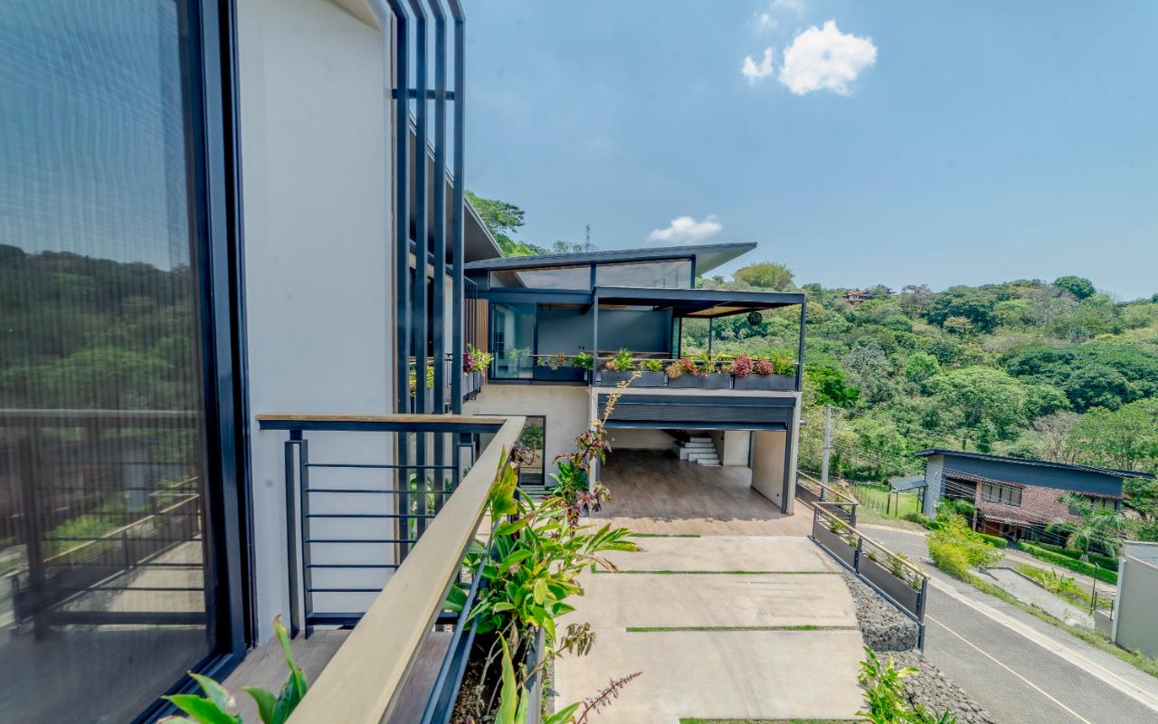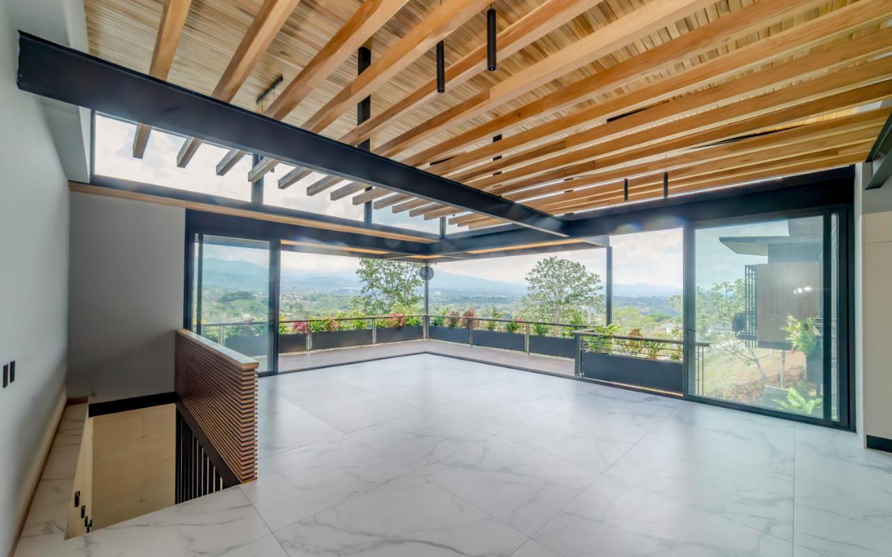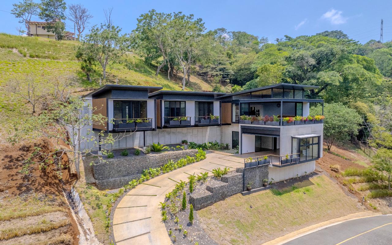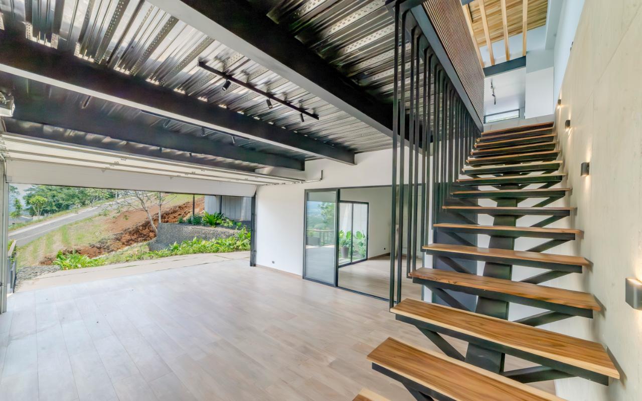ID# 117109. Modern industrial design house for sale in Naranjo, Alajuela, Hacienda Natura condominium. 4 bedrooms, 4 bathrooms, 550 m2 of construction, 836 m2 of land, US$1,200,000 or US$5,000. Welcome to this architectural gem in an exclusive condominium in Naranjo, Alajuela. This residence redefines the standards of modern living with a focus on innovation and efficiency. With an impressive construction area of 550 square meters on an 836 square meter plot, this residence is an example of cutting-edge engineering and design. The house features an industrial design, highlighted by black iron, concrete, and wood details that give it a unique and contemporary character. Additionally, the house offers panoramic views of the surrounding natural environment, providing a constant connection with the beauty of the landscape. Relax in the private pool equipped with smart technology. Control the temperature and lighting from anywhere with just a few taps on your mobile device, thanks to an advanced automation system. Also, enjoy starry nights on its spacious terrace, around a state-of-the-art fire pit designed with high-resistance glass and an efficient combustion system that provides heat without residue. A perfect combination of functionality and modern elegance. The architectural design of the house incorporates cross ventilation and large openings to maximize natural airflow. Each room features high-efficiency air conditioning systems for personalized climate control, ensuring a comfortable environment at all times. The surrounding land has been carefully planned to integrate lush and sustainable gardens, with an automatic irrigation system and LED lighting that highlights the natural beauty of the environment. These exterior spaces complement the industrial aesthetics of the house, creating an oasis of tranquility and beauty. The kitchen, integrated with the spacious living room and dining area, is a testament to culinary innovation, equipped with state-of-the-art appliances and an ergonomic design that maximizes efficiency. From porcelain countertops to high-capacity grease extraction systems, every detail has been carefully selected to offer maximum comfort and performance. The four bedrooms, three of them with their own air conditioning, offer an oasis of tranquility and comfort, with the fourth bedroom being a bit more private, ideal for use as an office or study. Each has its own balcony to also enjoy panoramic views from there. The master suite is a true sanctuary, with a private jacuzzi and a custom walk-in closet designed to meet the most demanding needs. The property is equipped with state-of-the-art security technology, including a closed-circuit CCTV system and a smart home controlled by apps. This allows you to manage everything, from lights to locks and security systems, with total comfort and ease. A storage room and a laundry room add convenience for household chores. With a strategic location just minutes from major shopping, business, and recreational centers, this property offers you the best of both worlds: the tranquility of a natural environment and the connectivity of modern living. Not to mention, the condominium offers 24/7 security with controlled access. Are you ready to experience the future of luxury in Costa Rica? Contact us now for more details and discover how this property can become your new home.