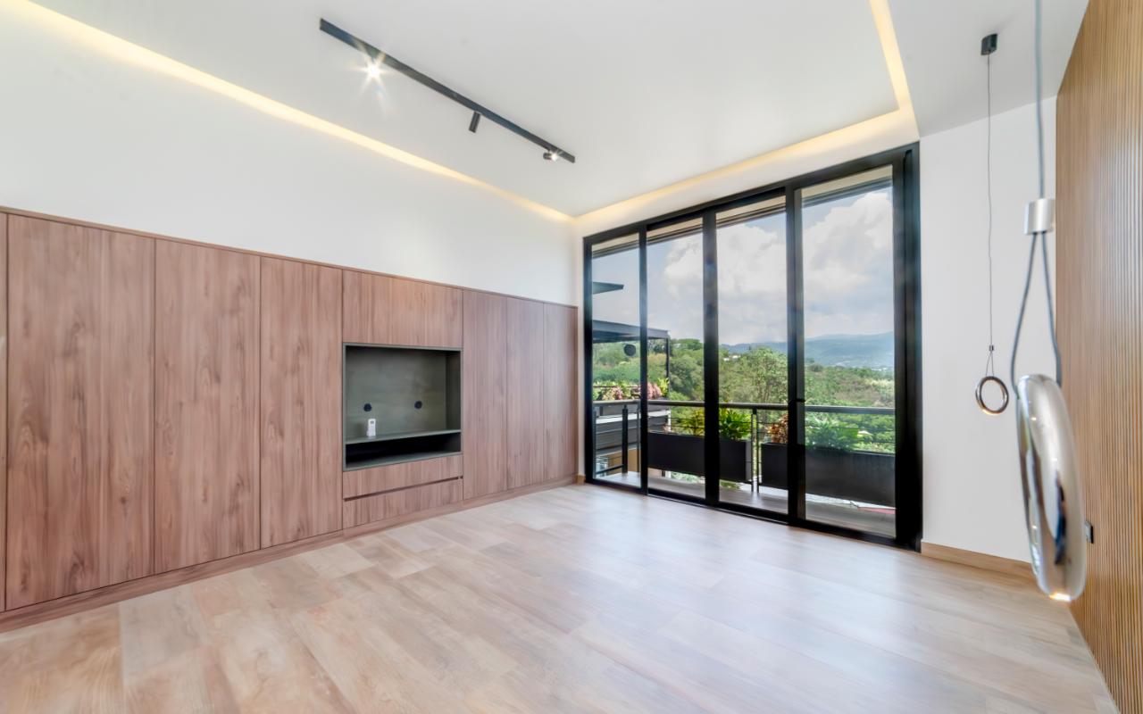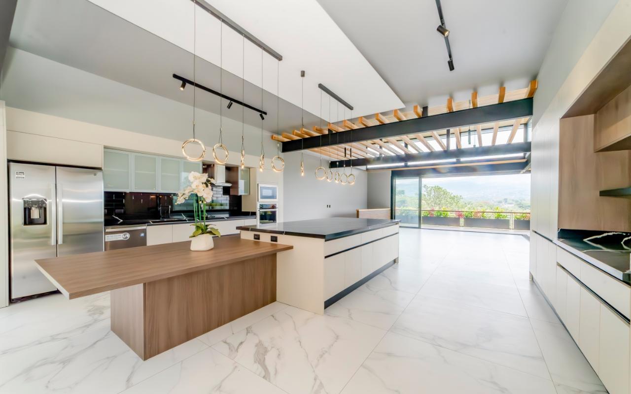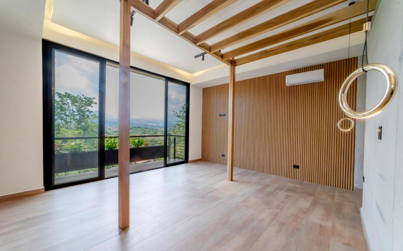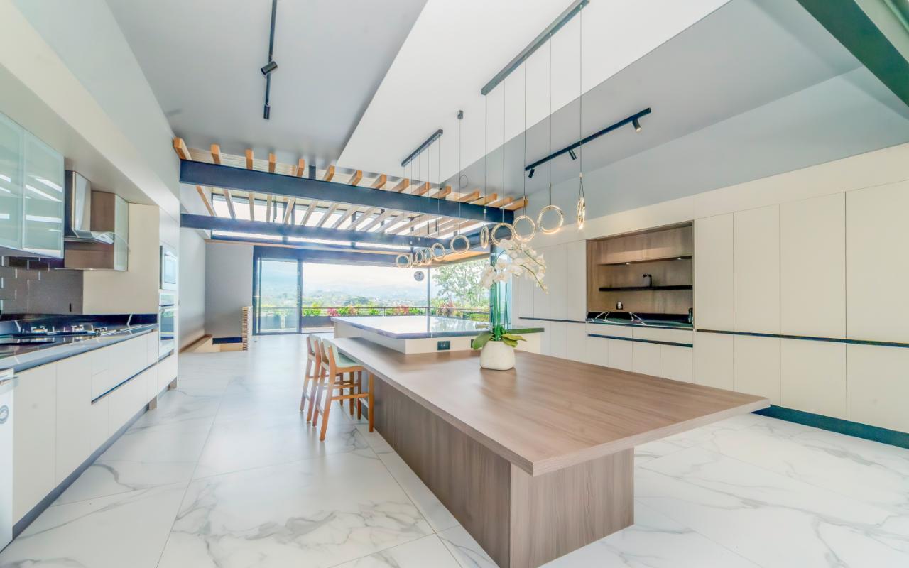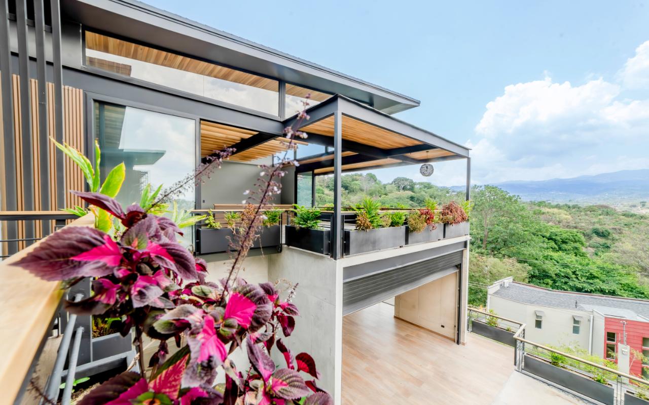 ID# 117109. Modern industrial design house for sale in Naranjo, Alajuela, Hacienda Natura condominium. 4 bedrooms, 4 bathrooms, 550 m2 of construction, 836 m2 of land, US$1,200,000 or US$5,000. Welcome to this architectural gem in an exclusive condominium in Naranjo, Alajuela. This residence redefines the standards of modern living with a focus on innovation and efficiency. With an impressive construction area of 550 square meters on an 836 square meter plot, this residence is an example of cutting-edge engineering and design. The house features an industrial design, highlighted by black iron, concrete, and wood details that give it a unique and contemporary character. Additionally, the house offers panoramic views of the surrounding natural environment, providing a constant connection with the beauty of the landscape. Relax in the private pool equipped with smart technology. Control the temperature and lighting from anywhere with just a few taps on your mobile device, thanks to an advanced automation system. Also, enjoy starry nights on its spacious terrace, around a state-of-the-art fire pit designed with high-resistance glass and an efficient combustion system that provides heat without residue. A perfect combination of functionality and modern elegance. The architectural design of the house incorporates cross ventilation and large openings to maximize natural airflow. Each room features high-efficiency air conditioning systems for personalized climate control, ensuring a comfortable environment at all times. The surrounding land has been carefully planned to integrate lush and sustainable gardens, with an automatic irrigation system and LED lighting that highlights the natural beauty of the environment. These exterior spaces complement the industrial aesthetics of the house, creating an oasis of tranquility and beauty. The kitchen, integrated with the spacious living room and dining area, is a testament to culinary innovation, equipped with state-of-the-art appliances and an ergonomic design that maximizes efficiency. From porcelain countertops to high-capacity grease extraction systems, every detail has been carefully selected to offer maximum comfort and performance. The four bedrooms, three of them with their own air conditioning, offer an oasis of tranquility and comfort, with the fourth bedroom being a bit more private, ideal for use as an office or study. Each has its own balcony to also enjoy panoramic views from there. The master suite is a true sanctuary, with a private jacuzzi and a custom walk-in closet designed to meet the most demanding needs. The property is equipped with state-of-the-art security technology, including a closed-circuit CCTV system and a smart home controlled by apps. This allows you to manage everything, from lights to locks and security systems, with total comfort and ease. A storage room and a laundry room add convenience for household chores. With a strategic location just minutes from major shopping, business, and recreational centers, this property offers you the best of both worlds: the tranquility of a natural environment and the connectivity of modern living. Not to mention, the condominium offers 24/7 security with controlled access. Are you ready to experience the future of luxury in Costa Rica? Contact us now for more details and discover how this property can become your new home.