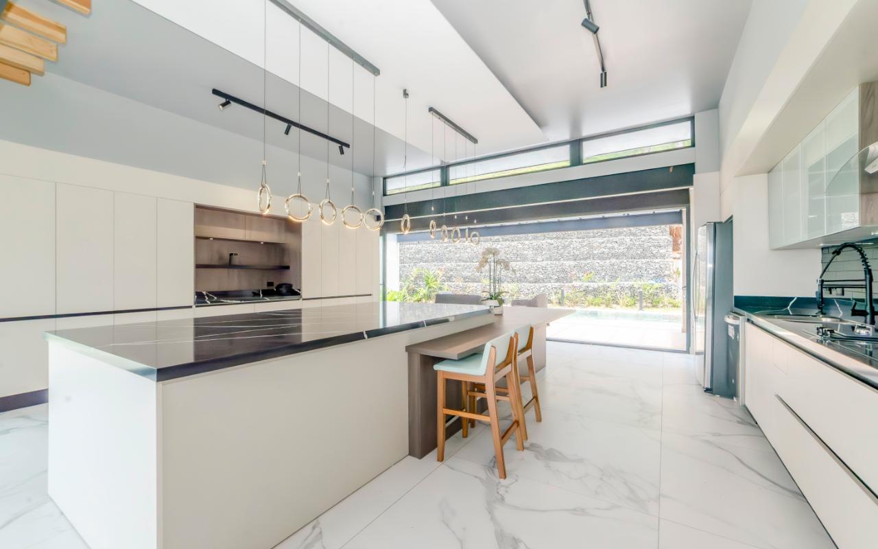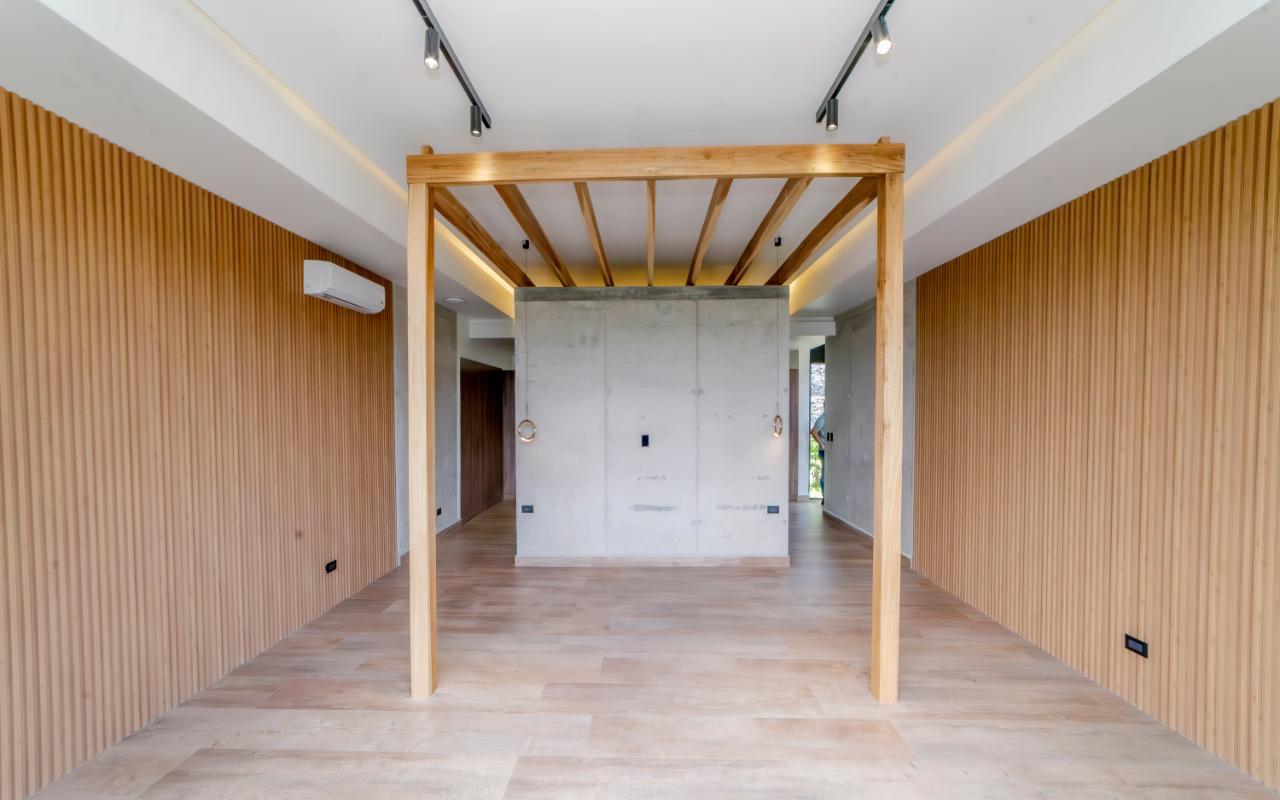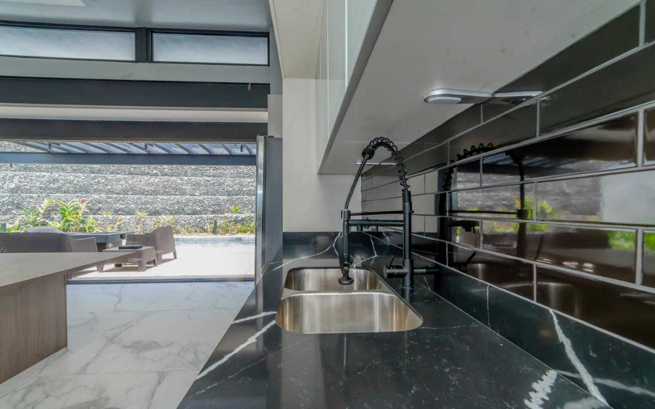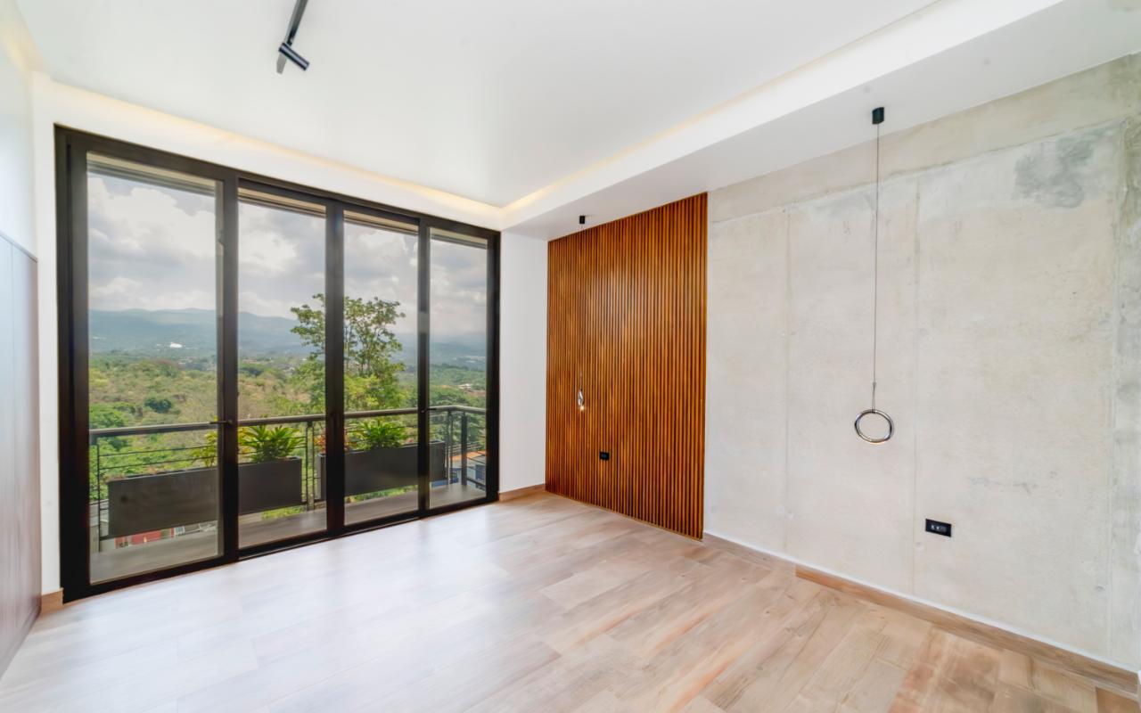 ID# 117109. Modern industrial design house for sale in Naranjo, Alajuela, Hacienda Natura condominium. 4 bedrooms, 4 bathrooms, 550 m2 of construction, 836 m2 of land, US$1,200,000 or US$5,000. Welcome to this architectural gem in an exclusive condominium in Naranjo, Alajuela. This residence redefines the standards of modern living with a focus on innovation and efficiency. With an impressive construction area of 550 square meters on an 836 square meter plot, this residence is an example of cutting-edge engineering and design. The house features an industrial design, highlighted by black iron, concrete, and wood details that give it a unique and contemporary character. Additionally, the house offers panoramic views of the surrounding natural environment, providing a constant connection with the beauty of the landscape. Relax in the private pool equipped with smart technology. Control the temperature and lighting from anywhere with just a few taps on your mobile device, thanks to an advanced automation system. Also, enjoy starry nights on its spacious terrace, around a state-of-the-art fire pit designed with high-resistance glass and an efficient combustion system that provides heat without residue. A perfect combination of functionality and modern elegance. The architectural design of the house incorporates cross ventilation and large openings to maximize natural airflow. Each room features high-efficiency air conditioning systems for personalized climate control, ensuring a comfortable environment at all times. The surrounding land has been carefully planned to integrate lush and sustainable gardens, with an automatic irrigation system and LED lighting that highlights the natural beauty of the environment. These exterior spaces complement the industrial aesthetics of the house, creating an oasis of tranquility and beauty. The kitchen, integrated with the spacious living room and dining area, is a testament to culinary innovation, equipped with state-of-the-art appliances and an ergonomic design that maximizes efficiency. From porcelain countertops to high-capacity grease extraction systems, every detail has been carefully selected to offer maximum comfort and performance. The four bedrooms, three of them with their own air conditioning, offer an oasis of tranquility and comfort, with the fourth bedroom being a bit more private, ideal for use as an office or study. Each has its own balcony to also enjoy panoramic views from there. The master suite is a true sanctuary, with a private jacuzzi and a custom walk-in closet designed to meet the most demanding needs. The property is equipped with state-of-the-art security technology, including a closed-circuit CCTV system and a smart home controlled by apps. This allows you to manage everything, from lights to locks and security systems, with total comfort and ease. A storage room and a laundry room add convenience for household chores. With a strategic location just minutes from major shopping, business, and recreational centers, this property offers you the best of both worlds: the tranquility of a natural environment and the connectivity of modern living. Not to mention, the condominium offers 24/7 security with controlled access. Are you ready to experience the future of luxury in Costa Rica? Contact us now for more details and discover how this property can become your new home.