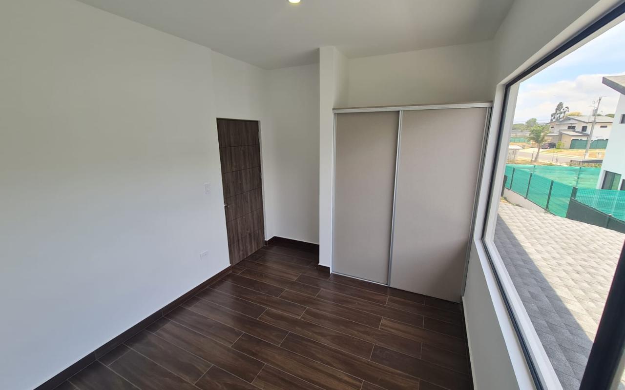 ID# 117111. Modern house for sale in San Rafael, Alajuela, Villa del Sol condominium. 190 m² of construction, 227 m² of land, US$242.500. We present a magnificent modern design house located in an exclusive condominium that offers a wide range of amenities to meet all your needs. This property features 190 m² of construction on a 227 m² plot, providing a spacious and comfortable area for the whole family. The house has three bedrooms. The master bedroom includes a private bathroom and a walk-in closet, providing an intimate and organized space. The other two bedrooms share a full bathroom, and there is an additional half bathroom for guests, totaling 2.5 bathrooms. The living room and dining room are integrated into a large, open space, ideal for family and social gatherings. The kitchen is large and modern, equipped with quartz countertops that add an elegant and functional touch. Additionally, the house includes a storage room and a laundry room. The spacious patio and side gardens offer a perfect outdoor area to enjoy the open air. The garage has capacity for 3-4 vehicles and includes a charger for electric cars, highlighting the attention to sustainable mobility needs. The property is prepared for the installation of air conditioning units, allowing new owners to customize the climate control system to their liking. The condominium where this house is located offers 24/7 security with controlled access, ensuring tranquility and privacy. In addition, it has various amenities that add value and comfort to daily life. These include a gym equipped with modern machinery to maintain a healthy lifestyle without leaving the complex, a swimming pool perfect for enjoying sunny days and relaxing, a pet park designed for pets, providing a safe and fun space, and a soccer field ideal for sports lovers and to encourage physical activity with the family. Moreover, there are green areas and common spaces that promote a sense of community and recreation. For more information or to schedule a visit to this incredible property, do not hesitate to contact us!