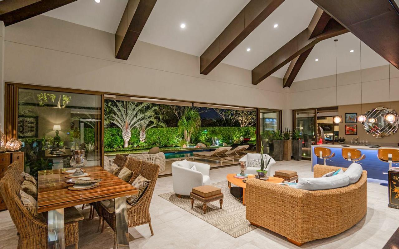 ID# 117116. Modern house with pool for sale in Santa Ana, Hacienda del Bosque Condominium. 5 bedrooms, 5.5 bathrooms, 1,081 m2 of construction, 1,991 m2 of land, US$3,300,000. Explore luxury and tranquility in Hacienda del Bosque, Río Oro, Santa Ana. This impressive 1,081 m2 residence, situated on an extensive 1,991 m2 lot, fully furnished, redefines sophisticated living. With five bedrooms, five full bathrooms, and a half bathroom for guests, every corner of this house exudes exceptional harmony. From the foyer, the open layout invites you to discover the social areas, with high ceilings and strategically designed lighting that highlights every detail. The feng-shui design is reflected in every aspect, from the formal living room to the reading/music/games room, promoting a positive energy flow. The covered terrace, with sliding glass doors, reveals a heated pool and a charming garden, offering an unparalleled entertainment space. The barbecue area, with a large marble table, connects to a modern platform around the pool. A private suite with direct access to the pool and its own independent space adds a touch of exclusivity. The balance between social and private spaces is achieved with a bright office and a library/TV room connected to the family bedrooms. The master bedroom features a private garden, walk-in closet, and a luxurious bathroom, while the secondary bedrooms, each with a walk-in closet, complete this personal oasis. The kitchen, a culinary paradise with high-end appliances, connects to the four-car garage. The property also includes a spacious independent laundry area, a service room with a walk-in closet and full bathroom, storage, alarm system, CCTV, and a water tank with an electric pump. Located in a gated community, enjoy amenities such as 24/7 security, pool, visitor parking, among others. Experience excellence at Hacienda del Bosque, where elegance and privacy merge in an unparalleled home.