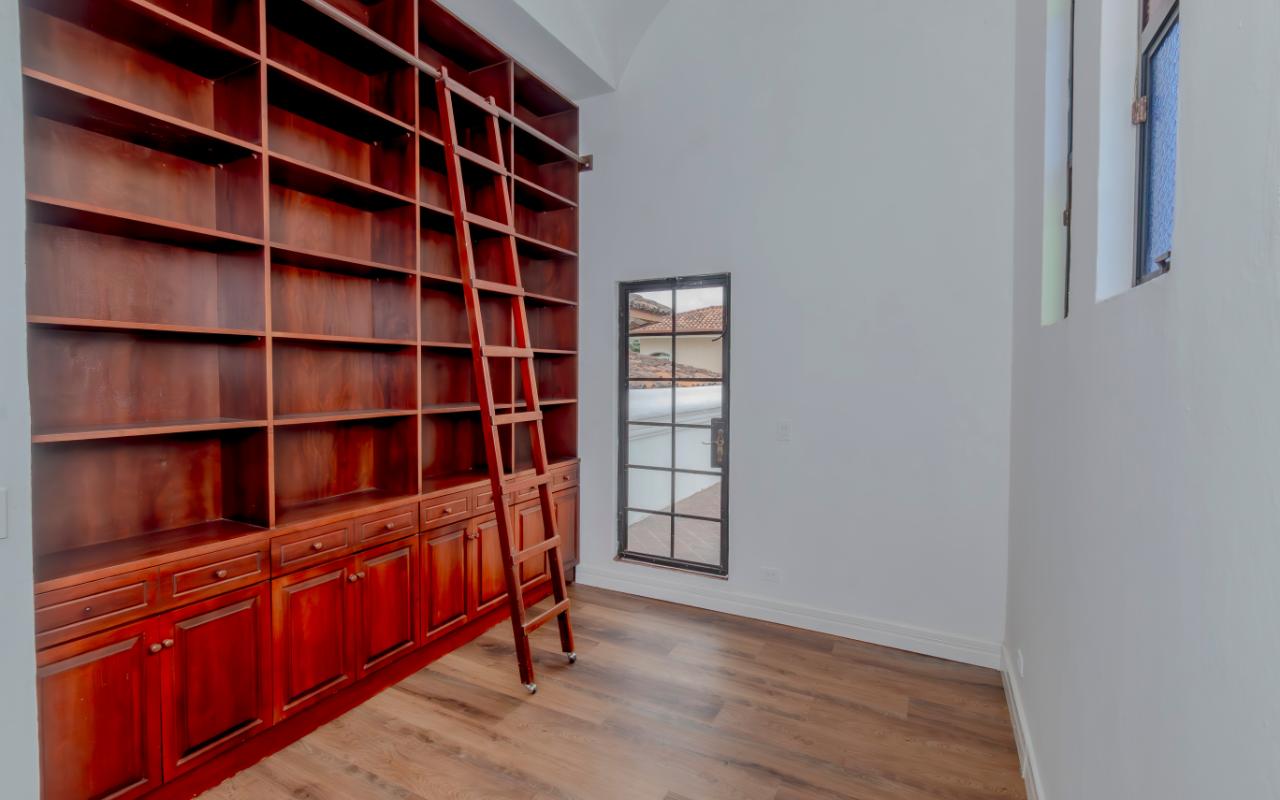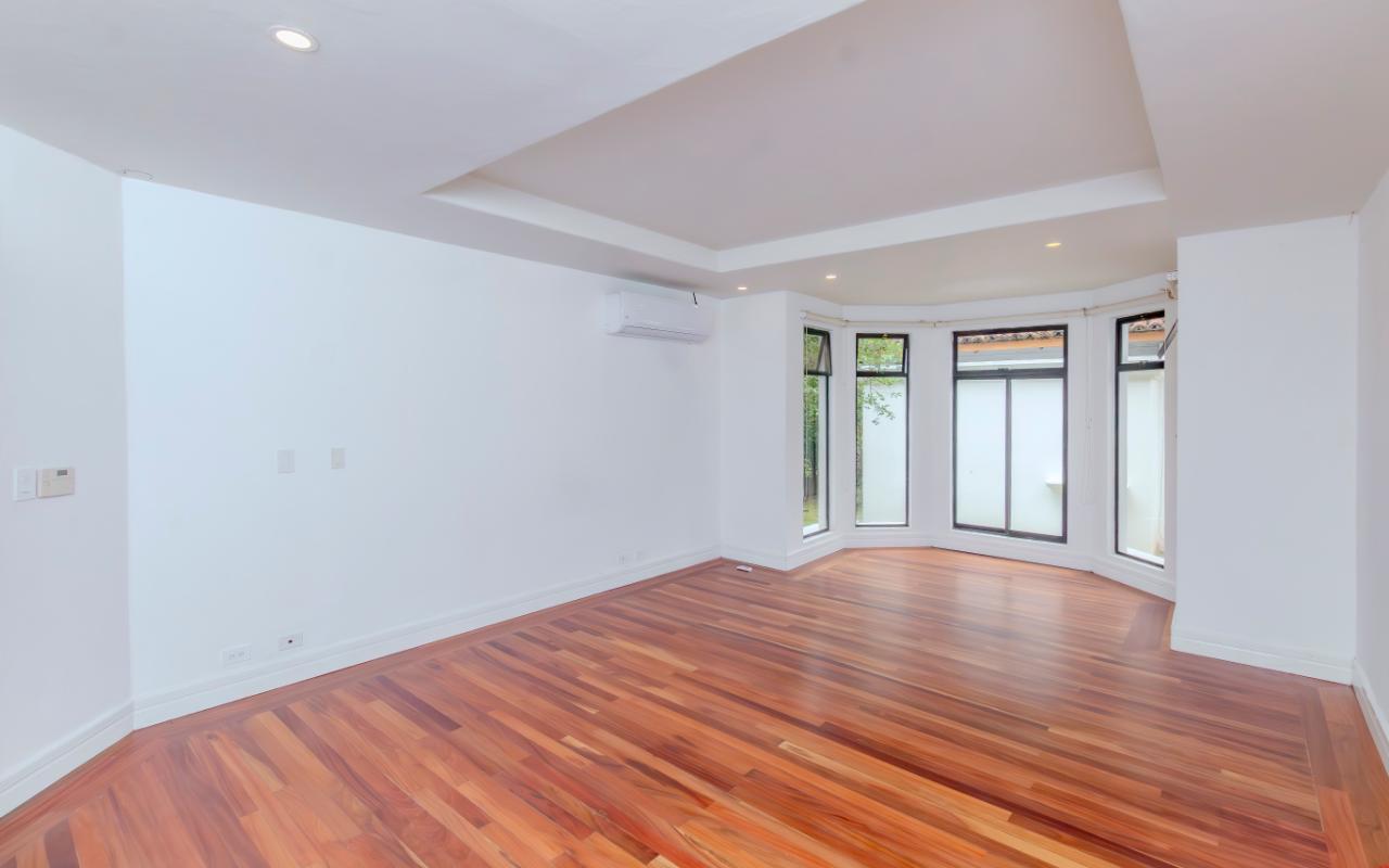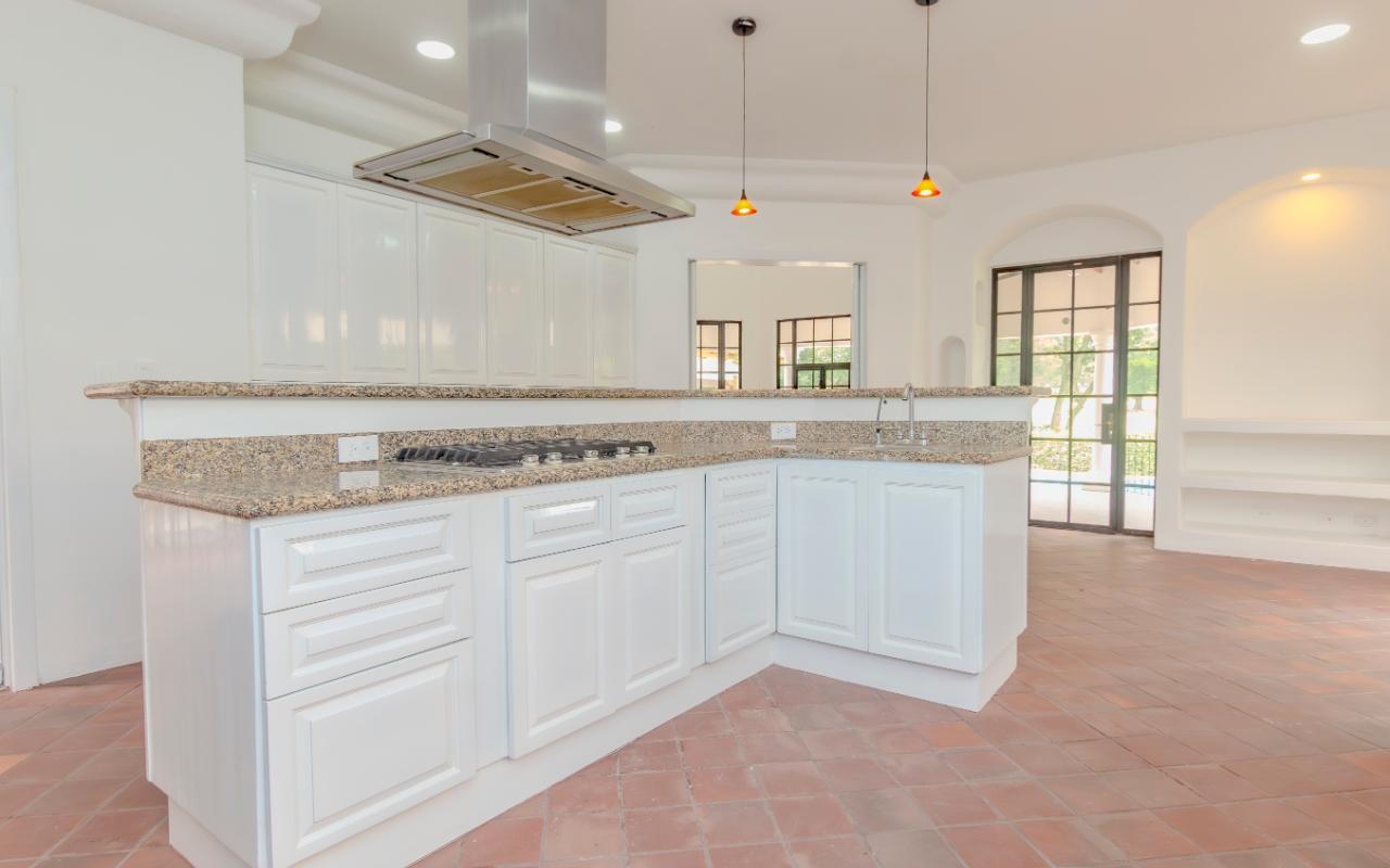 ID# 117158. Spanish Mediterranean house with pool for rent, Valle del Sol condominium. 4 bedrooms, 4.5 bathrooms, 400 m2 of construction, 800 m2 of land, US$6,000 (long term). This rental home, located in the prestigious Valle del Sol condominium in Santa Ana, is a unique opportunity for those seeking a luxury residence with all the amenities. The property offers a well-thought-out design and a recent renovation that ensures a modern and fresh environment for its new tenants. The house is built on two floors, with three bedrooms on the ground floor and an additional one on the second level. This last room is extremely versatile, being usable as an office, game room, or even as two separate rooms, making it a perfect space for guests or personal activities. The ground floor houses the master bedroom, ideal for those seeking the convenience of having the main areas of the house on one level. Each of the bedrooms has its own bathroom, offering privacy and comfort. The layout of the house includes a living room, a dining room, and a separate kitchen, guaranteeing defined and functional spaces for each activity. The kitchen has been completely remodeled and is equipped with high-end appliances, running on gas for greater efficiency and economy. The elegant built-in furniture and granite countertops add a touch of sophistication. Additionally, the terrace and BBQ area are designed for enjoying family and social gatherings outdoors, complemented by an external bathroom for added convenience. The pool is another attraction of the property, equipped with a system to heat the water, allowing its use at any time of the year. The large garden, besides providing a generous green space, offers direct access to the golf course, allowing enjoyment of this sport without leaving home. For the service staff, the house has a service room with its own bathroom, ensuring that all family needs are covered. The garage has space for two vehicles under a roof, with additional space in the entrance to park more cars, which is perfect for families with multiple vehicles or for receiving visitors. The Valle del Sol condominium is known for its high level of security and top-notch sports facilities, including the renowned golf course. The recreational areas of the condominium are ideal for practicing sports or enjoying a relaxing walk through its streets, all while contemplating the beautiful landscape the area offers. Santa Ana is a strategic location, known for its continuous growth and development. The proximity to shopping centers, high-end restaurants, and renowned international schools makes this property an unbeatable option for families seeking a quality life. Additionally, the easy access to main communication routes guarantees a quick connection to the city center and other points of interest in the metropolitan area. This rental home in Valle del Sol is the perfect option for those seeking luxury, comfort, and security in one of the best locations in Santa Ana. With its spacious and well-distributed areas, high-quality finishes, and the unparalleled amenities of the condominium, this property ensures an exceptional living experience.