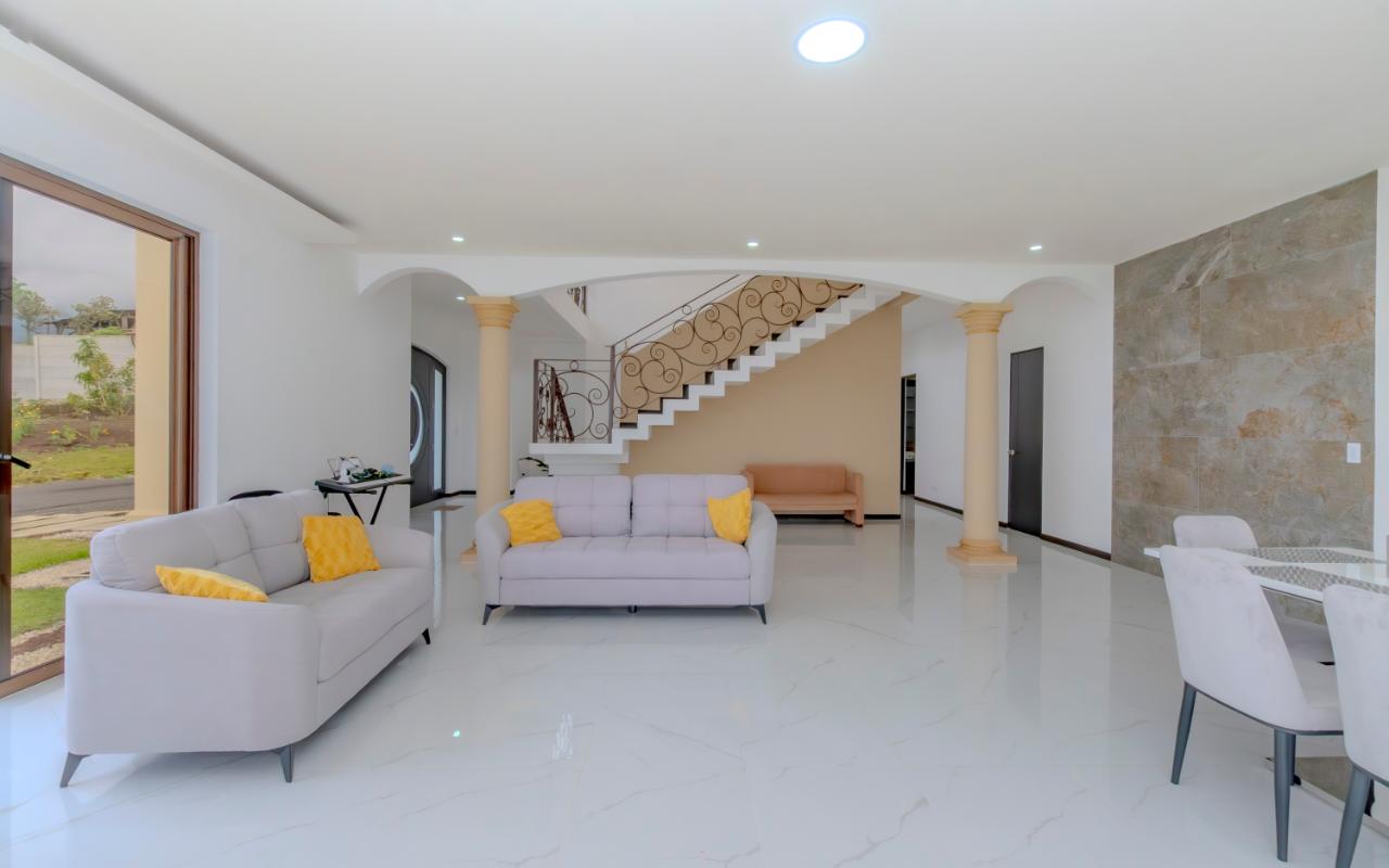 ID# 117165. Contemporary house for sale in Escazú. San Antonio. 3 bedrooms, 3.5 bathrooms, 435 m2 of construction, 1,580 m2 of land, US$680,000. Located in the prestigious area of San Antonio de Escazú, this impressive house offers a luxurious lifestyle with a blend of elegance and comfort. With an area of 435 square meters of construction on a generous plot of 1,580 square meters, this property is a gem that offers panoramic views of the central valley, ideal for those seeking a home that combines tranquility and accessibility to essential services. This residence has three spacious bedrooms, each designed to provide a private and cozy retreat. The master bedroom features a balcony, where mornings can be enjoyed with a cup of coffee while taking in the spectacular scenery. The bathrooms, three full and one half, are equipped with modern and elegant finishes that ensure a daily luxury experience. The house's two-level layout allows for a clear separation between social and private areas, thus optimizing functionality and comfort. The living room, dining room, and kitchen are integrated into an open concept design that promotes natural light and a sense of spaciousness, thanks to the large windows that also allow you to appreciate the stunning views. The porcelain tile floors add a touch of sophistication, while the iron details give a distinctive character to the decor. The kitchen area is a true delight for food lovers. Spacious and modern, it has ample storage space to meet the needs of any amateur or professional chef. The integration of the kitchen with the dining room and living room creates a perfect environment for family gatherings and social events. Outside, the large 1,580 square meter lot offers numerous possibilities. The well-maintained gardens provide an ideal green space for outdoor activities, while the large parking area, with a capacity for six or more vehicles, ensures comfort for family and guests. San Antonio de Escazú is known for its cool climate and proximity to nature, offering its residents an unparalleled quality of life. The area has excellent service infrastructure, including shopping centers, restaurants, prestigious schools, and medical centers, ensuring that all daily needs are met without having to travel far from home. In addition to the intrinsic features of the property, the location in San Antonio de Escazú adds significant value. The security and exclusivity of the area make it a desirable place to live, especially for those seeking a quiet and safe environment, yet with easy access to the city. The proximity to main routes and excellent connectivity with the rest of the Greater Metropolitan Area make commuting quick and efficient. This house in San Antonio de Escazú not only offers a high-quality living space but also a strategic location that combines the best of urban and rural life. It is a unique opportunity for those seeking a home that offers luxury, comfort, and a superior quality of life in one of the most desirable areas of Costa Rica.
