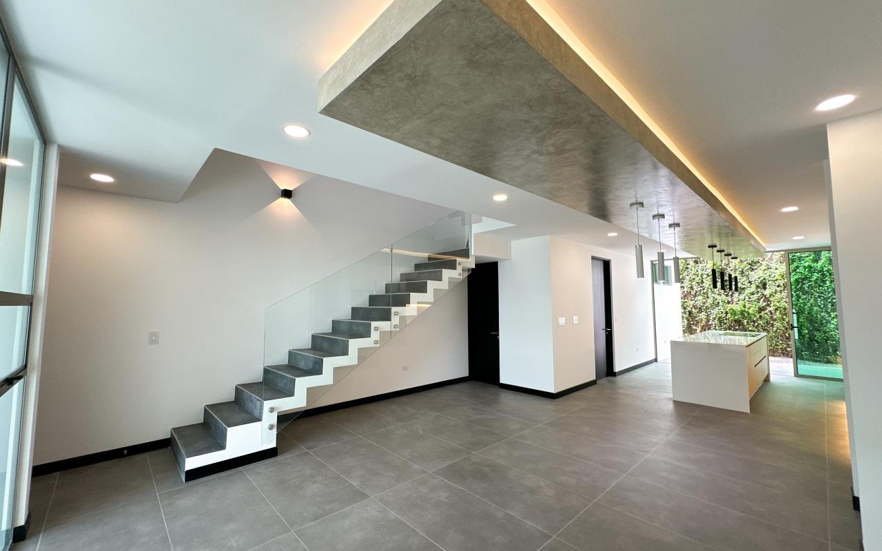 ID# 117281. Modern Home for Sale in Escazú. 4 Bedrooms, 4 Bathrooms, 275 m² of Construction, US$425,000. Located in the prestigious Bonavista Condominium in Escazú, this residence redefines the concept of luxury and comfort, offering a unique opportunity for those who value elegance, breathtaking views, and an unparalleled quality of life in the heart of Escazú. With its contemporary two-story design, this home has been crafted with exceptional attention to detail, providing an unmatched living experience. From the moment you step in, you’ll be captivated by its integrated social area, where the living room, dining room, and kitchen seamlessly flow in an open-concept design that promotes interaction and comfort. Modern, high-quality finishes stand out in every corner, while high ceilings and large windows allow natural light to flood the house, enhancing the warmth of the carefully distributed LED lighting. The terrace, a retreat to enjoy the majestic views of the Central Valley, is perfect for relaxing or hosting guests, complemented by a private jacuzzi that offers tranquil moments surrounded by nature. On the upper level, the master bedroom has been designed as an oasis of comfort, featuring a spacious walk-in closet and an en-suite bathroom with a double vanity that perfectly combines functionality and luxury. Additionally, the TV room offers a cozy environment for family moments or personal entertainment. The practical design of this property includes covered parking for two vehicles and a green area that adds a natural touch to the surroundings, creating a balance between modernity and connection with nature. Living in Bonavista Condominium grants access to one of the most exclusive communities in Escazú, renowned for its focus on quality of life. Its amenities are designed to meet the most demanding tastes, including a clubhouse for social events, a pool, gym, jacuzzi, sauna, playground, a lookout point with spectacular views, a spa area for relaxation, and a party area ideal for memorable celebrations. Security is a priority, with 24/7 surveillance and strict access controls ensuring a protected environment for all residents. Escazú itself is one of the most exclusive and sought-after areas in the Central Valley, known for its sophisticated lifestyle and strategic location with easy access to major roads like Route 27, quickly connecting to San José and other parts of the country. This district stands out for its high quality of life, proximity to prestigious educational institutions like Country Day School and Blue Valley School, and top-tier medical services such as Hospital CIMA. Additionally, it boasts a vibrant commercial and entertainment offering, with centers like Multiplaza Escazú and Avenida Escazú providing a wide array of shops, fine dining restaurants, cinemas, and activities for the whole family. Nature lovers will enjoy nearby parks, trails, and green spaces, perfect for hiking or outdoor sports, while the fresh climate of Escazú, combined with its tranquil and safe atmosphere, makes it one of the most attractive places to live. This residence in the Bonavista Condominium represents the perfect blend of design, exclusivity, and strategic location—a place where every detail has been carefully considered to offer a sophisticated and fulfilling lifestyle. This property is much more than a house; it is a sanctuary where luxury and comfort harmonize with nature and modernity, making it an ideal choice for those seeking an unparalleled living experience.
