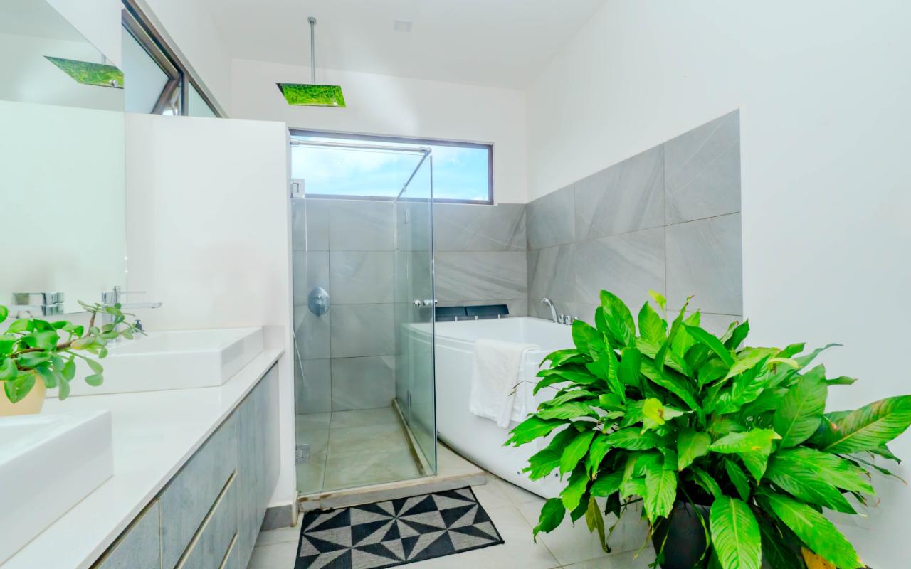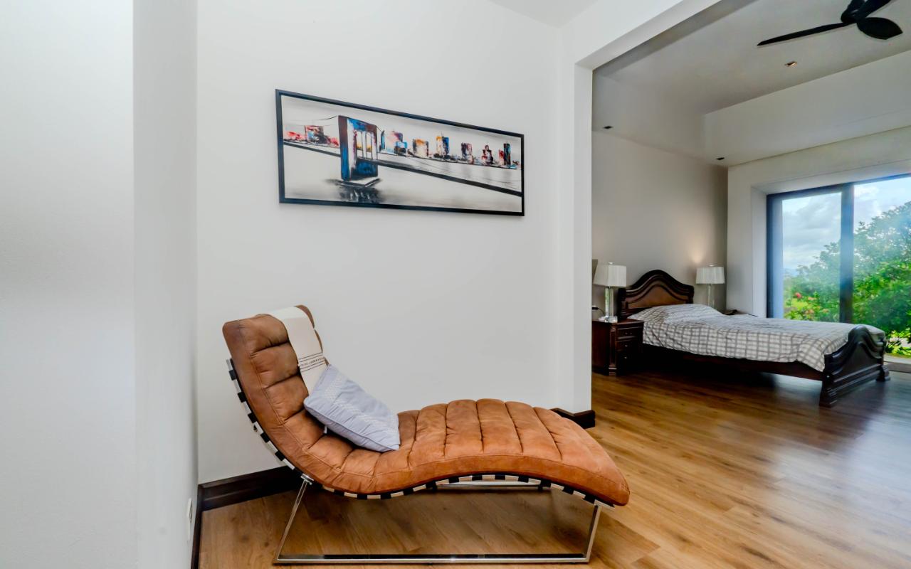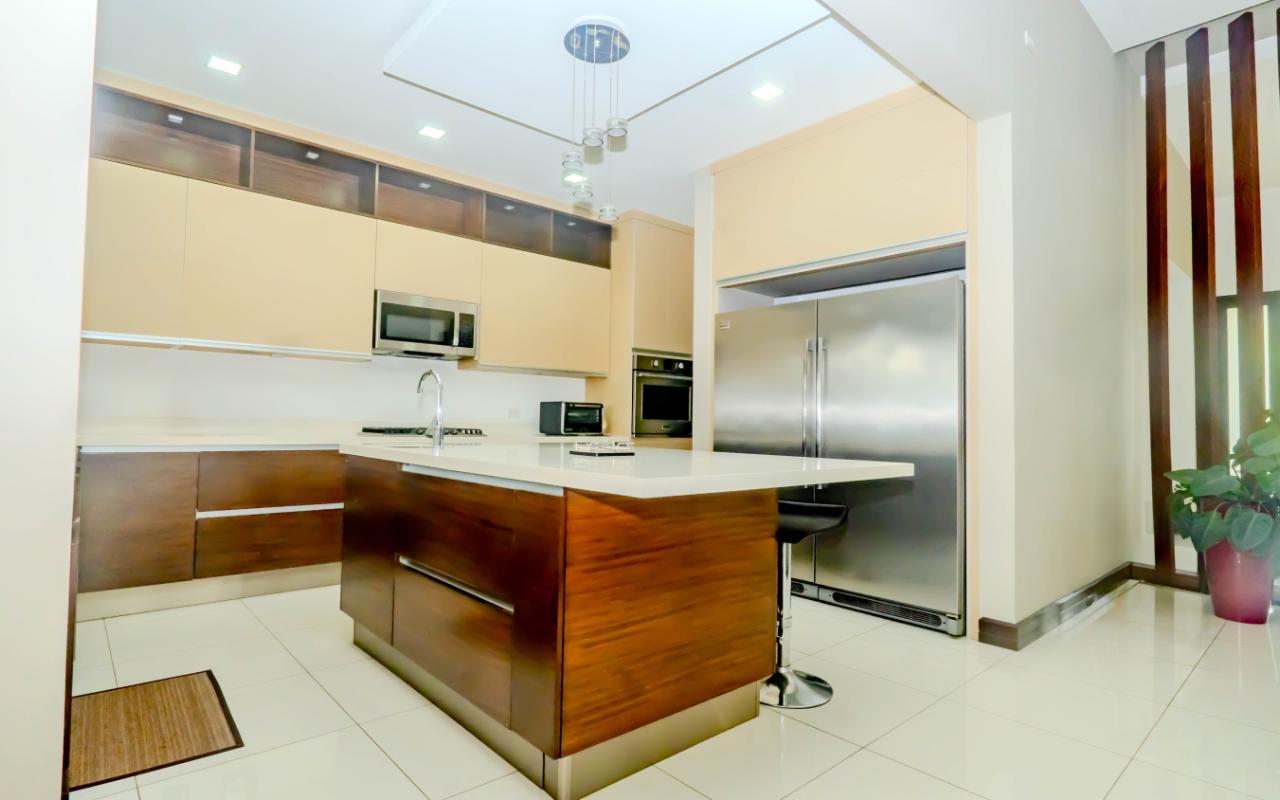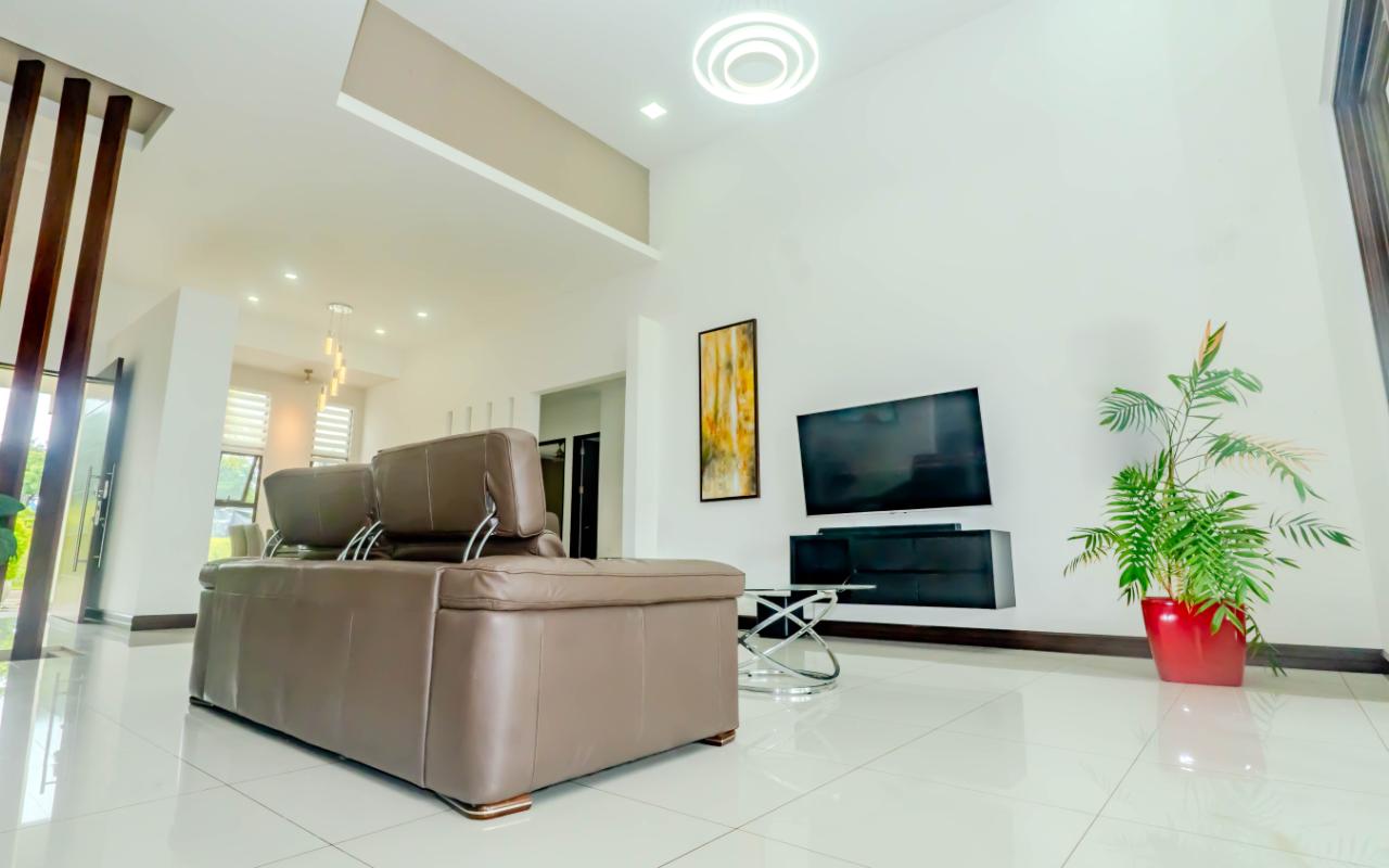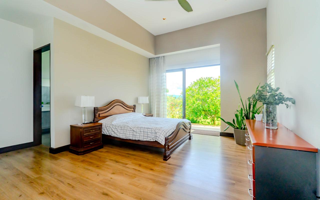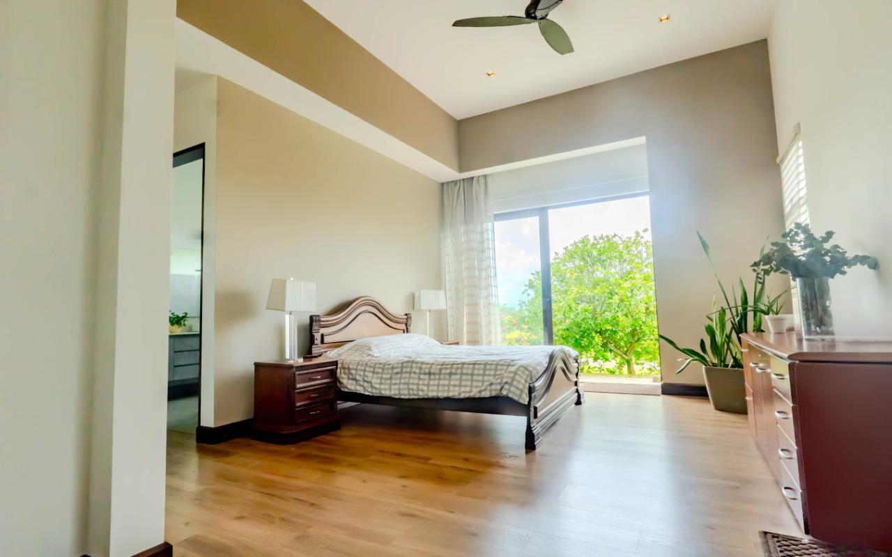 ID# 117392. Home for Sale in Hacienda Los Reyes, La Guácima. 4 bedrooms, 4.5 bathrooms, 367 m² of construction, 881 m² of land, US $720,000. Located in one of the most exclusive residential communities in the western Central Valley, this single-level residence in Hacienda Los Reyes, La Guácima, blends contemporary architecture with luxury finishes and a functional layout designed for those who prioritize comfort, elegance, and quality of life. Designed with a focus on spaciousness and seamless connectivity, the home features 4 bedrooms and 4.5 bathrooms, integrating premium details throughout and offering a residential experience of the highest standard. From the entrance, the home impresses with 3-meter-high ceilings and double-height spaces in the living room, dining room, and master bedroom, creating a fresh and airy atmosphere flooded with natural light. European-style glass windows and doors, along with handcrafted cedar doors and baseboards, elevate the aesthetic and structural quality. Social areas feature high-traffic porcelain floors, while bedrooms are fitted with German waterproof laminate flooring, combining durability with refined design. The master suite is a private retreat with its own deck, air conditioning, electric curtains, spacious walk-in closet, and a luxurious bathroom with jacuzzi. Each of the three additional bedrooms has its own en-suite bathroom and cross-ventilation, ensuring privacy and comfort. The TV room is large enough to serve as a secondary lounge or family room. The open-concept kitchen is one of the home’s highlights, with quartz countertops, a built-in gas stove, oven tower, dishwasher, and integrated microwave extractor for a modern, efficient culinary setup. The property also includes efficient tankless water heaters, a water catchment system with a silent hydropneumatic pump, Ethernet wiring throughout, an alarm system, smart light switches, LED lighting, ceiling fans in every room, and a fully integrated indoor laundry area. The west-facing terrace provides an open view, ideal for enjoying sunsets, outdoor dining, or simply the peace of the surroundings. Parking includes a covered garage for 2 vehicles plus space for 4 additional cars, perfect for guests or large families. Living in Hacienda Los Reyes means more than just location—it’s being part of a gated, consolidated community with 24/7 security, wide streets, lush green areas, and access to a private club with golf course, tennis courts, gym, pools, restaurants, and an equestrian track. The area is also conveniently close to top international schools like Country Day School and GSD International School, as well as supermarkets such as Auto Mercado, Vindi, and Fresh Market, with quick access to Route 27. La Guácima has seen sustained property value growth in recent years, thanks to its organized urban planning, pleasant climate, and proximity to key free-trade zones like El Coyol, making it an ideal location for executives, expat families, or anyone seeking a premium residential lifestyle with outstanding connectivity. This home in Hacienda Los Reyes not only meets high standards of design and construction but also embodies a lifestyle of comfort, smart living, and a deep connection to nature.