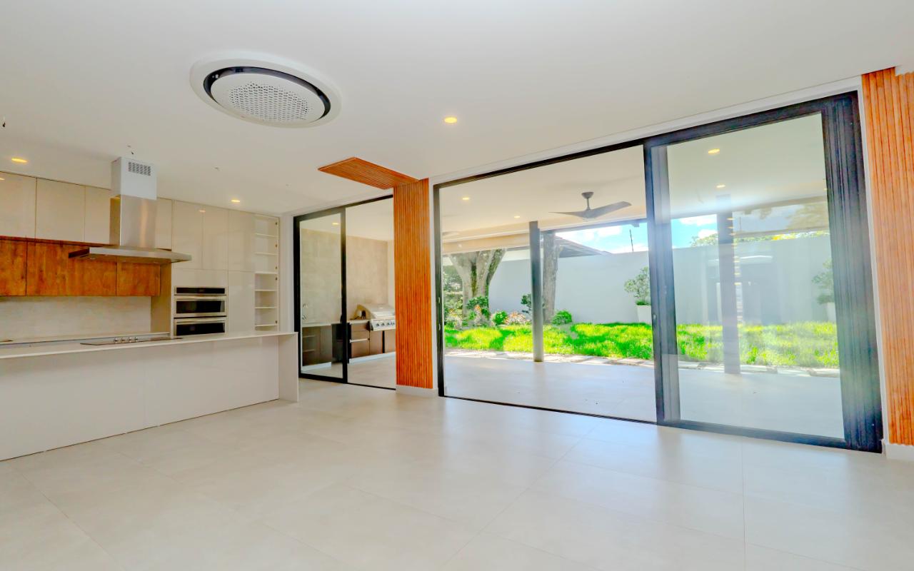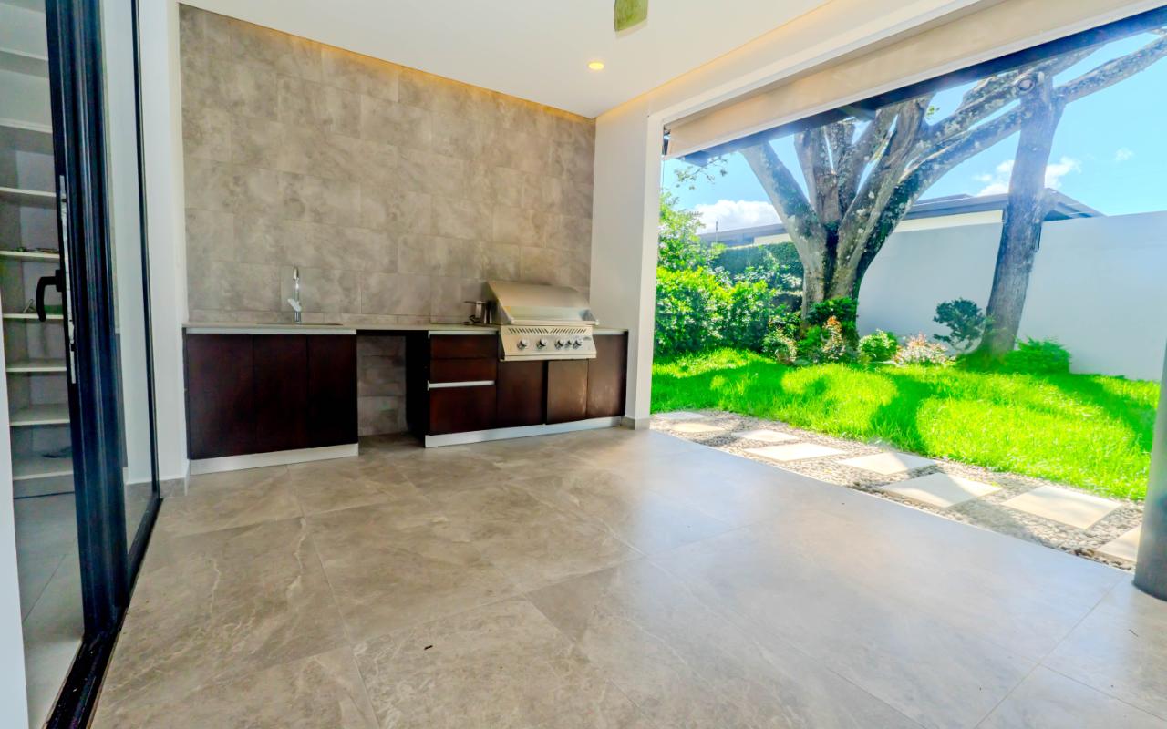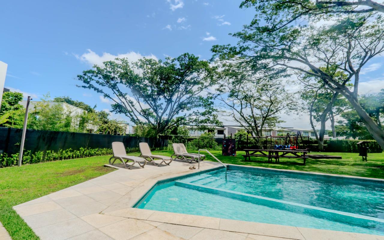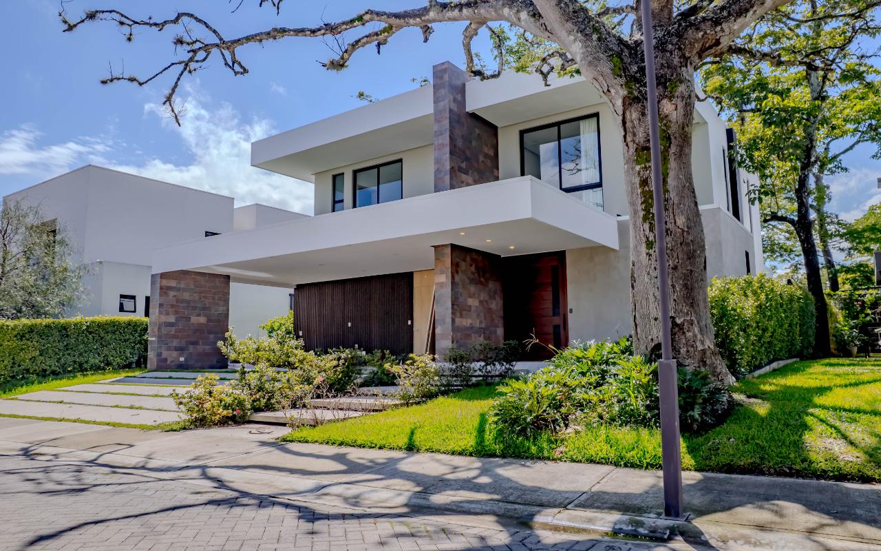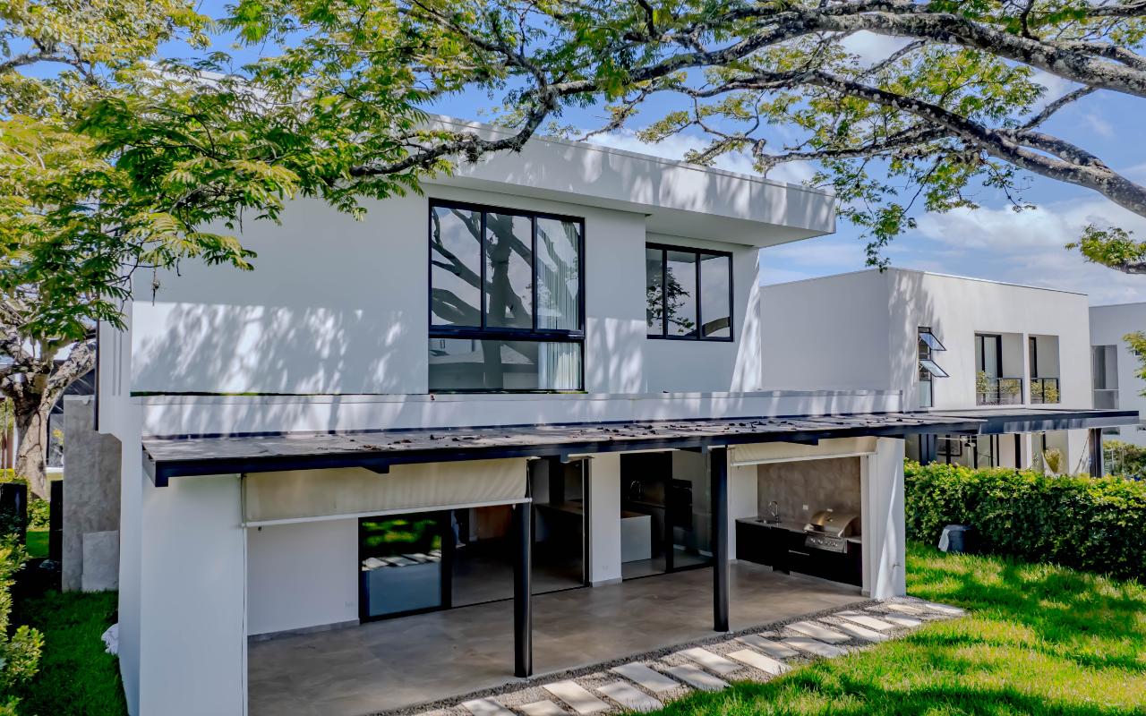 ID# 117394. Modern house for sale in Santa Ana, San José, Vereda Lindora condominium. 4 bedrooms, 4 bathrooms, 420 m² of construction, 634 m² of land, US $950.000. Located in one of the most sought-after areas in the western region of San José, within a gated community that blends security, nature, and family-oriented amenities, this impressive two-story home offers 420 m² of construction on a spacious 634 m² lot. Designed with a focus on spaciousness, functionality, and harmony with the surroundings, this property presents a unique opportunity for those looking to live in style without sacrificing everyday comfort. From its elegant façade, the house sets the tone for a residential experience tailored to those who appreciate well-distributed spaces, abundant natural light, and a balance between aesthetics and practicality. On the first floor, a versatile room can serve as a private office, guest bedroom, or accessible ground-level suite—ideal for those who prefer to avoid stairs. Adjacent to it, a full bathroom provides convenience for both social areas and the multipurpose room. The heart of the home lies in the integrated living, dining, and kitchen space under an open-concept layout, where large windows allow natural light to pour in and visually connect the indoors with the terrace and backyard. This outdoor area, perfect for al fresco gatherings, features a BBQ zone that invites relaxed moments with family and friends in a natural, welcoming setting. The property also includes a full service room and a covered garage with space for three cars, plus three additional parking spots for guests or family needs. Upstairs, the house continues its commitment to comfort with three main bedrooms, each with a private en-suite bathroom and walk-in closet, ensuring personal space and privacy for every household member. A multifunctional area can be used as a TV room, home office, gym, or creative space, and the wide balcony offers tranquil views of the green areas, enhancing the sense of peace that defines this home. The property is located within a private gated community that provides a safe, family-friendly environment—ideal for those who prioritize quality of life. Common areas include a children's playground, dog park, swimming pool with BBQ area, indoor playroom, and walking trails, offering recreational options for all members of the family without having to leave the residential complex. One of the most appealing aspects of this home is its seamless blend of functionality and style. Every space has been thoughtfully designed, from the smooth flow between rooms to the choice of materials and finishes that stand out for their durability and modern elegance. Additionally, the property is held under a corporate structure, which may offer strategic advantages for investors or buyers interested in acquiring through a pre-established legal entity. This home not only meets the expectations of a modern family—with space, intelligent layout, social areas, privacy, and security—but also offers a lifestyle that balances private comfort with the benefits of community living. If you're looking for a move-in-ready property in a prime location with a design that combines elegance and practicality, this residence is a smart choice.