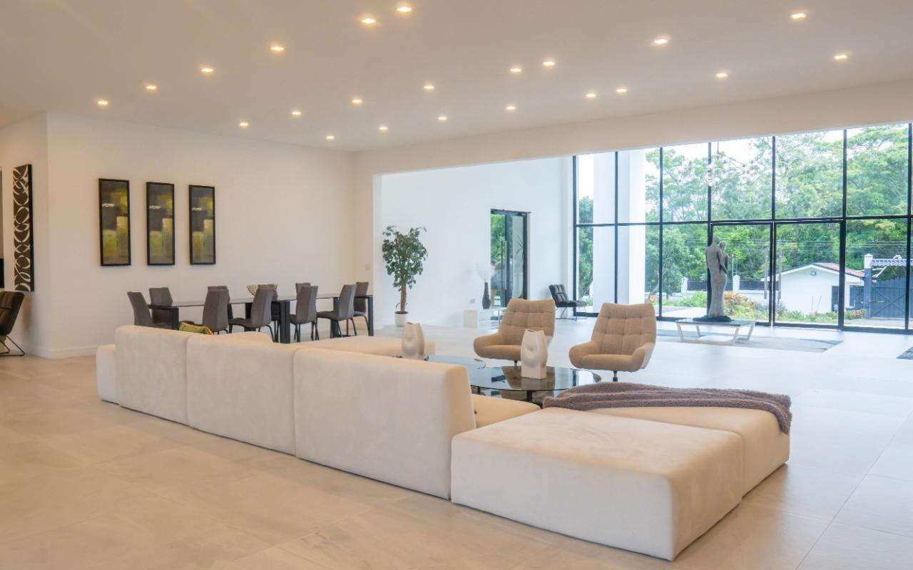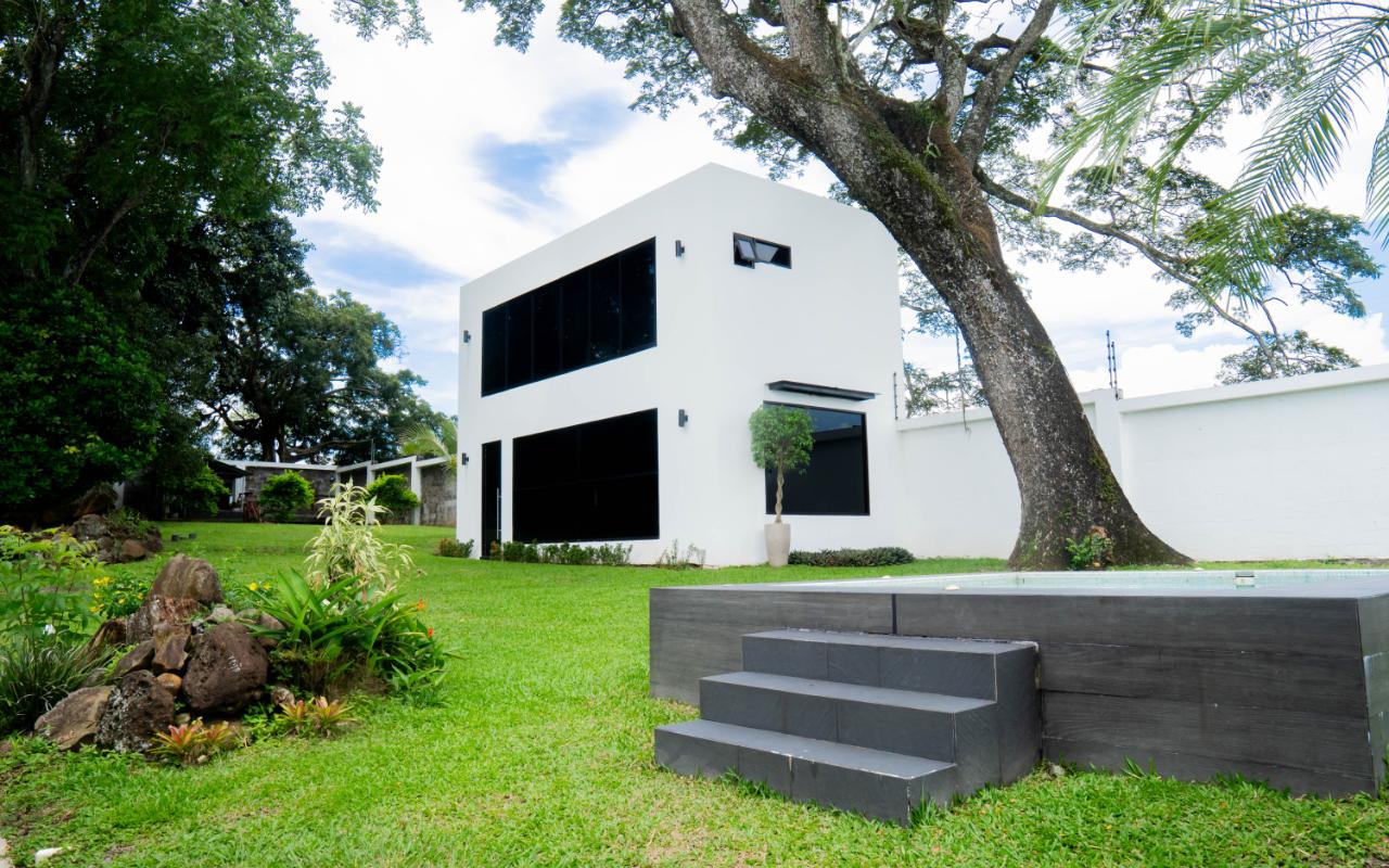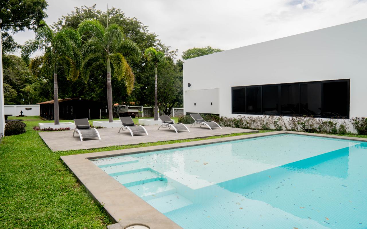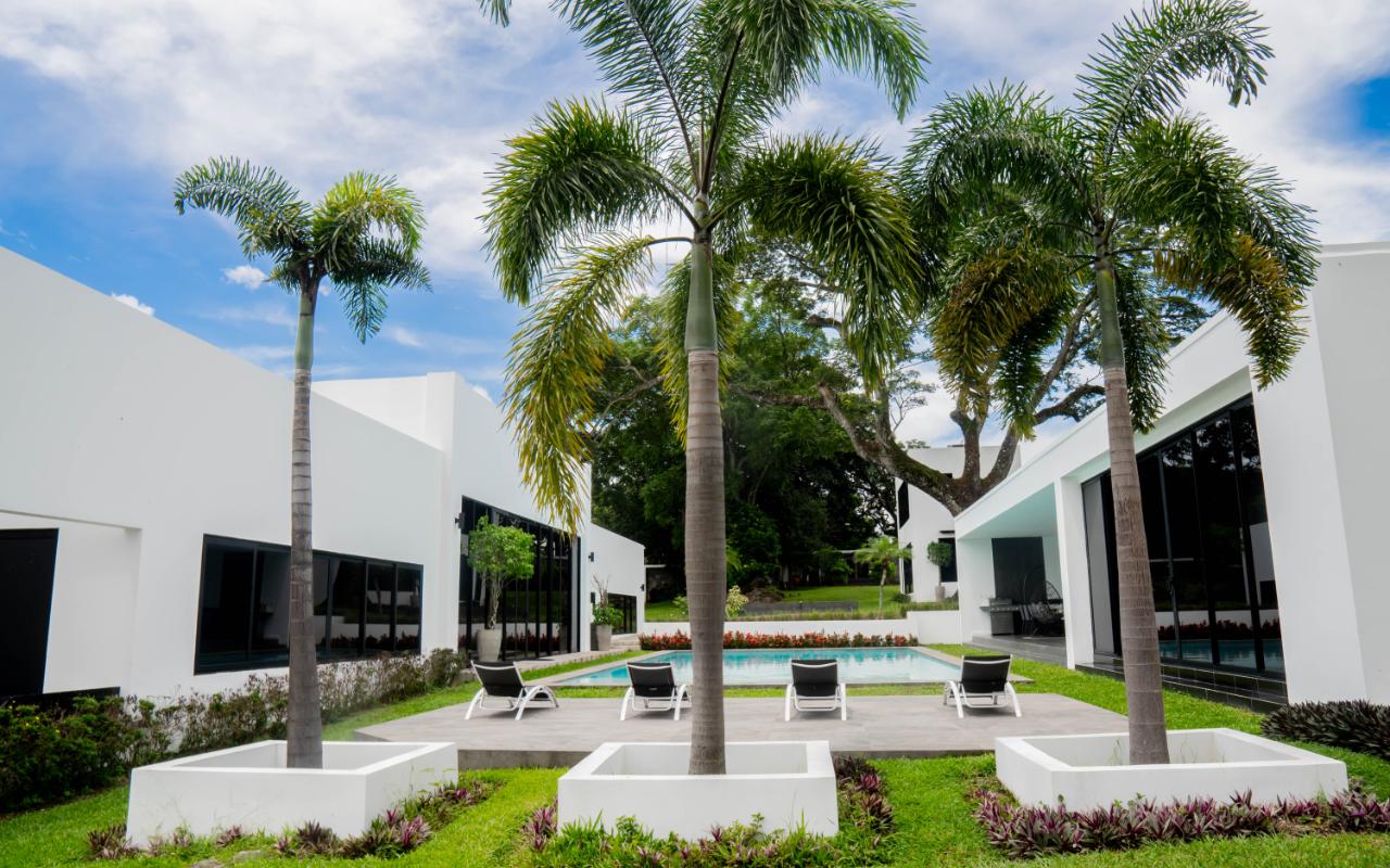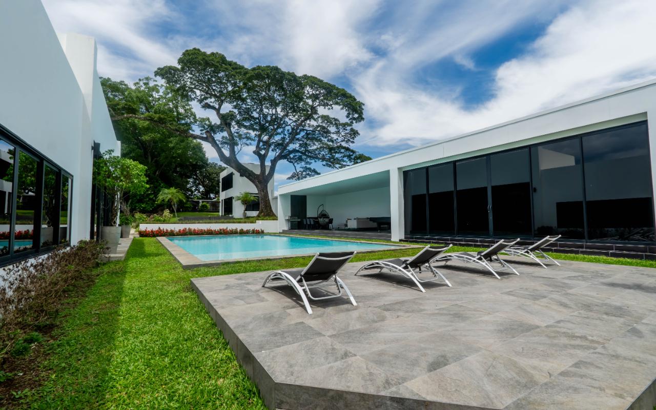 ID# 117396 – Luxury Home for Sale or Rent in La Garita, Alajuela | 6 Bedrooms | 6 Bathrooms | 1,860 m² Construction | 10,005 m² Land | US$2,500,000 This luxury home for sale in La Garita, Alajuela—Casa Brisa Blanca—is a landmark estate rising over an expansive one-hectare private property in one of Costa Rica’s warmest and most desirable microclimates. Known for its perfect year-round weather, strategic location near the Juan Santamaría International Airport (SJO), and immediate access to Route 27 and the Pacific Coast, La Garita has become a premier destination for high-end real estate, boutique hotel developments, and wellness-oriented living. Casa Brisa Blanca embodies that lifestyle at the highest level, combining contemporary architecture, scale, privacy, and resort-style amenities in an exclusive environment. From the moment you arrive, the property makes a bold architectural statement. A pristine white façade paired with polarized glass creates a striking contrast that defines the home’s modern elegance. Two reflecting pools lead to a dramatic triple-height foyer framed by floor-to-ceiling windows and an artistic chandelier. The grand social area unfolds in a massive open space, where the living room, dining room, and chef-designed kitchen integrate seamlessly—or function independently—depending on the occasion. The kitchen is equipped with high-end appliances, exotic marble countertops, floor-to-ceiling cabinetry, a walk-in pantry, and direct access to a private breakfast terrace overlooking the pool. Premium finishes elevate every space, including large-format Italian and Spanish porcelain tiles, 3-meter-high doors, and double and triple-height ceilings that maximize natural light and ventilation—an essential feature of properties in La Garita’s warm climate. The private wing includes six bedrooms between the main residence and a separate guest apartment, each with en-suite bathrooms and walk-in closets. The primary suite, spanning over 100 m², offers direct pool views, a spa-inspired bathroom with Roman tub, double vanities, and an oversized luxury walk-in closet. Created for both relaxation and entertainment, this exclusive property features a game room with full bar and pool table, a family room, a private movie theater, and a spacious covered terrace with BBQ station and outdoor bar. All social spaces open to the central pool area, where you’ll find a large jacuzzi, a fully equipped gym, and a firepit lounge set over white sand for a tropical resort feel. The estate also includes lush landscaped gardens, horse stables, and a private well, providing autonomy and sustainability rarely found in luxury Costa Rica real estate. Casa Brisa Blanca is more than a home—it is a high-value investment opportunity suitable for a boutique hotel, equestrian estate, family compound, or wellness retreat. Its privileged location—under 15 minutes from Juan Santamaría International Airport, and less than one hour from Costa Rica’s Central Pacific Coast beaches—ensures unprecedented convenience for both local and international buyers. Nearby you’ll find top private hospitals, international schools, premium shopping centers, and recreational destinations, all while enjoying the tranquility, exclusivity, and warm climate that make La Garita one of Costa Rica’s most coveted residential zones.