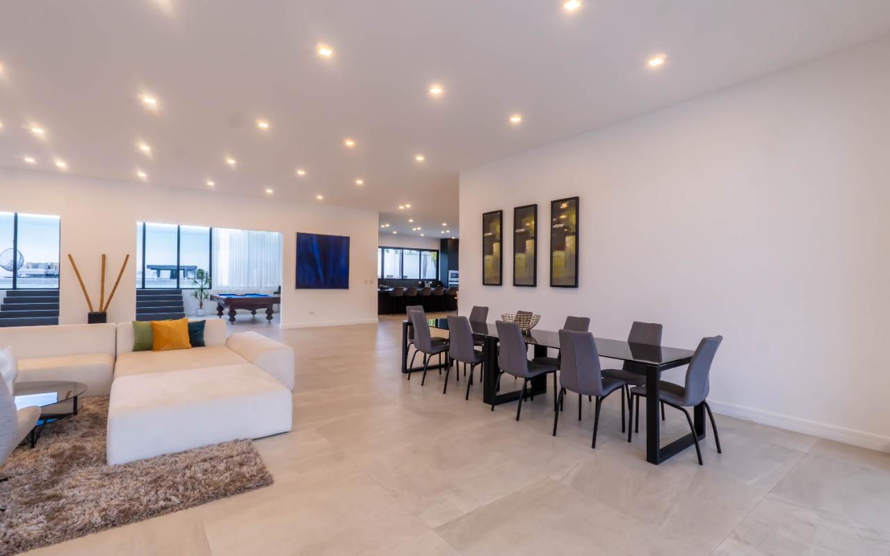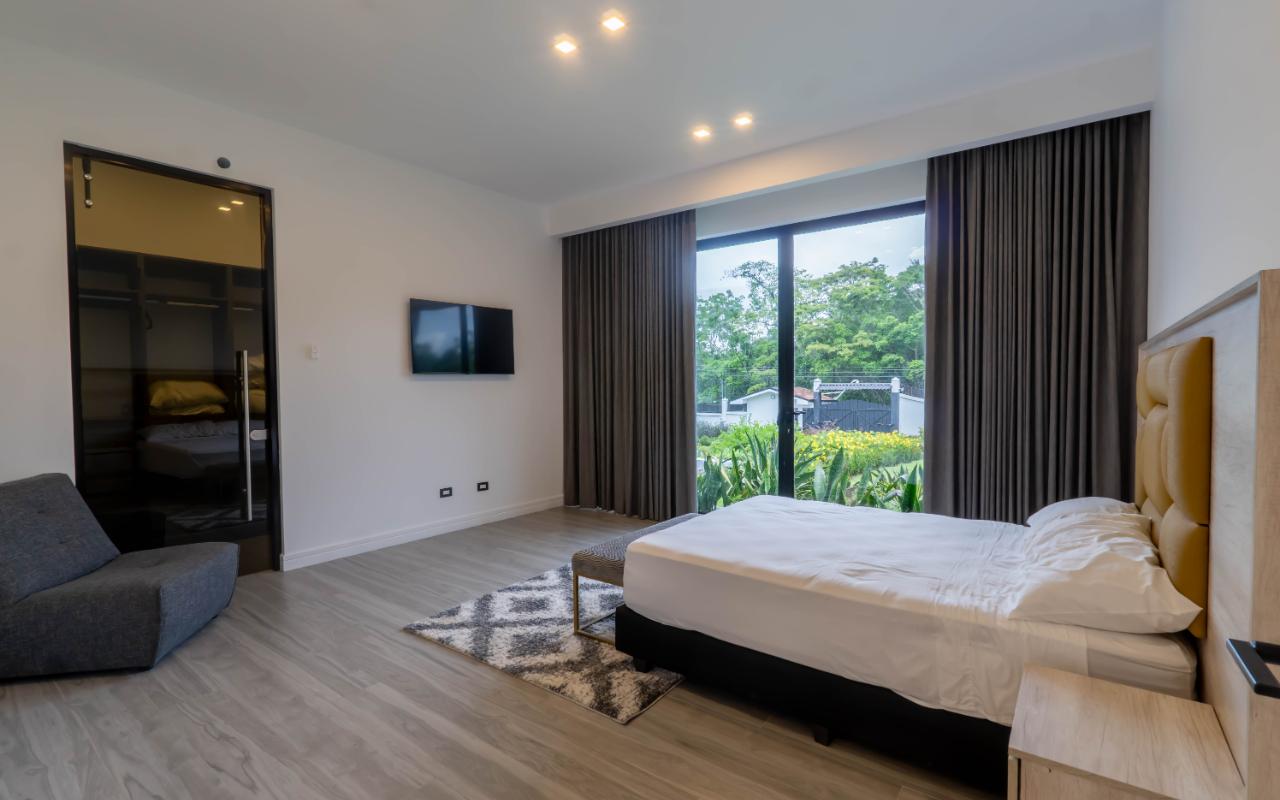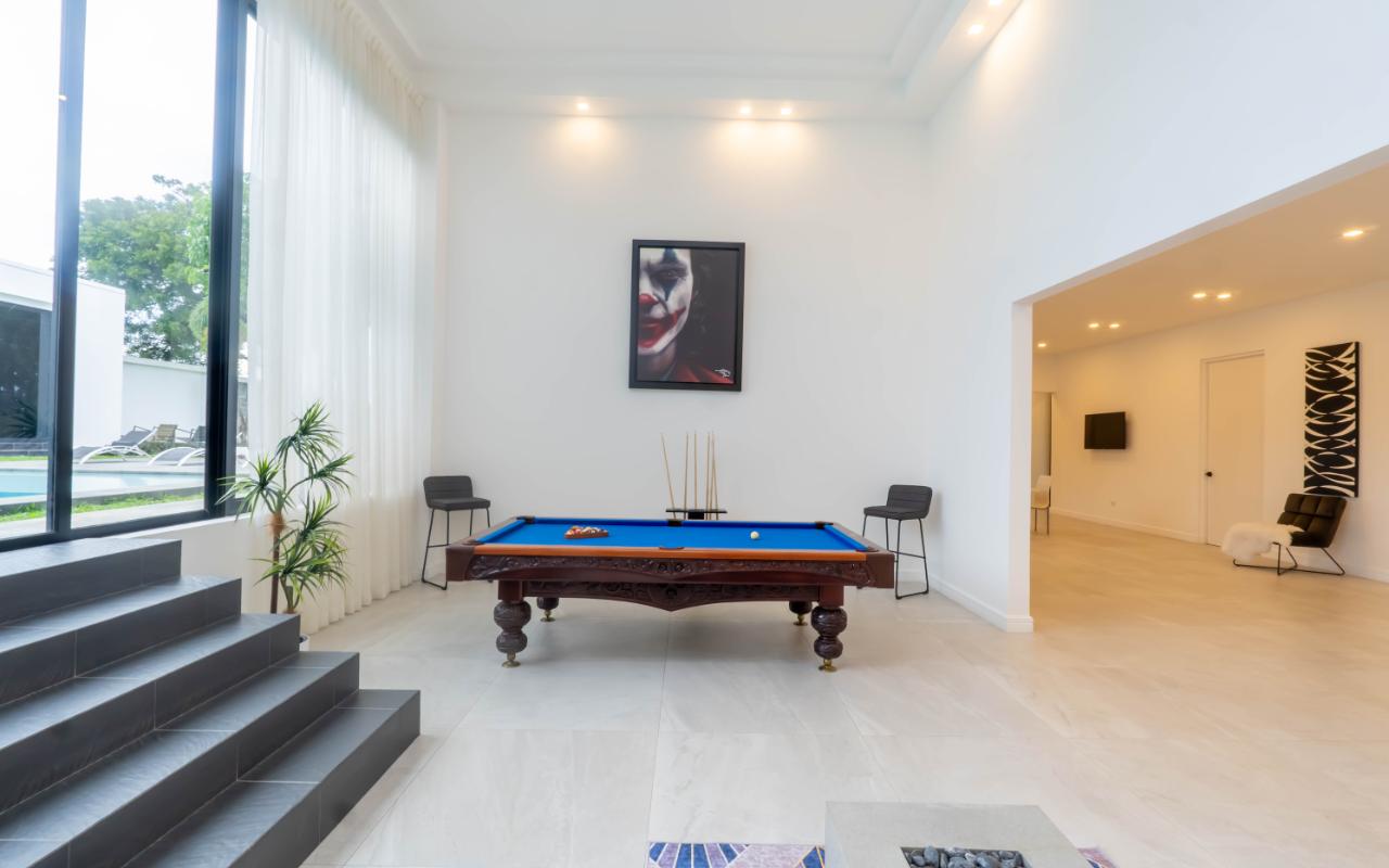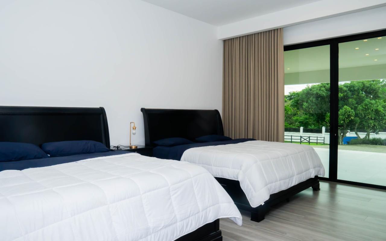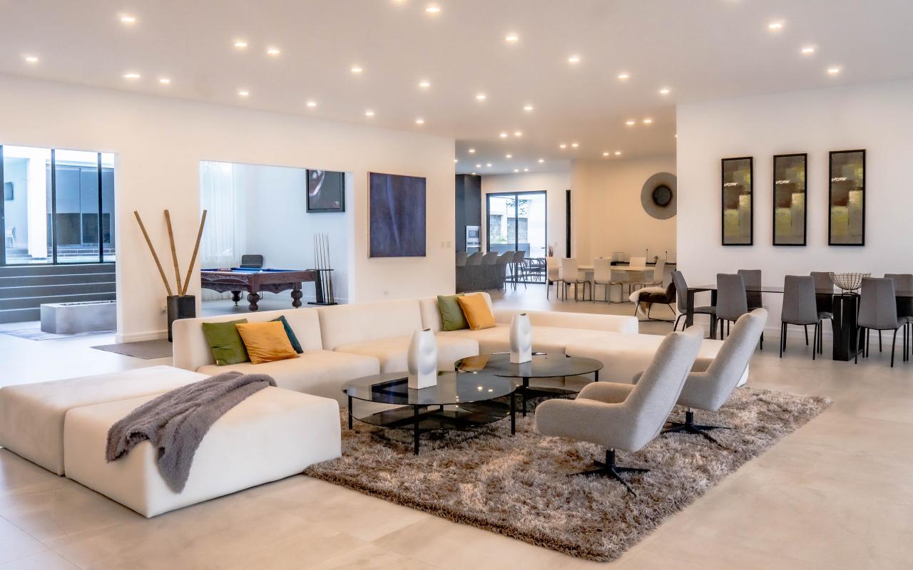 ID# 117396 – Luxury Home for Sale or Rent in La Garita, Alajuela | 6 Bedrooms | 6 Bathrooms | 1,860 m² Construction | 10,005 m² Land | US$2,500,000 This luxury home for sale in La Garita, Alajuela—Casa Brisa Blanca—is a landmark estate rising over an expansive one-hectare private property in one of Costa Rica’s warmest and most desirable microclimates. Known for its perfect year-round weather, strategic location near the Juan Santamaría International Airport (SJO), and immediate access to Route 27 and the Pacific Coast, La Garita has become a premier destination for high-end real estate, boutique hotel developments, and wellness-oriented living. Casa Brisa Blanca embodies that lifestyle at the highest level, combining contemporary architecture, scale, privacy, and resort-style amenities in an exclusive environment. From the moment you arrive, the property makes a bold architectural statement. A pristine white façade paired with polarized glass creates a striking contrast that defines the home’s modern elegance. Two reflecting pools lead to a dramatic triple-height foyer framed by floor-to-ceiling windows and an artistic chandelier. The grand social area unfolds in a massive open space, where the living room, dining room, and chef-designed kitchen integrate seamlessly—or function independently—depending on the occasion. The kitchen is equipped with high-end appliances, exotic marble countertops, floor-to-ceiling cabinetry, a walk-in pantry, and direct access to a private breakfast terrace overlooking the pool. Premium finishes elevate every space, including large-format Italian and Spanish porcelain tiles, 3-meter-high doors, and double and triple-height ceilings that maximize natural light and ventilation—an essential feature of properties in La Garita’s warm climate. The private wing includes six bedrooms between the main residence and a separate guest apartment, each with en-suite bathrooms and walk-in closets. The primary suite, spanning over 100 m², offers direct pool views, a spa-inspired bathroom with Roman tub, double vanities, and an oversized luxury walk-in closet. Created for both relaxation and entertainment, this exclusive property features a game room with full bar and pool table, a family room, a private movie theater, and a spacious covered terrace with BBQ station and outdoor bar. All social spaces open to the central pool area, where you’ll find a large jacuzzi, a fully equipped gym, and a firepit lounge set over white sand for a tropical resort feel. The estate also includes lush landscaped gardens, horse stables, and a private well, providing autonomy and sustainability rarely found in luxury Costa Rica real estate. Casa Brisa Blanca is more than a home—it is a high-value investment opportunity suitable for a boutique hotel, equestrian estate, family compound, or wellness retreat. Its privileged location—under 15 minutes from Juan Santamaría International Airport, and less than one hour from Costa Rica’s Central Pacific Coast beaches—ensures unprecedented convenience for both local and international buyers. Nearby you’ll find top private hospitals, international schools, premium shopping centers, and recreational destinations, all while enjoying the tranquility, exclusivity, and warm climate that make La Garita one of Costa Rica’s most coveted residential zones.