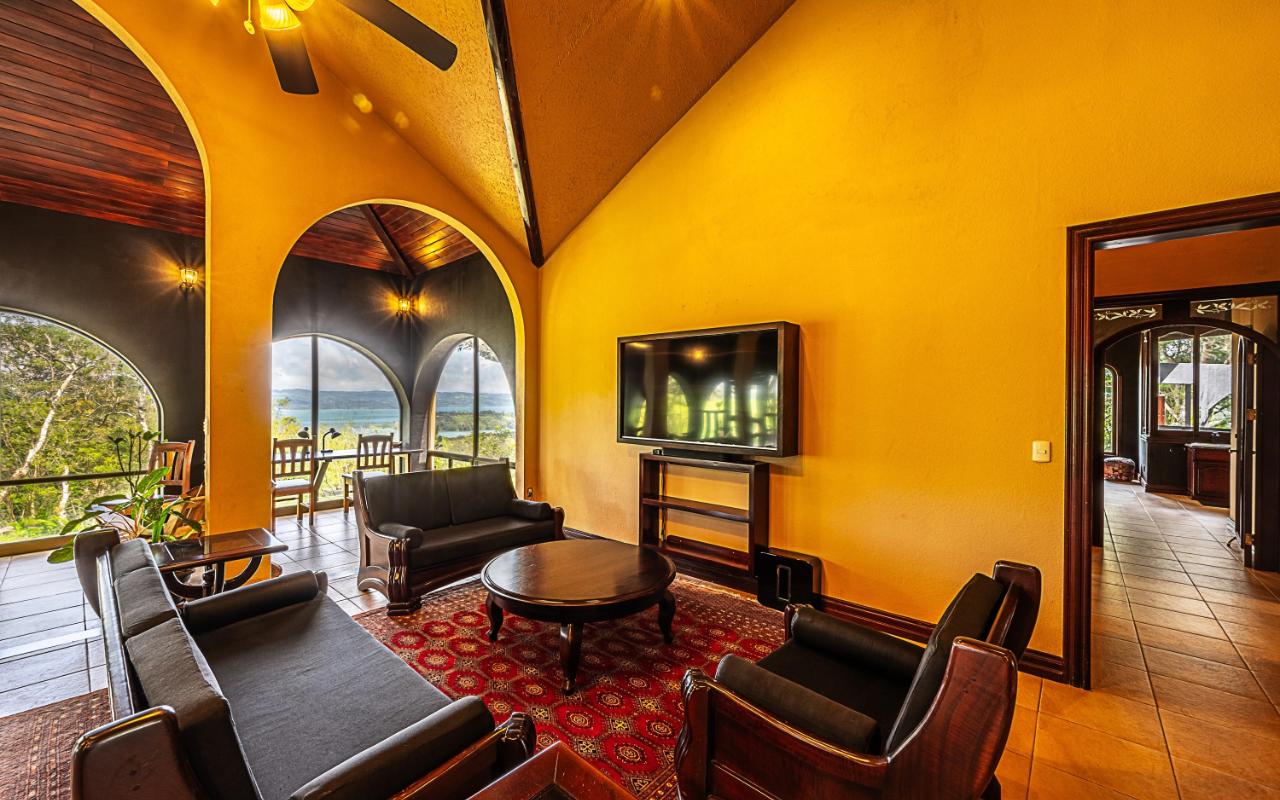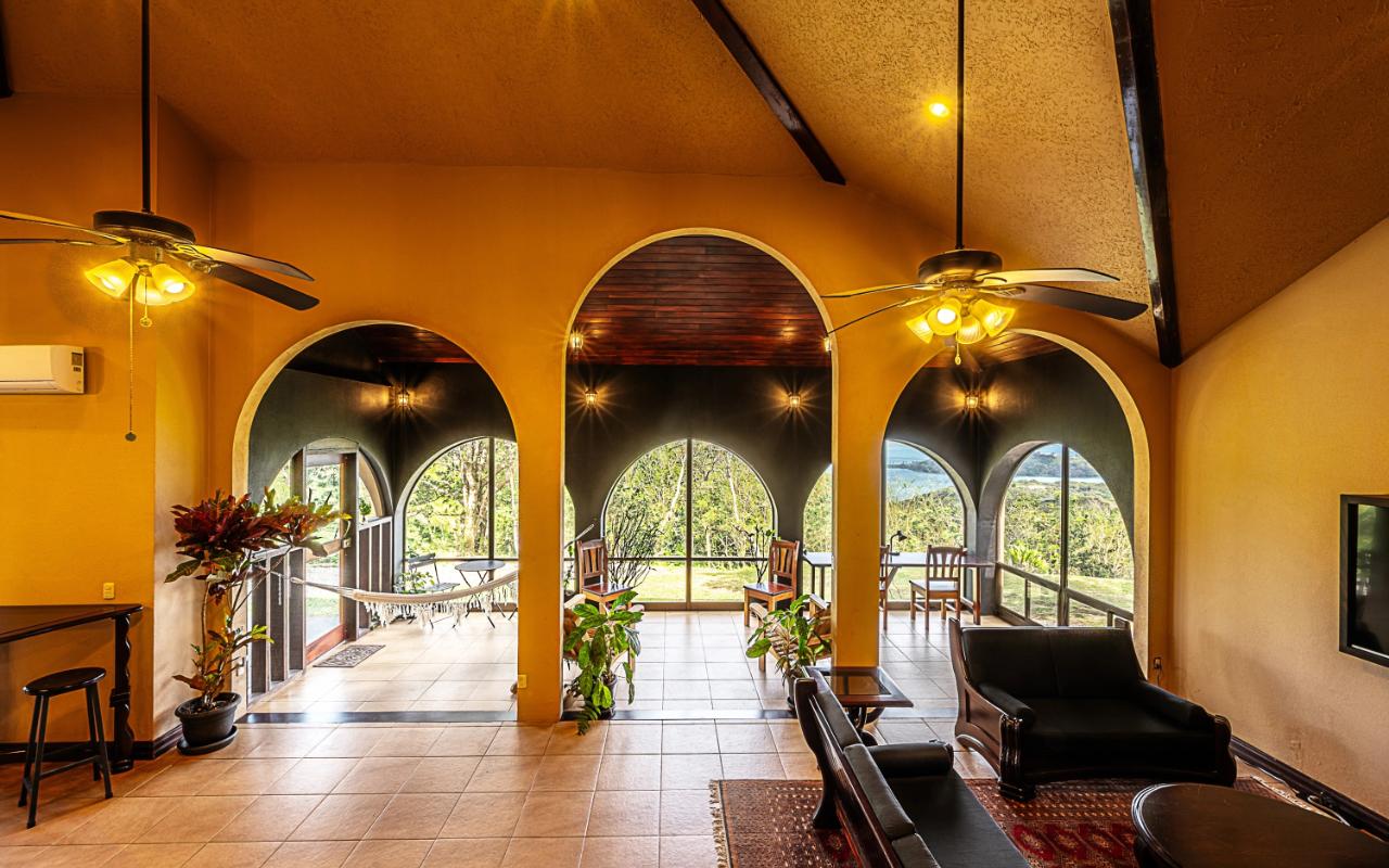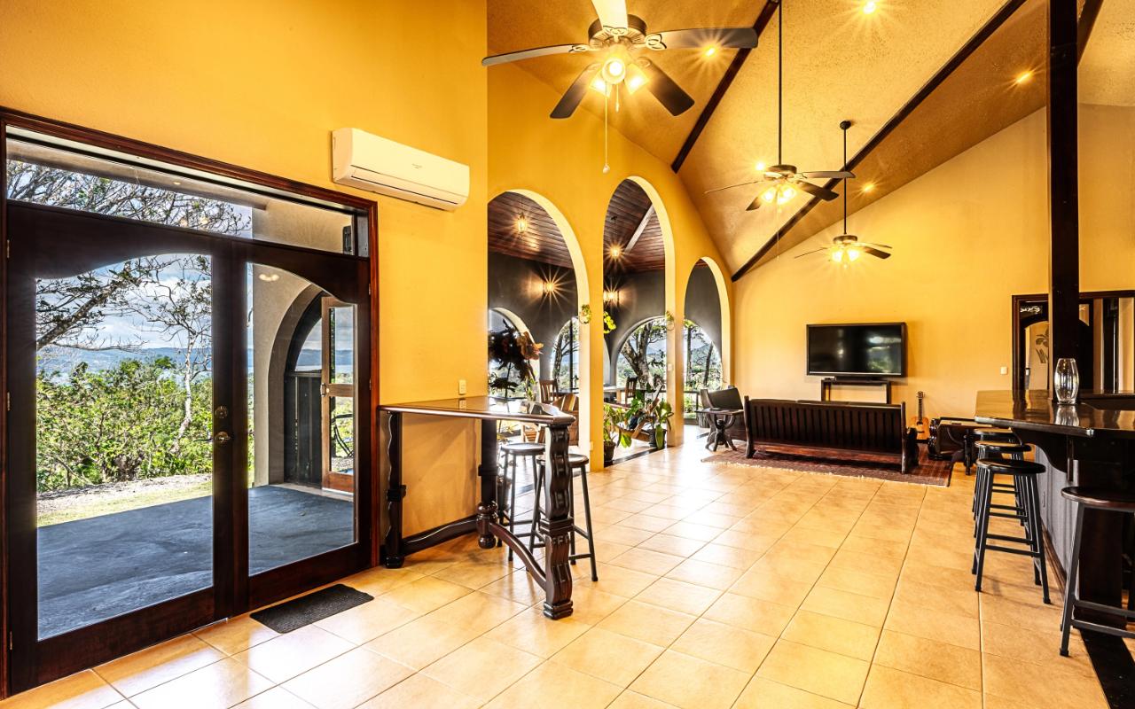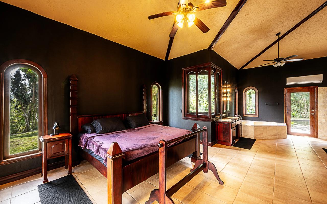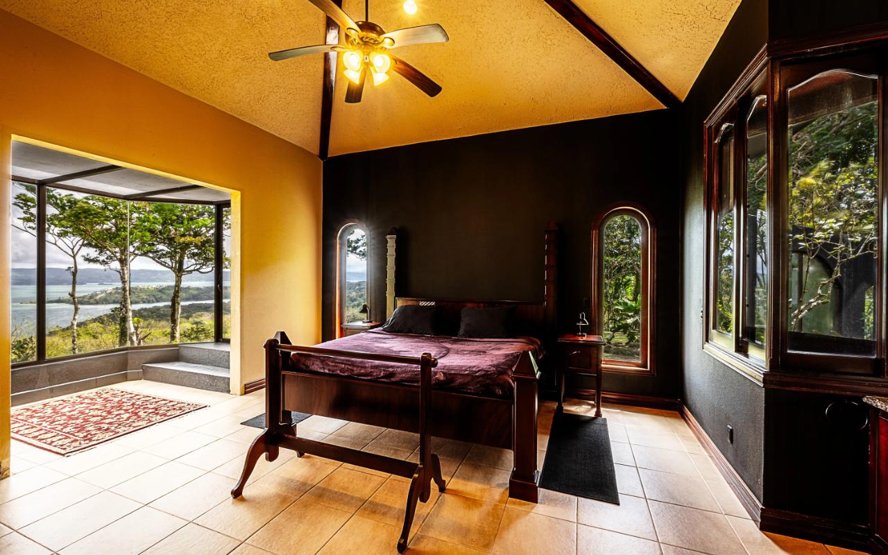 ID# 117399. House for sale in Tilarán, Guanacaste. 353 m² of construction, 16,000 m² of land, 5 bedrooms, 5 bathrooms, US $878,000. Nestled in the serene natural beauty of Lake Arenal, Costa Rica, this gated estate of over 16,000 m² offers a unique residential experience surrounded by panoramic views of the lake, the majestic Arenal Volcano, and lush green mountains. Designed for those seeking a lifestyle in harmony with nature while maintaining modern comfort and functionality, the main residence spans approximately 353 m² and features full accessibility, solid concrete walls inside and out, and a new metal roof for exceptional durability and low maintenance. The open-concept living space is crowned by vaulted ceilings over six meters high, creating an airy, light-filled atmosphere ideal for living, working, or entertaining. The home includes three bedrooms and three full bathrooms; the primary suite offers a spacious walk-in closet, private bathroom with bidet, Jacuzzi tub, private solarium, and two exterior doors—one facing the lake and the other overlooking the koi pond and zen garden. The additional bedrooms feature direct access to the garden or lake views, enhancing privacy and connection to the landscape. The social area integrates kitchen, dining, and living spaces, opening to a second solarium with lake views, with exterior walls lined with strategically placed windows and doors to optimize cross ventilation. Though ceiling fans, A/C, and heating are available, the year-round temperate climate (21–27 °C) makes them rarely necessary. Functionally, the home includes a pantry with laundry hookups, while the main laundry room is in a separate structure with modern washer and dryer, keeping noise and heat out of the main living space. Security and convenience include a single key for all doors, motorized gate with remote and keypad access, mobile-access security cameras, and full-property Wi-Fi coverage. Offered fully furnished and move-in ready, the estate also features two additional guest accommodations immersed in tropical surroundings: a modern one-bedroom tiny house with full kitchen, bathroom, living room, and expansive windows framing the jungle, and a cozy studio-style cabin with kitchenette, private bathroom, and large windows—perfect for visitors or vacation rental income. Additional amenities include a covered rancho with water and electricity for outdoor gatherings, a functioning greenhouse, fully equipped tool shed, active chicken coop, and private trails that lead to a permanent stream. The entire property is sustained by pristine mountain spring water, which flows continuously to nourish the home, koi pond, and grounds, with multiple water access points throughout. More than a home, this property is a lifestyle—whether to operate an eco B&B, host guests, or enjoy a private retreat of sustainability and nature. Conveniently located just 5 minutes from San Luis for daily needs, 7 minutes from Tilarán for full services, 30 minutes from Nuevo Arenal, 1 hour from Liberia and its international airport, and about 1.5 hours from the Pacific beaches, La Fortuna hot springs, and Monteverde cloud forests. The Lake Arenal region is famed for its natural wonders and vibrant international community. Nearby towns like Tronadora and Tilarán offer an active social scene with organized events, live music, and a harmonious mix of locals and expats. Tronadora even has a growing pickleball community. With access to outdoor adventures like kayaking, paddleboarding, fishing, hiking, the Rio Celeste, and La Fortuna’s hot springs, this area is a living paradise. Offering a perfect year-round climate, nearby amenities, safety, privacy, and unmatched scenery, this is a rare opportunity for those seeking a conscious, fulfilling life in complete sync with nature.