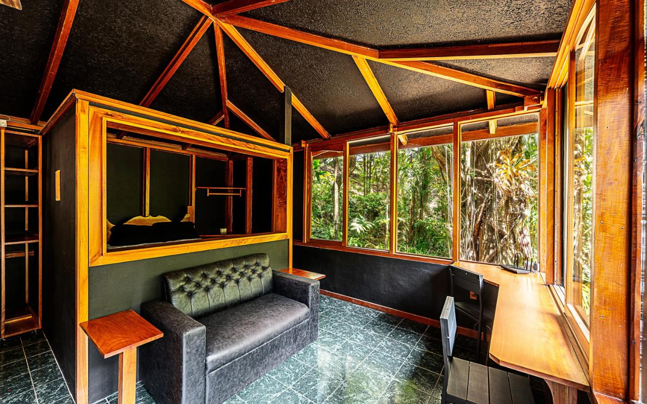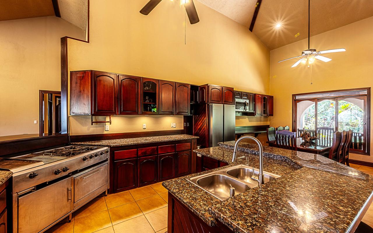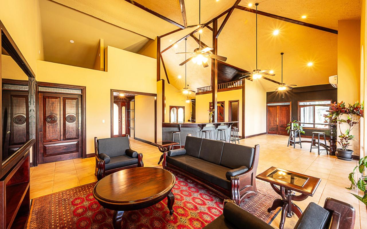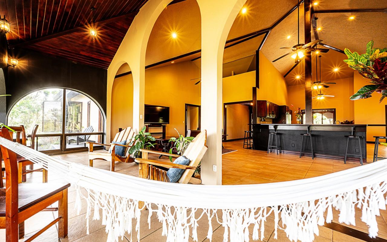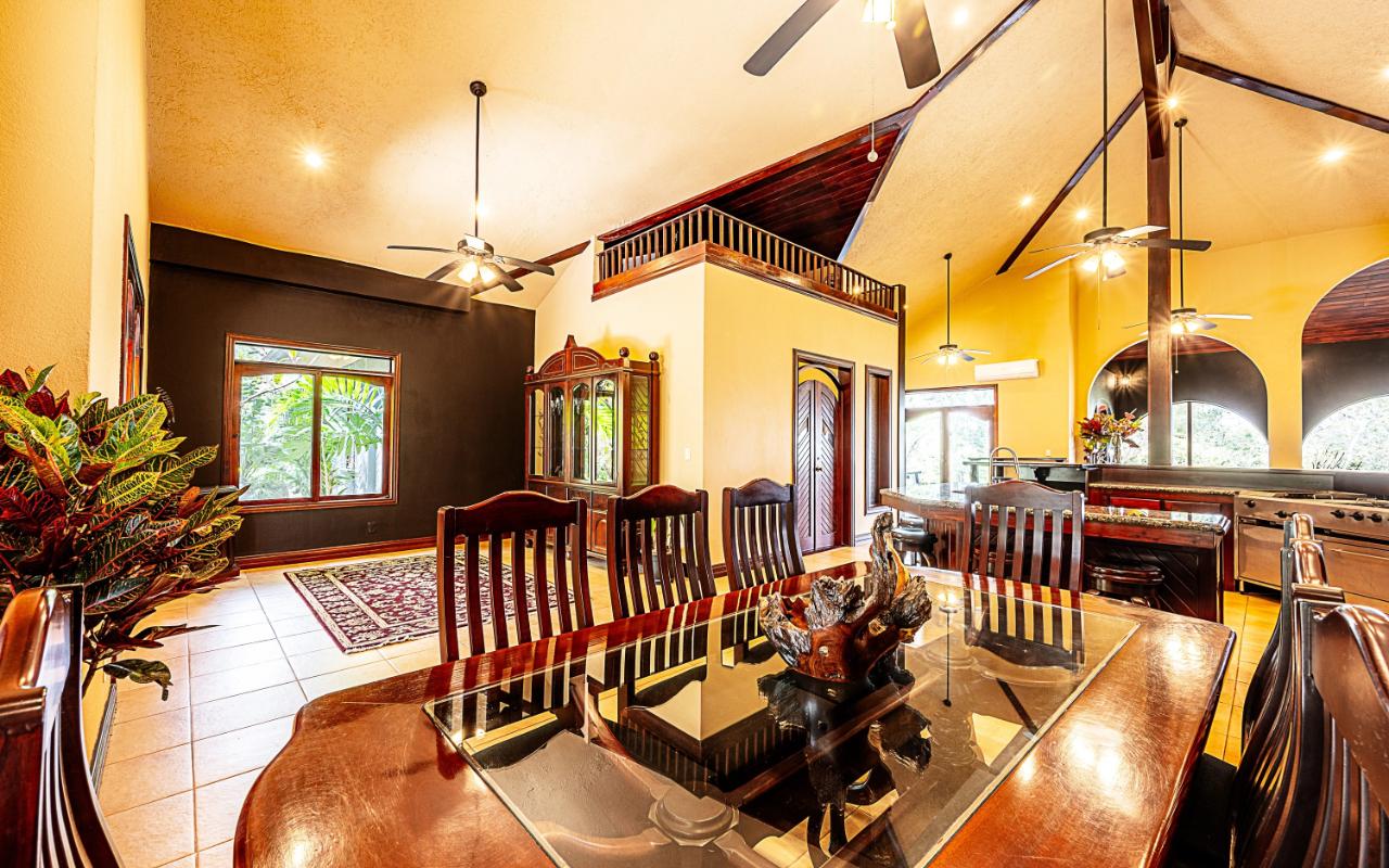 ID# 117399. House for sale in Tilarán, Guanacaste. 353 m² of construction, 16,000 m² of land, 5 bedrooms, 5 bathrooms, US $878,000. Nestled in the serene natural beauty of Lake Arenal, Costa Rica, this gated estate of over 16,000 m² offers a unique residential experience surrounded by panoramic views of the lake, the majestic Arenal Volcano, and lush green mountains. Designed for those seeking a lifestyle in harmony with nature while maintaining modern comfort and functionality, the main residence spans approximately 353 m² and features full accessibility, solid concrete walls inside and out, and a new metal roof for exceptional durability and low maintenance. The open-concept living space is crowned by vaulted ceilings over six meters high, creating an airy, light-filled atmosphere ideal for living, working, or entertaining. The home includes three bedrooms and three full bathrooms; the primary suite offers a spacious walk-in closet, private bathroom with bidet, Jacuzzi tub, private solarium, and two exterior doors—one facing the lake and the other overlooking the koi pond and zen garden. The additional bedrooms feature direct access to the garden or lake views, enhancing privacy and connection to the landscape. The social area integrates kitchen, dining, and living spaces, opening to a second solarium with lake views, with exterior walls lined with strategically placed windows and doors to optimize cross ventilation. Though ceiling fans, A/C, and heating are available, the year-round temperate climate (21–27 °C) makes them rarely necessary. Functionally, the home includes a pantry with laundry hookups, while the main laundry room is in a separate structure with modern washer and dryer, keeping noise and heat out of the main living space. Security and convenience include a single key for all doors, motorized gate with remote and keypad access, mobile-access security cameras, and full-property Wi-Fi coverage. Offered fully furnished and move-in ready, the estate also features two additional guest accommodations immersed in tropical surroundings: a modern one-bedroom tiny house with full kitchen, bathroom, living room, and expansive windows framing the jungle, and a cozy studio-style cabin with kitchenette, private bathroom, and large windows—perfect for visitors or vacation rental income. Additional amenities include a covered rancho with water and electricity for outdoor gatherings, a functioning greenhouse, fully equipped tool shed, active chicken coop, and private trails that lead to a permanent stream. The entire property is sustained by pristine mountain spring water, which flows continuously to nourish the home, koi pond, and grounds, with multiple water access points throughout. More than a home, this property is a lifestyle—whether to operate an eco B&B, host guests, or enjoy a private retreat of sustainability and nature. Conveniently located just 5 minutes from San Luis for daily needs, 7 minutes from Tilarán for full services, 30 minutes from Nuevo Arenal, 1 hour from Liberia and its international airport, and about 1.5 hours from the Pacific beaches, La Fortuna hot springs, and Monteverde cloud forests. The Lake Arenal region is famed for its natural wonders and vibrant international community. Nearby towns like Tronadora and Tilarán offer an active social scene with organized events, live music, and a harmonious mix of locals and expats. Tronadora even has a growing pickleball community. With access to outdoor adventures like kayaking, paddleboarding, fishing, hiking, the Rio Celeste, and La Fortuna’s hot springs, this area is a living paradise. Offering a perfect year-round climate, nearby amenities, safety, privacy, and unmatched scenery, this is a rare opportunity for those seeking a conscious, fulfilling life in complete sync with nature.