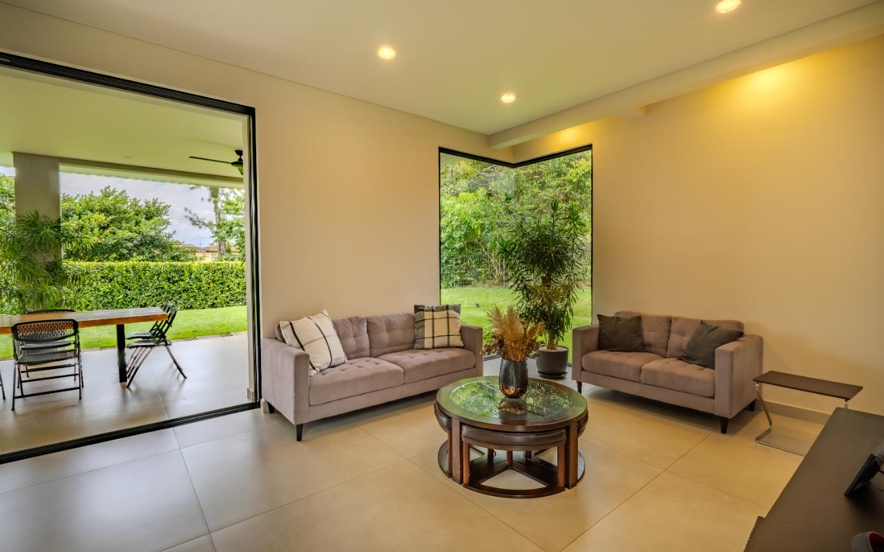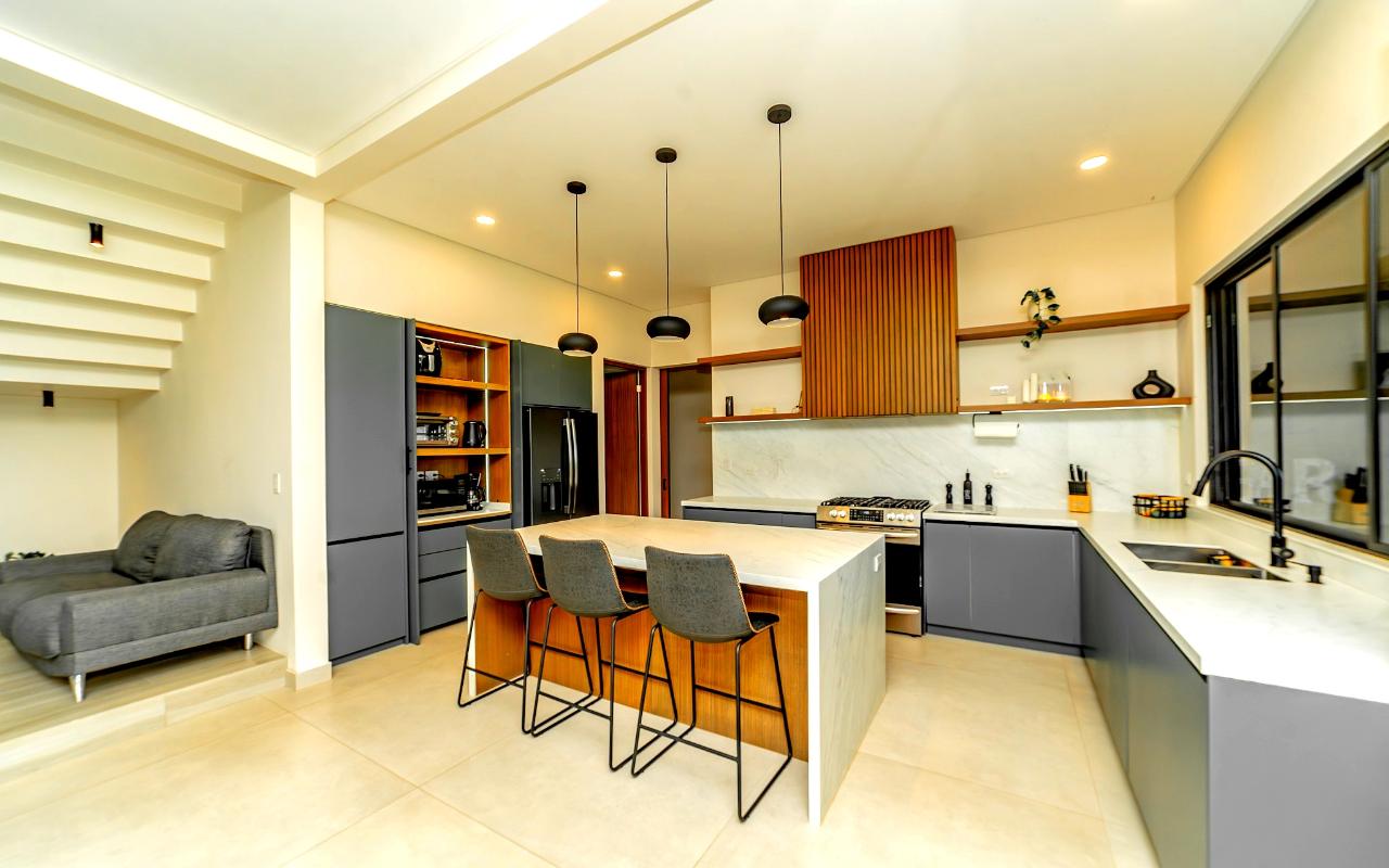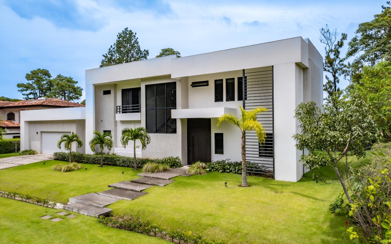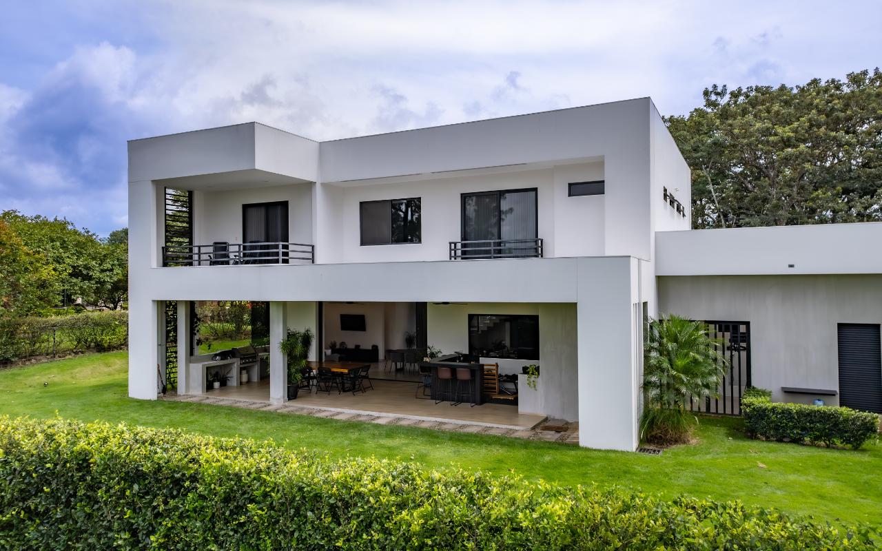 ID# 117419. Luxury home for sale in La Guácima, Hacienda Los Reyes condominium, 463 sqm construction, 1.218 sqm land, 4 bedrooms, 5 baths, US$890.000. Nestled within this exclusive community of Hacienda Los Reyes, we present a stunning single-family home with a contemporary design that exudes elegance and comfort. Boasting an expansive lot of 1200 square meters and a generous construction size of 463 square meters, this residence offers an abundance of space for you and your family to create cherished memories. As you enter this architectural masterpiece, you are greeted by a grand hall that sets the stage for the splendor that awaits. The meticulously designed interiors showcase impeccable attention to detail and a seamless blend of modern aesthetics with functional living spaces. With two floors of carefully curated luxury, this residence offers a lifestyle beyond compare. The heart of this magnificent home is found in its spacious dining room and gourmet kitchen, where culinary delights are brought to life. Imagine hosting lavish dinner parties, creating culinary masterpieces, or simply enjoying intimate family meals in this stylish setting. The kitchen is equipped with state-of-the-art appliances, ample storage space, and premium finishes, making it a haven for any discerning chef. For those seeking a private sanctuary to work from home or pursue personal endeavors, a thoughtfully designed office awaits. Complete with a full bathroom, it offers both privacy and convenience. This versatile space can also serve as a study, library, or even a guest suite to accommodate visiting friends and family. Beyond the main living areas, this residence boasts a service room with a full bathroom, providing comfort and privacy for live-in staff or guests. The convenience of a two-car garage, coupled with a spacious storage room, ensures that all your belongings are kept secure and organized. Step outside onto the terrace and be enveloped by the tranquility of nature. Perfect for entertaining or simply unwinding after a long day, this outdoor oasis offers a seamless transition between indoor and outdoor living. Breathe in the fresh air, soak up the sun, or relish in the joy of spending quality time with loved ones in this idyllic setting. As you explore the upper level, you will discover the master retreat, an epitome of luxury and relaxation. The master bedroom features a generous layout, providing ample space for a cozy sitting area. The en-suite bathroom is adorned with exquisite finishes, a spa-like soaking tub, and a walk-in closet that rivals those of high-end boutiques. This private haven offers a tranquil escape from the outside world, allowing you to rejuvenate and unwind in style. Additionally, three spacious secondary bedrooms await, each complete with its own en-suite bathroom and closet. These well-appointed rooms are designed with comfort and privacy in mind, catering to the needs of family members or guests alike. Whether you have a growing family or love to entertain, this home effortlessly accommodates your lifestyle. Beyond the unparalleled luxury found within this residence, Hacienda Los Reyes offers an array of exceptional amenities and conveniences that enrich your daily life. Residents of this exclusive community have access to a championship golf course, designed to challenge and delight golf enthusiasts of all levels. Take a leisurely stroll through the meticulously manicured gardens, indulge in a refreshing swim in the sparkling swimming pool, or engage in friendly matches on the tennis courts. The possibilities are endless within this sought-after enclave. Safety and security are paramount at Hacienda Los Reyes, ensuring peace of mind for you and your loved ones. The community features 24/7 security personnel and controlled access, providing a safe and tranquil environment for all residents. The well-designed infrastructure and meticulously maintained common areas further enhance the overall appeal of this exceptional residential condominium. From its contemporary design and expansive living spaces to the luxurious amenities and security features, every aspect of this residence has been thoughtfully crafted to exceed your expectations. Contact us today to arrange a private viewing and experience the epitome of refined living.