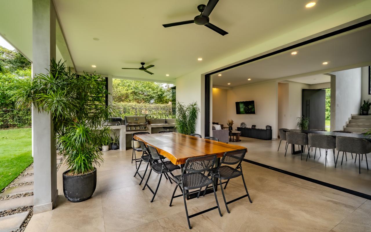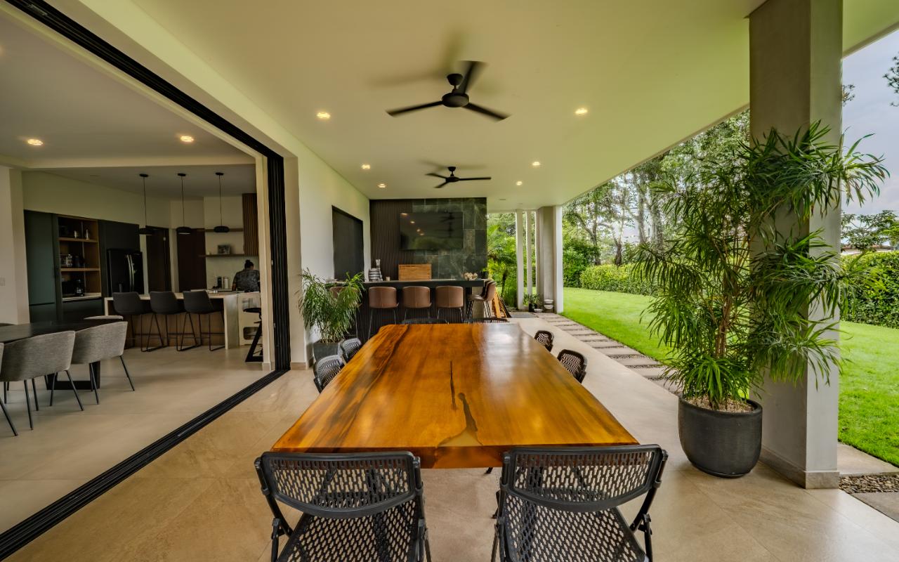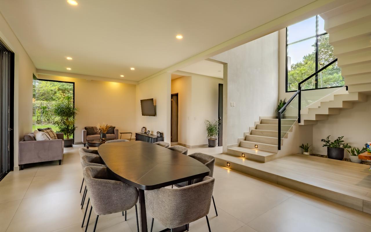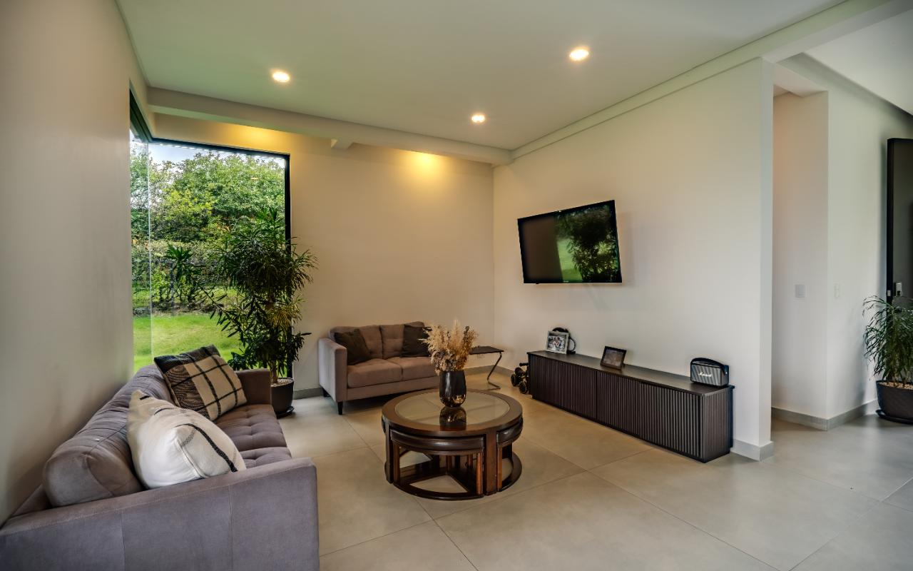 ID# 117419. Luxury home for sale in La Guácima, Hacienda Los Reyes condominium, 463 sqm construction, 1.218 sqm land, 4 bedrooms, 5 baths, US$890.000. Nestled within this exclusive community of Hacienda Los Reyes, we present a stunning single-family home with a contemporary design that exudes elegance and comfort. Boasting an expansive lot of 1200 square meters and a generous construction size of 463 square meters, this residence offers an abundance of space for you and your family to create cherished memories. As you enter this architectural masterpiece, you are greeted by a grand hall that sets the stage for the splendor that awaits. The meticulously designed interiors showcase impeccable attention to detail and a seamless blend of modern aesthetics with functional living spaces. With two floors of carefully curated luxury, this residence offers a lifestyle beyond compare. The heart of this magnificent home is found in its spacious dining room and gourmet kitchen, where culinary delights are brought to life. Imagine hosting lavish dinner parties, creating culinary masterpieces, or simply enjoying intimate family meals in this stylish setting. The kitchen is equipped with state-of-the-art appliances, ample storage space, and premium finishes, making it a haven for any discerning chef. For those seeking a private sanctuary to work from home or pursue personal endeavors, a thoughtfully designed office awaits. Complete with a full bathroom, it offers both privacy and convenience. This versatile space can also serve as a study, library, or even a guest suite to accommodate visiting friends and family. Beyond the main living areas, this residence boasts a service room with a full bathroom, providing comfort and privacy for live-in staff or guests. The convenience of a two-car garage, coupled with a spacious storage room, ensures that all your belongings are kept secure and organized. Step outside onto the terrace and be enveloped by the tranquility of nature. Perfect for entertaining or simply unwinding after a long day, this outdoor oasis offers a seamless transition between indoor and outdoor living. Breathe in the fresh air, soak up the sun, or relish in the joy of spending quality time with loved ones in this idyllic setting. As you explore the upper level, you will discover the master retreat, an epitome of luxury and relaxation. The master bedroom features a generous layout, providing ample space for a cozy sitting area. The en-suite bathroom is adorned with exquisite finishes, a spa-like soaking tub, and a walk-in closet that rivals those of high-end boutiques. This private haven offers a tranquil escape from the outside world, allowing you to rejuvenate and unwind in style. Additionally, three spacious secondary bedrooms await, each complete with its own en-suite bathroom and closet. These well-appointed rooms are designed with comfort and privacy in mind, catering to the needs of family members or guests alike. Whether you have a growing family or love to entertain, this home effortlessly accommodates your lifestyle. Beyond the unparalleled luxury found within this residence, Hacienda Los Reyes offers an array of exceptional amenities and conveniences that enrich your daily life. Residents of this exclusive community have access to a championship golf course, designed to challenge and delight golf enthusiasts of all levels. Take a leisurely stroll through the meticulously manicured gardens, indulge in a refreshing swim in the sparkling swimming pool, or engage in friendly matches on the tennis courts. The possibilities are endless within this sought-after enclave. Safety and security are paramount at Hacienda Los Reyes, ensuring peace of mind for you and your loved ones. The community features 24/7 security personnel and controlled access, providing a safe and tranquil environment for all residents. The well-designed infrastructure and meticulously maintained common areas further enhance the overall appeal of this exceptional residential condominium. From its contemporary design and expansive living spaces to the luxurious amenities and security features, every aspect of this residence has been thoughtfully crafted to exceed your expectations. Contact us today to arrange a private viewing and experience the epitome of refined living.