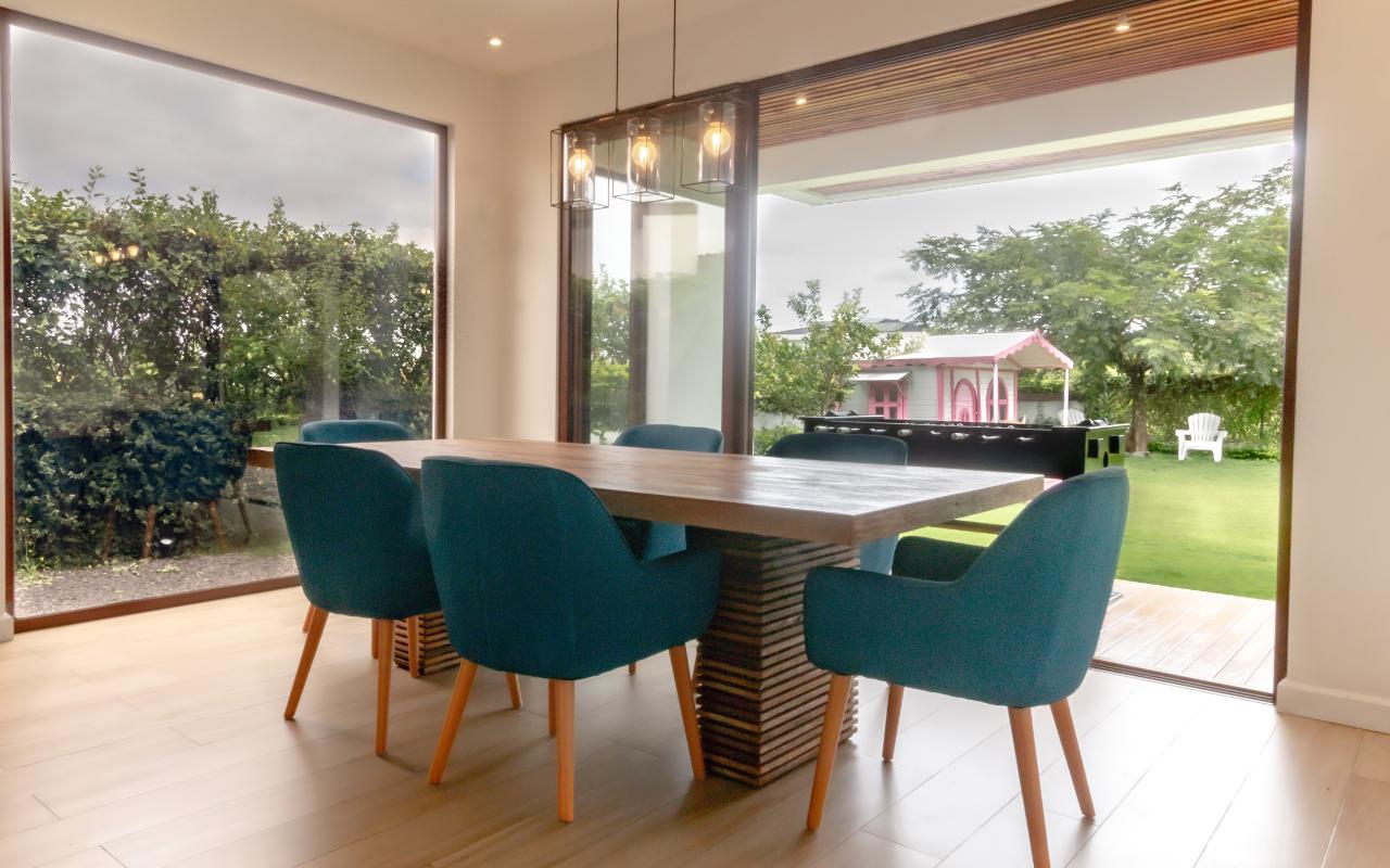 ID# 117443. Contemporary home for sale in Hacienda Los Reyes, La Guácima, Alajuela. 4 bedrooms, 3.5 bathrooms, 440 m² of construction, 787 m² of land, US $670,000. Located in the exclusive Los Manzanos condominium, this property combines spaciousness, comfort, and contemporary style surrounded by nature, in one of the most desirable and fastest-growing areas of the western Central Valley. Its open-concept design seamlessly connects the indoor social areas with the covered terrace and the expansive backyard, creating the perfect setting for family living and entertaining. High ceilings and floor-to-ceiling windows allow abundant natural light, enhancing the sense of freshness and openness throughout the home. The modern, fully equipped kitchen features a large central island with breakfast bar, direct and indirect lighting, and a layout ideal for those who appreciate both functionality and aesthetics. The private second floor hosts all bedrooms, including a generous primary suite with a walk-in closet, an en-suite bathroom with a hydro-massage tub, and a charming balcony with panoramic views that provide tranquility and a close connection to nature. The secondary bedrooms offer excellent cross ventilation, high-end finishes, and well-distributed spaces. On the main level, there is a laundry room, an unfinished service room, and a closed garage for two vehicles with additional outdoor parking. Los Manzanos is known for its safety, privacy, and family-oriented atmosphere within Hacienda Los Reyes, a prestigious Country Club-style community that offers world-class amenities such as a 9-hole golf course, recreational and semi-Olympic swimming pools, tennis courts, restaurants, picnic areas, and scenic walking trails. The complex also includes a polo club, large parks, lush green areas, and forest views that enhance its natural appeal. Strategically located, Hacienda Los Reyes offers a peaceful setting with quick access to Route 27 (connecting in minutes to Santa Ana, Escazú, and San José) and Route 121, making it ideal for professionals working in nearby business hubs like Lindora, Forum I and II, El Coyol, or La Sabana. Within 10 minutes, residents can access top schools such as GSD International School and Country Day School, as well as supermarkets, restaurants, clinics, and Los Reyes Shopping Center, which provides essential services and shops. Living in Los Manzanos means enjoying a natural, private, and secure environment with all the comforts of a high-end club community that perfectly balances residential living, wellness, and convenience.