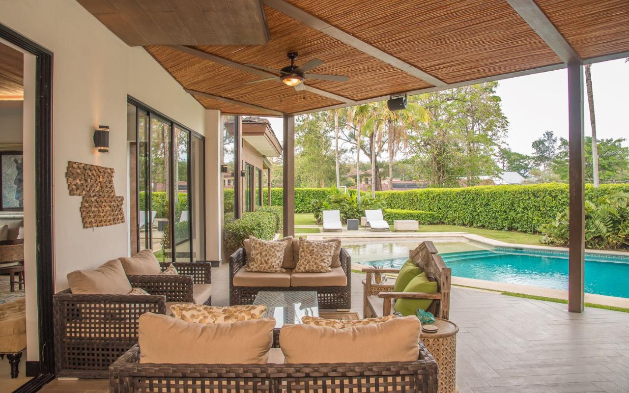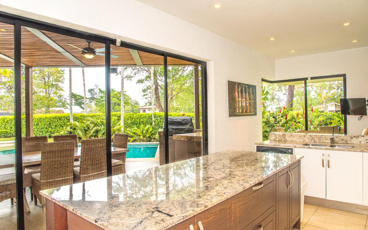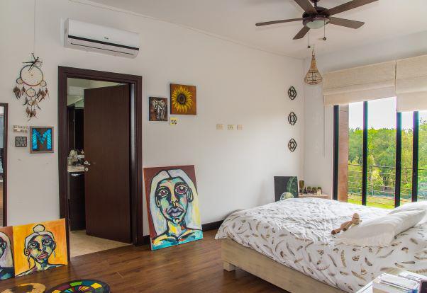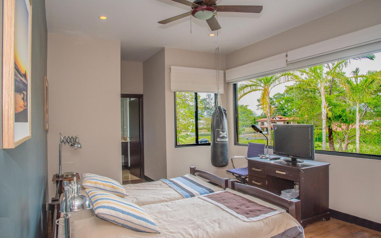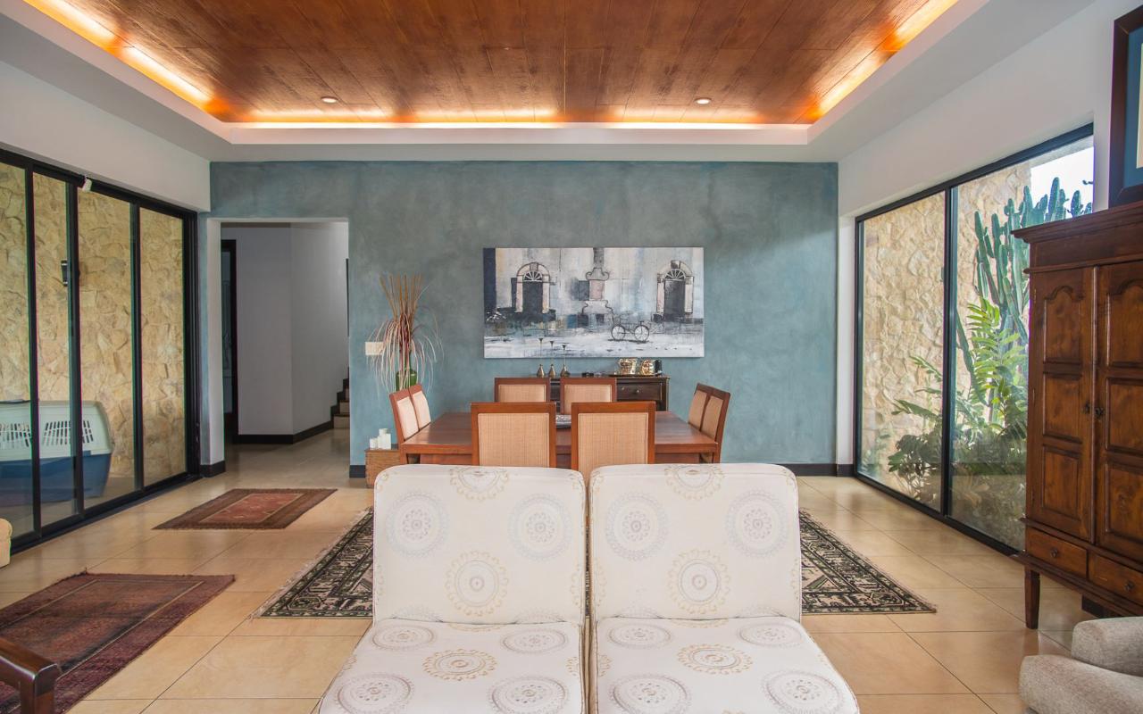 ID# 117453. House with private pool for sale in Hacienda Los Reyes, La Guácima – 5 bedrooms, 6 bathrooms, 580 m² construction, 1,205 m² land, US $945,000. This luxury home in Hacienda Los Reyes, known as Casa Golf, is a sophisticated two-story residence designed by an internationally recognized architect and conceived to maximize outdoor entertainment, comfort, and natural integration. With 580 m² of high-end construction on a 1,205 m² lot, this property stands out in La Guácima, Alajuela, for its premium finishes, modern layout, abundant natural light, and a privileged location within one of Costa Rica’s most exclusive gated communities. At the heart of the home is a spectacular private pool seamlessly connected to the main social areas, creating the perfect indoor–outdoor flow for gatherings, family events, or relaxed living. The bright living and dining areas feature large floor-to-ceiling windows, excellent cross-ventilation, and direct access to the terrace and garden. The spacious gourmet kitchen includes double-height ceilings, a central island, granite countertops, and stainless steel appliances—ideal for those seeking a modern culinary environment. The first level includes a full independent bedroom/apartment, a TV room, a dedicated office space, and a full service room. Upstairs, the private wing offers an intelligent layout that maximizes comfort, privacy, and stunning panoramic views toward Los Reyes Country Club and the golf course, elevating the residential experience of this premium property. Living in Hacienda Los Reyes provides privileged access to a world-class lifestyle with exceptional amenities: an 18-hole golf course, tennis and basketball courts, soccer field, semi-Olympic pools, gym, sauna, picnic areas, walking trails, and a beautifully designed clubhouse. The gated community also offers 24/7 security, controlled access, and a peaceful environment surrounded by nature and wide green areas. This location in La Guácima is one of the highest-demand residential zones in Costa Rica. The property is just minutes from Route 27, Automercado, private clinics, fine dining restaurants, shopping centers, and prestigious schools such as GSD International School. It is also strategically positioned 20 minutes from Juan Santamaría International Airport (SJO) and 45 minutes from the Pacific Coast, making it ideal for families, executives, and foreign buyers seeking convenience, connectivity, and high long-term value. Casa Golf represents a unique opportunity to acquire a luxury house with private pool in Hacienda Los Reyes, perfectly suited for those who appreciate exclusivity, privacy, modern architecture, and the finest lifestyle in Costa Rica real estate.