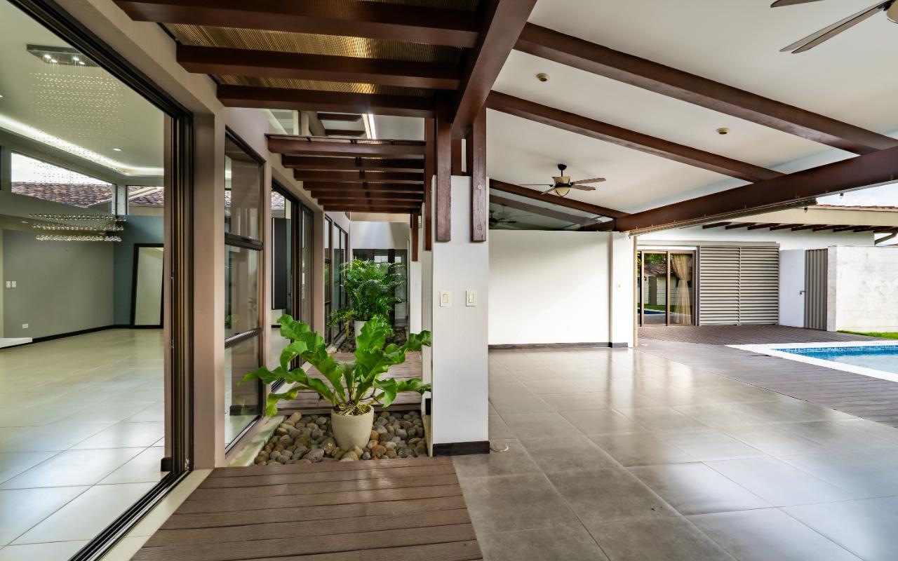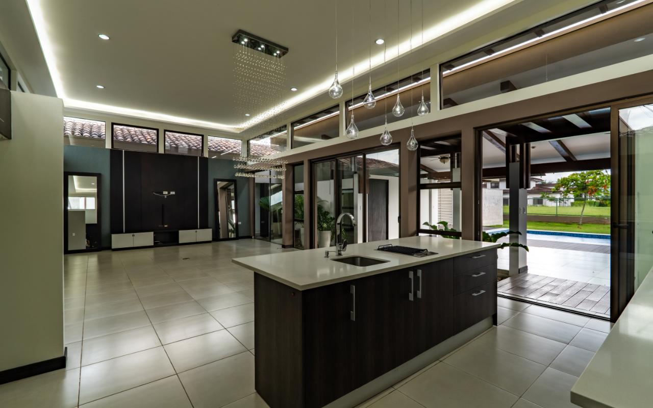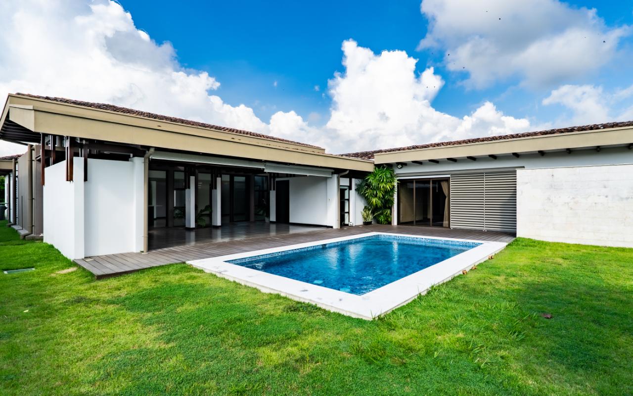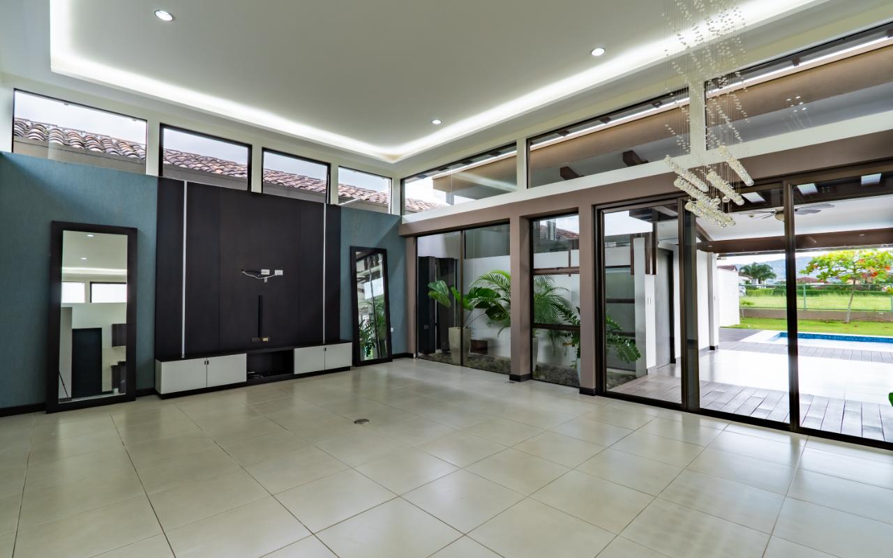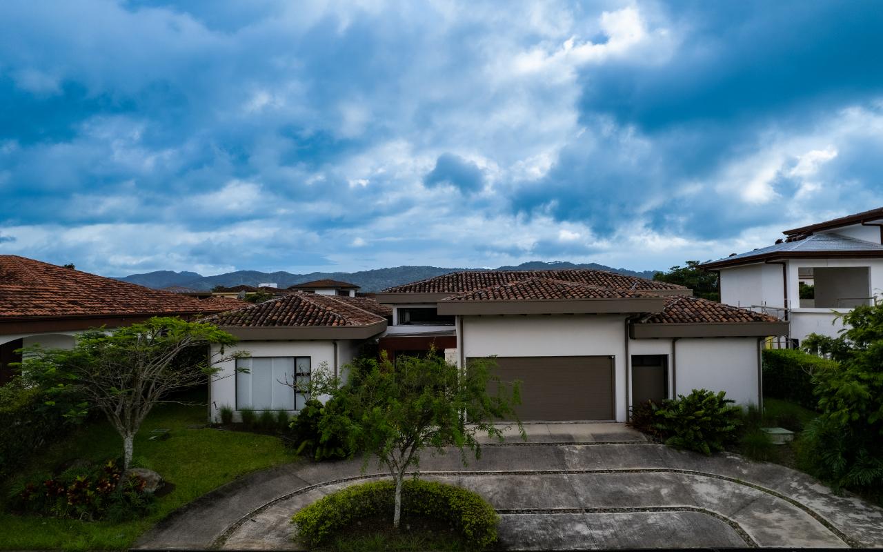 ID# 117457. Luxury home for sale in Hacienda Los Reyes, Condominio Las Vueltas – 4 bedrooms, 5 bathrooms, 470 m² construction, 1,034 m² land – US$730,000. Positioned in the prestigious Condominio Las Vueltas within Hacienda Los Reyes, this luxury home for sale in La Guácima, Alajuela offers 470 m² of refined construction on a generous 1,034 m² lot—delivering an exceptional residential experience in one of the most exclusive, secure, and highly coveted communities in Costa Rica. Designed and built in 2018 under Law 7600 accessibility standards, the residence integrates premium materials, abundant natural light, cross-ventilation, and contemporary architectural elements to create an elegant, functional, and private environment ideal for modern family living. The open-concept social area features high ceilings and seamless flow between the living room, dining room, and kitchen, where superior finishes, ample storage, and a walk-in pantry enhance everyday usability. The home includes four spacious bedrooms, each with air conditioning, a full bathroom, and high-quality detailing. The primary suite offers a private retreat with jacuzzi, walk-in closet, and an integrated home office—perfect for productivity and relaxation. Complementary interior spaces include a TV room or secondary office with direct access to a private terrace, a full service bedroom, a dedicated laundry and drying area, and multiple storage options including a mezzanine. Designed to embrace outdoor living year-round, this luxury property in Hacienda Los Reyes features an expansive covered terrace with an underground wine cellar, a heated saltwater pool, children’s playhouse, a dog-friendly zone, automatic perimeter irrigation and lighting, and space for both entertainment and tranquility. The property includes a two-car garage with EV charging, plus exterior parking for up to four additional vehicles, and a private underground water tank ensuring consistent water supply. As a resident of Las Vueltas, you enjoy cobblestone streets, underground utilities, and 24/7 controlled access, in addition to the full amenity offering of Hacienda Los Reyes: a picturesque 9-hole golf course, tennis, soccer and basketball courts, recreational and semi-Olympic pools, a fully equipped gym, sauna, clubhouse, onsite restaurant, playgrounds, extensive green areas, and beautiful walking and biking trails. Its privileged location in La Guácima, Alajuela, places the home just minutes from Route 27, Automercado, cafés, restaurants, banks, and essential services. The property is close to top private schools such as GSD International School and Saint Paul School, as well as medical centers including Hospital Metropolitano and the upcoming CIMA Hospital. The area offers excellent access to business hubs like Coyol Free Zone, Green Valley, and El Cafetal, and is only 20 minutes from the Juan Santamaría International Airport (SJO) and 45 minutes from the Pacific Coast. This residence represents a rare opportunity to acquire a luxury home in Hacienda Los Reyes that seamlessly blends modern design, spacious living, privacy, premium amenities, and one of the best locations in Costa Rica’s Central Valley.