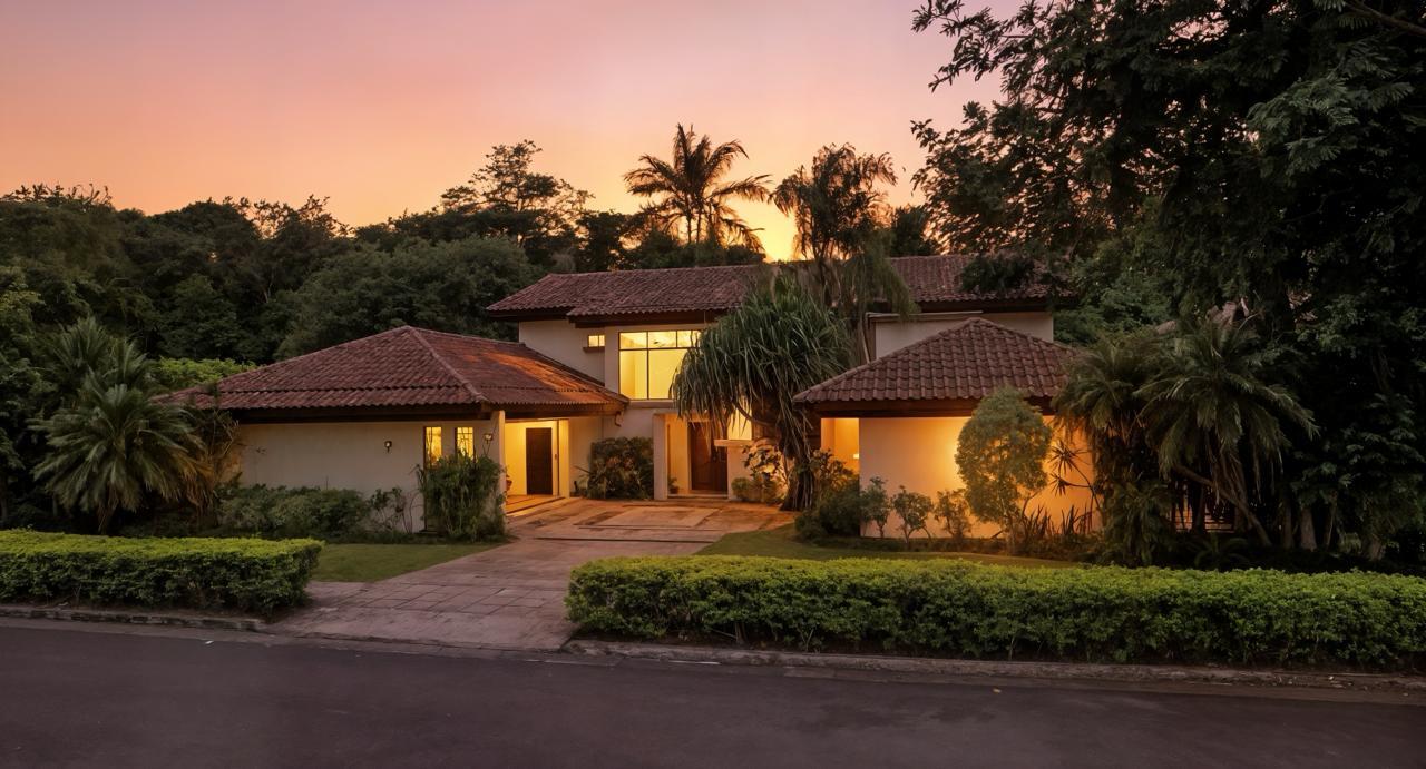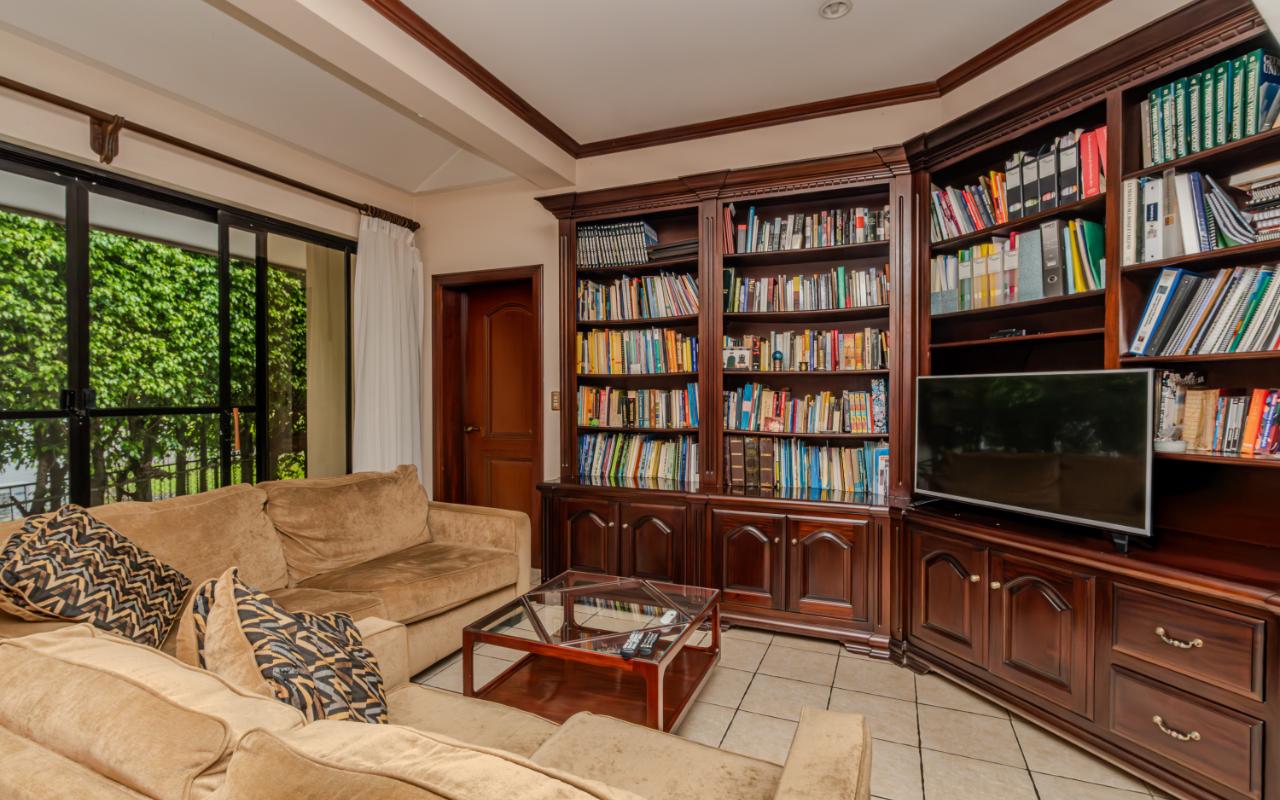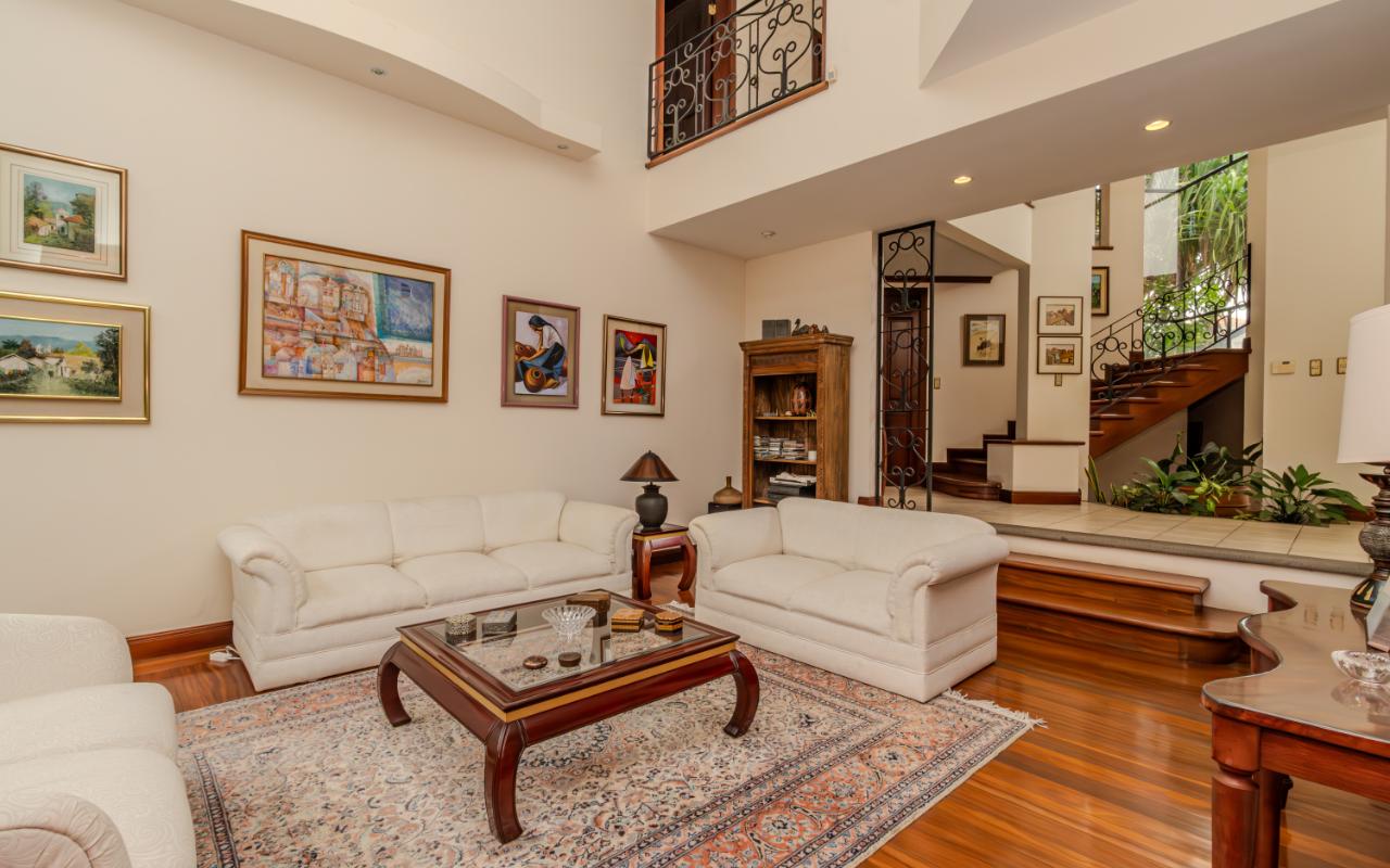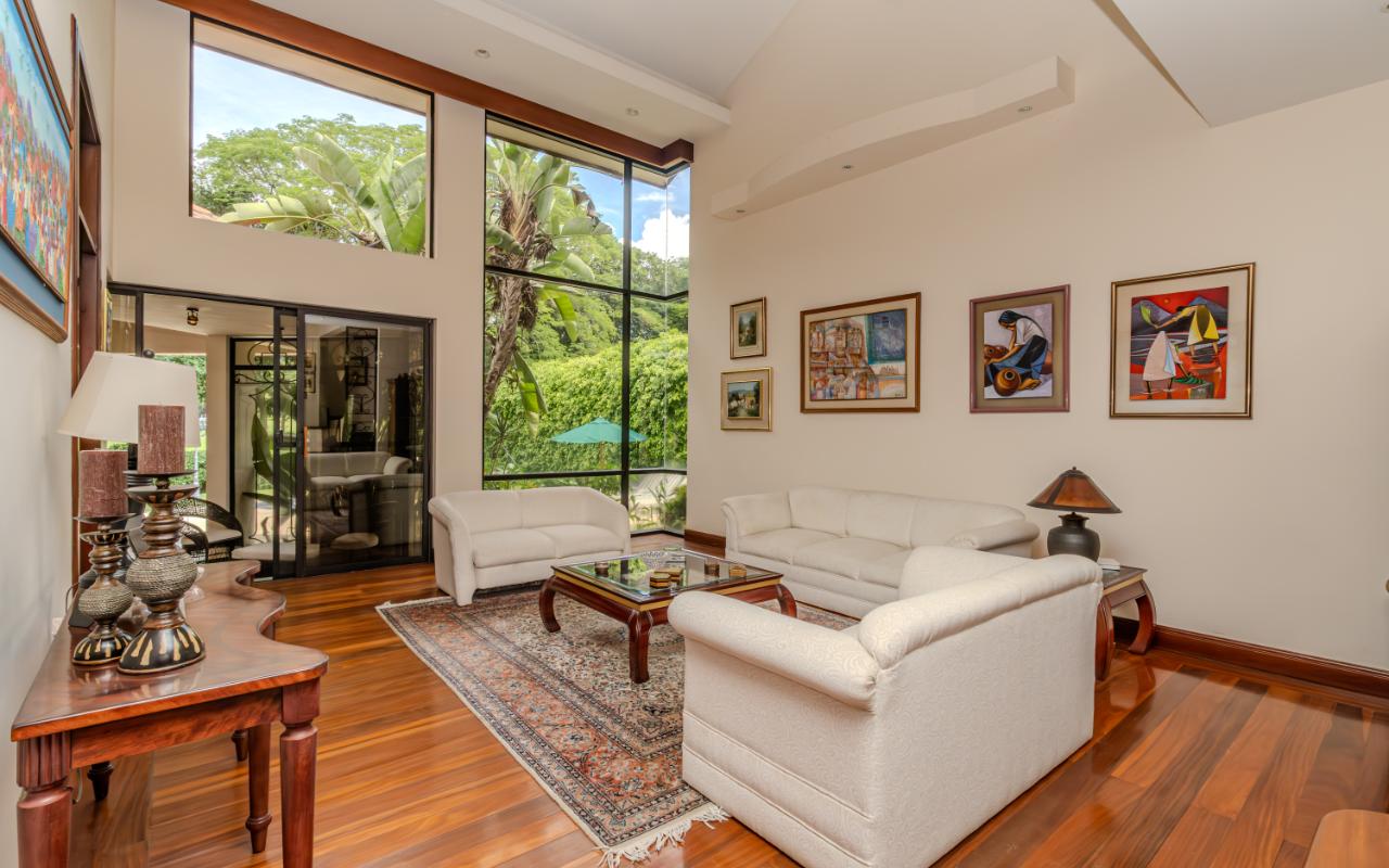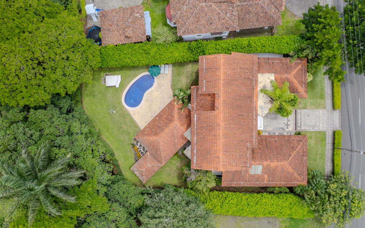 ID# 117468. Luxury House for Sale in Valle del Sol, Santa Ana • 4 Bedrooms • 5.5 Bathrooms • 460 m² Construction • 1,225 m² Land • US$1,200,000 This luxury home for sale in Valle del Sol, Santa Ana, is an exceptional residence strategically located in one of Costa Rica’s most exclusive gated golf communities, offering immediate access to top amenities, premier security, and panoramic views of the Valle del Sol golf course. With 460 m² of construction on a 1,225 m² lot, this property delivers elegance, privacy, and a lifestyle defined by comfort, nature, and convenience. Its privileged location places it just minutes from Escazú, Automercado, private clinics, business centers, international schools, outdoor recreation areas, and only 30 minutes from Juan Santamaría International Airport (SJO) and 90 minutes from the Pacific Coast. Upon entering, an impressive double-height foyer welcomes you with abundant natural light and a feeling of spaciousness that flows throughout the home. The main living room features wooden floors, soaring ceilings, and oversized windows framing serene views of the gardens, private pool, and golf course, creating a refined and tranquil atmosphere ideal for both social gatherings and daily enjoyment. Adjacent to the living room, the formal dining area provides an elegant and intimate environment, surrounded by floor-to-ceiling windows that connect directly to the terrace and outdoor social spaces. The main level includes two spacious bedrooms, each with a full bathroom, walk-in closet, and air conditioning, offering comfort and privacy for family members or guests. A multifunctional room between the bedrooms works perfectly as a TV room, office, or library, enhanced by custom woodwork that adds warmth and sophistication. The kitchen combines functionality and design, featuring high-quality cabinetry, a breakfast nook with natural ventilation, and direct access to the service area, which includes a storage room, covered drying area, and full service bedroom with closet. One of the most exceptional features of this home is the expansive covered terrace, designed for year-round enjoyment of Santa Ana’s ideal climate. With a coffered wooden ceiling, porcelain flooring, and charming ironwork details, this space offers a perfect setting for entertaining while overlooking the landscaped gardens and the golf course. Next to the terrace, a full bathroom provides additional convenience. Outdoors, the private pool creates an oasis of relaxation surrounded by nature, while a discreet utility area ensures optimal functionality. Ascending to the upper floor, a stylish staircase with wood and iron details leads to the additional bedrooms. A practical linen room provides extra storage. The third bedroom, spacious and comfortable, includes a full bathroom, air conditioning, and a private terrace overlooking the golf course. The fourth bedroom also enjoys a private terrace with peaceful views, making it an inviting retreat. The master bedroom is a true sanctuary: a large suite with walk-in closet, full bathroom with Jacuzzi, air conditioning, and its own terrace with stunning golf course views—an exclusive space designed for rest, privacy, and well-being. Additional features include covered and uncovered parking for multiple vehicles, a water storage system, three hot water tanks, and an automatic sprinkler system in the front garden, ensuring efficient maintenance of the property’s green areas. Located within the prestigious and secure Valle del Sol Golf Community in Santa Ana, this home provides exceptional accessibility to Escazú, Route 27, shopping plazas, Automercado, private clinics and hospitals, renowned restaurants, office parks, international educational centers, and the area’s best outdoor amenities. Surrounded by nature and offering direct views of the golf course, this property embodies the essence of luxury living in one of Costa Rica’s premier residential communities.