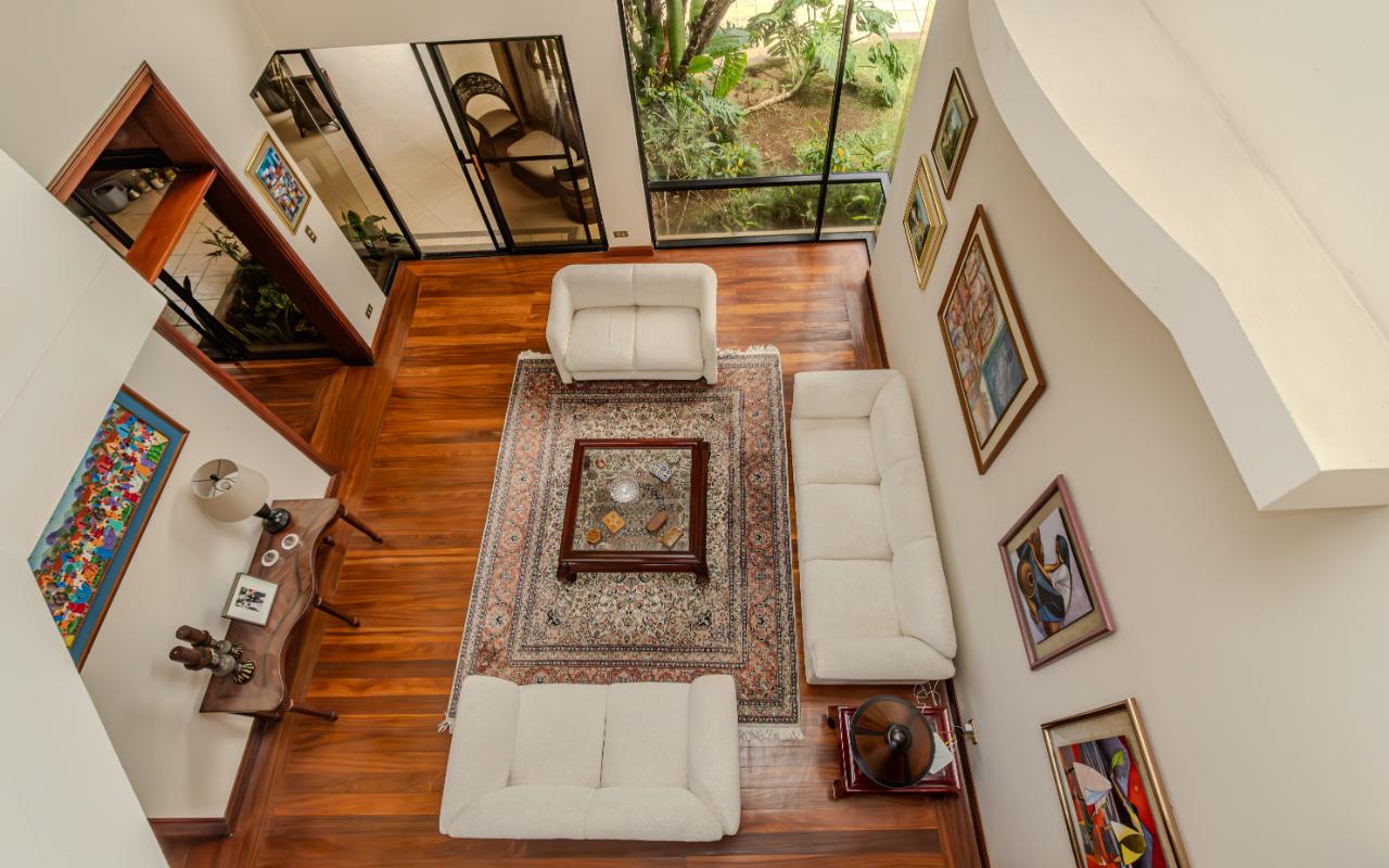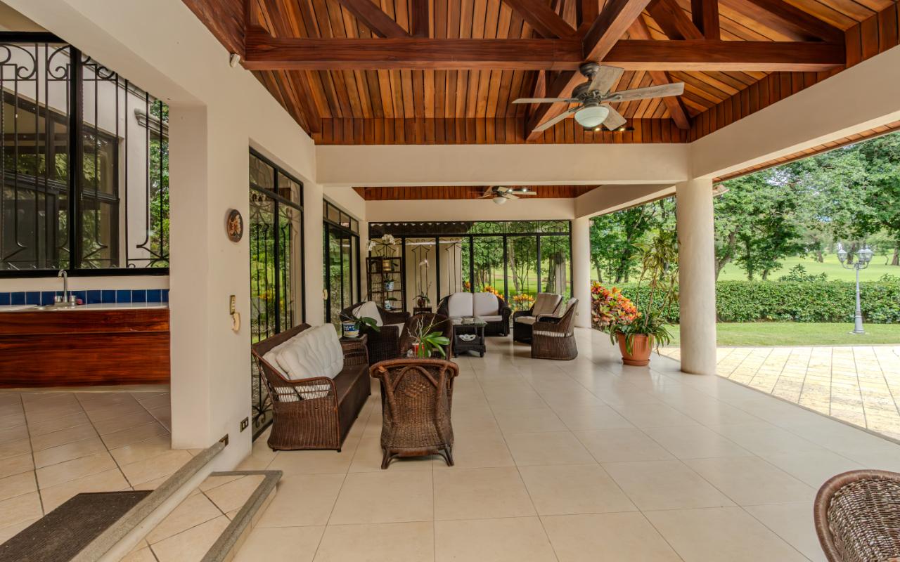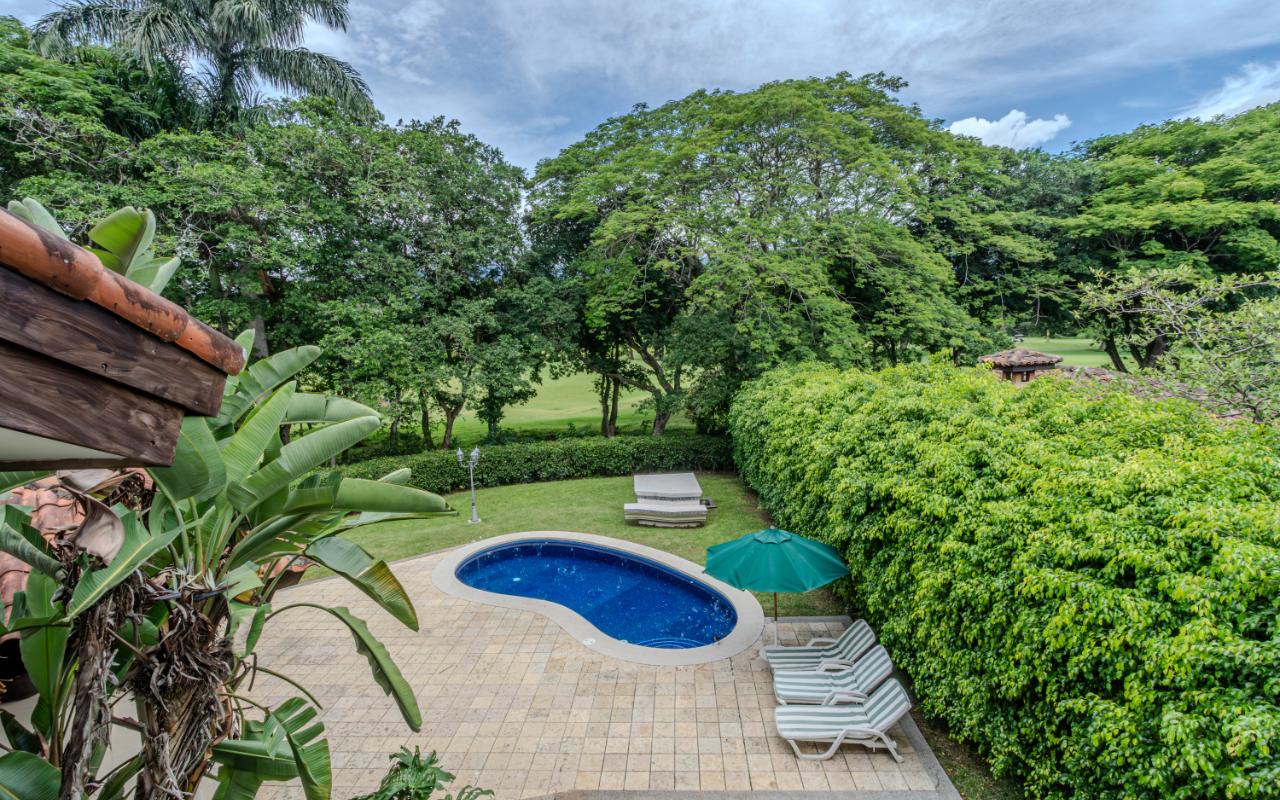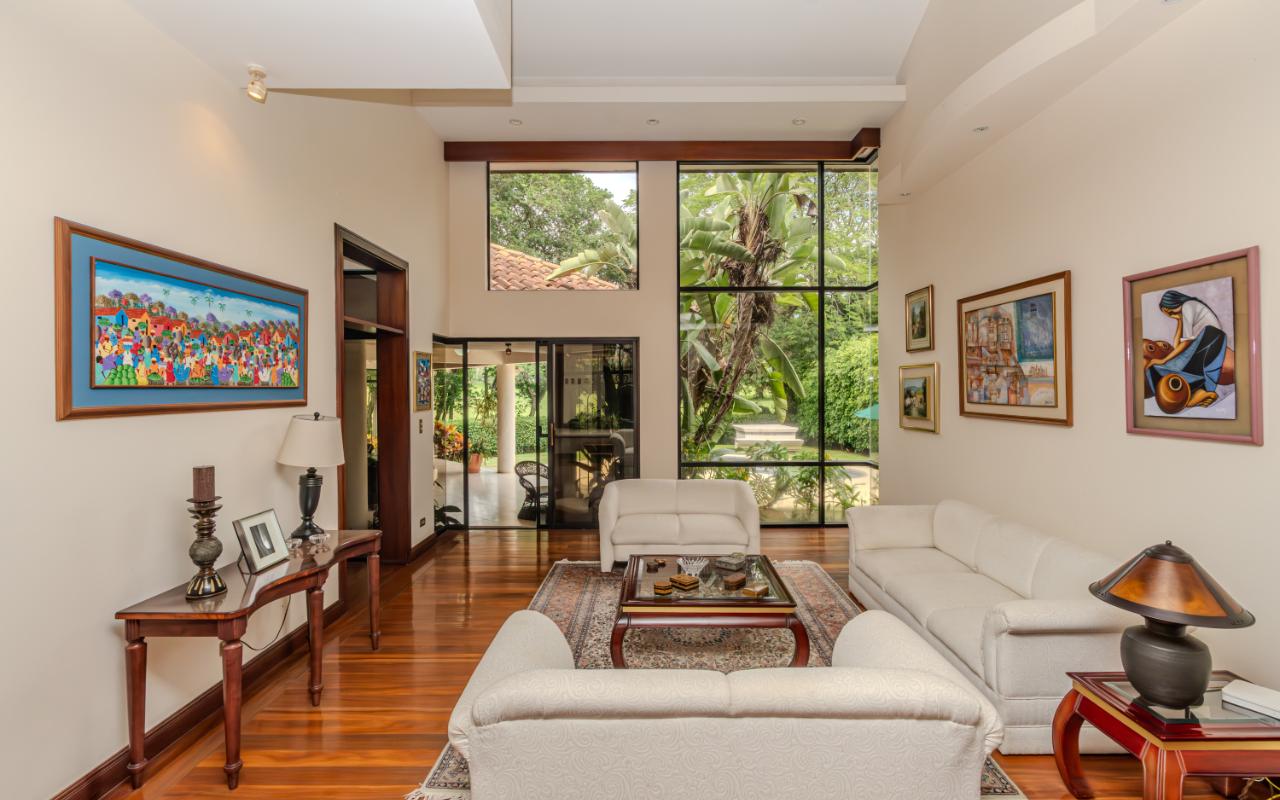 ID# 117468. Luxury House for Sale in Valle del Sol, Santa Ana • 4 Bedrooms • 5.5 Bathrooms • 460 m² Construction • 1,225 m² Land • US$1,200,000 This luxury home for sale in Valle del Sol, Santa Ana, is an exceptional residence strategically located in one of Costa Rica’s most exclusive gated golf communities, offering immediate access to top amenities, premier security, and panoramic views of the Valle del Sol golf course. With 460 m² of construction on a 1,225 m² lot, this property delivers elegance, privacy, and a lifestyle defined by comfort, nature, and convenience. Its privileged location places it just minutes from Escazú, Automercado, private clinics, business centers, international schools, outdoor recreation areas, and only 30 minutes from Juan Santamaría International Airport (SJO) and 90 minutes from the Pacific Coast. Upon entering, an impressive double-height foyer welcomes you with abundant natural light and a feeling of spaciousness that flows throughout the home. The main living room features wooden floors, soaring ceilings, and oversized windows framing serene views of the gardens, private pool, and golf course, creating a refined and tranquil atmosphere ideal for both social gatherings and daily enjoyment. Adjacent to the living room, the formal dining area provides an elegant and intimate environment, surrounded by floor-to-ceiling windows that connect directly to the terrace and outdoor social spaces. The main level includes two spacious bedrooms, each with a full bathroom, walk-in closet, and air conditioning, offering comfort and privacy for family members or guests. A multifunctional room between the bedrooms works perfectly as a TV room, office, or library, enhanced by custom woodwork that adds warmth and sophistication. The kitchen combines functionality and design, featuring high-quality cabinetry, a breakfast nook with natural ventilation, and direct access to the service area, which includes a storage room, covered drying area, and full service bedroom with closet. One of the most exceptional features of this home is the expansive covered terrace, designed for year-round enjoyment of Santa Ana’s ideal climate. With a coffered wooden ceiling, porcelain flooring, and charming ironwork details, this space offers a perfect setting for entertaining while overlooking the landscaped gardens and the golf course. Next to the terrace, a full bathroom provides additional convenience. Outdoors, the private pool creates an oasis of relaxation surrounded by nature, while a discreet utility area ensures optimal functionality. Ascending to the upper floor, a stylish staircase with wood and iron details leads to the additional bedrooms. A practical linen room provides extra storage. The third bedroom, spacious and comfortable, includes a full bathroom, air conditioning, and a private terrace overlooking the golf course. The fourth bedroom also enjoys a private terrace with peaceful views, making it an inviting retreat. The master bedroom is a true sanctuary: a large suite with walk-in closet, full bathroom with Jacuzzi, air conditioning, and its own terrace with stunning golf course views—an exclusive space designed for rest, privacy, and well-being. Additional features include covered and uncovered parking for multiple vehicles, a water storage system, three hot water tanks, and an automatic sprinkler system in the front garden, ensuring efficient maintenance of the property’s green areas. Located within the prestigious and secure Valle del Sol Golf Community in Santa Ana, this home provides exceptional accessibility to Escazú, Route 27, shopping plazas, Automercado, private clinics and hospitals, renowned restaurants, office parks, international educational centers, and the area’s best outdoor amenities. Surrounded by nature and offering direct views of the golf course, this property embodies the essence of luxury living in one of Costa Rica’s premier residential communities.