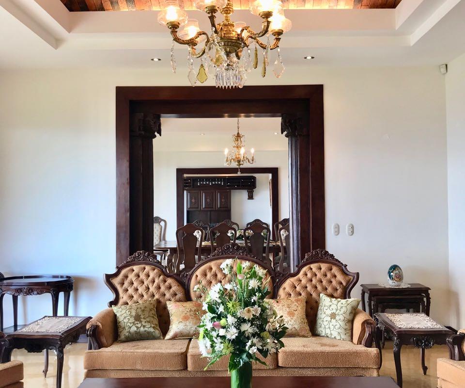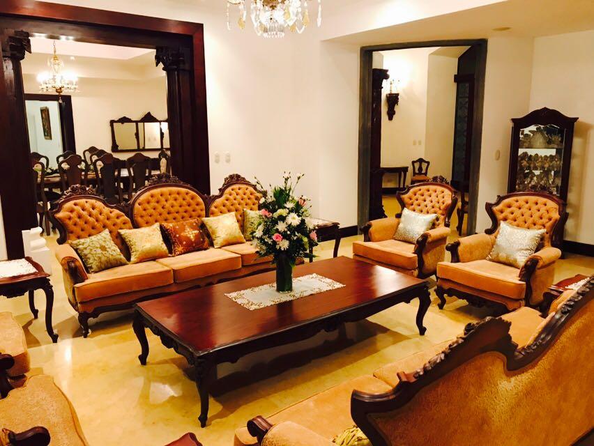 Super impressive home for sale/rent in in the East part of the city. Tres Ríos, 1.000 sqm construction, 2.000 sqm lot, 5 bedrooms, 6.5 baths, deluxe finishes, US$1.980.000. This amazing home, almost palace, features 5 ample bedrooms (4 w/walk-in closet), 6 full bathrooms and one half bath for guests. Open floor layout integrating the living room, the formal dining room, a secondary one and a bar, all with large windows and sliding doors that open towards an ample terrace with gorgeous views of San José. Spacious office, gourmet’s kitchen with center island and stainless steel appliances, laundry room, and garage for 4 cars with independent entrance. Cellars and an attic for storage. Luxury finishes in every corner, like granite and marble countertops, all wood used is raintree and laurel, hand-painted vaulted ceilings in social areas, marble and porcelain floors. The property is very secure, with alarm system and controlled access by security guards. The residential where it is located has easy close access to supermarkets, banks, shopping and office centers, medical facilities, entertainment venues and more. This gem is for sale but it is also available for rent @ US$5.000 (including some of the furniture).